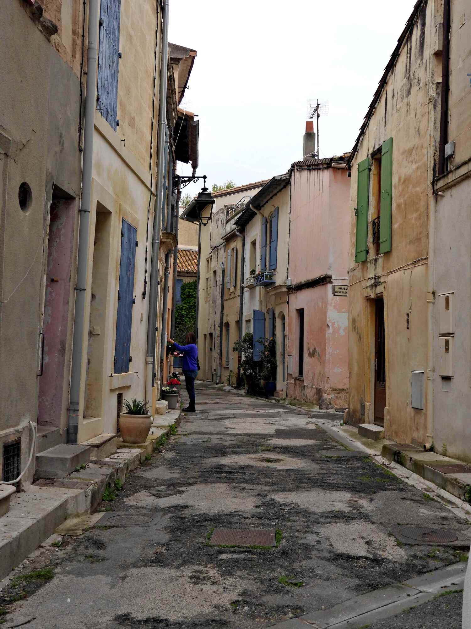 We now set out to circumnavigate the roman arena. This took us though the incredibly picturesque streets of old Arles. I kept exclaiming "I feel like l am walking through a painting!" While Dodie pointed out that often the painter seems to lack skill. Any lack in the design and upkeep of these houses, however, has long ago become just the atmosphere of the place.
