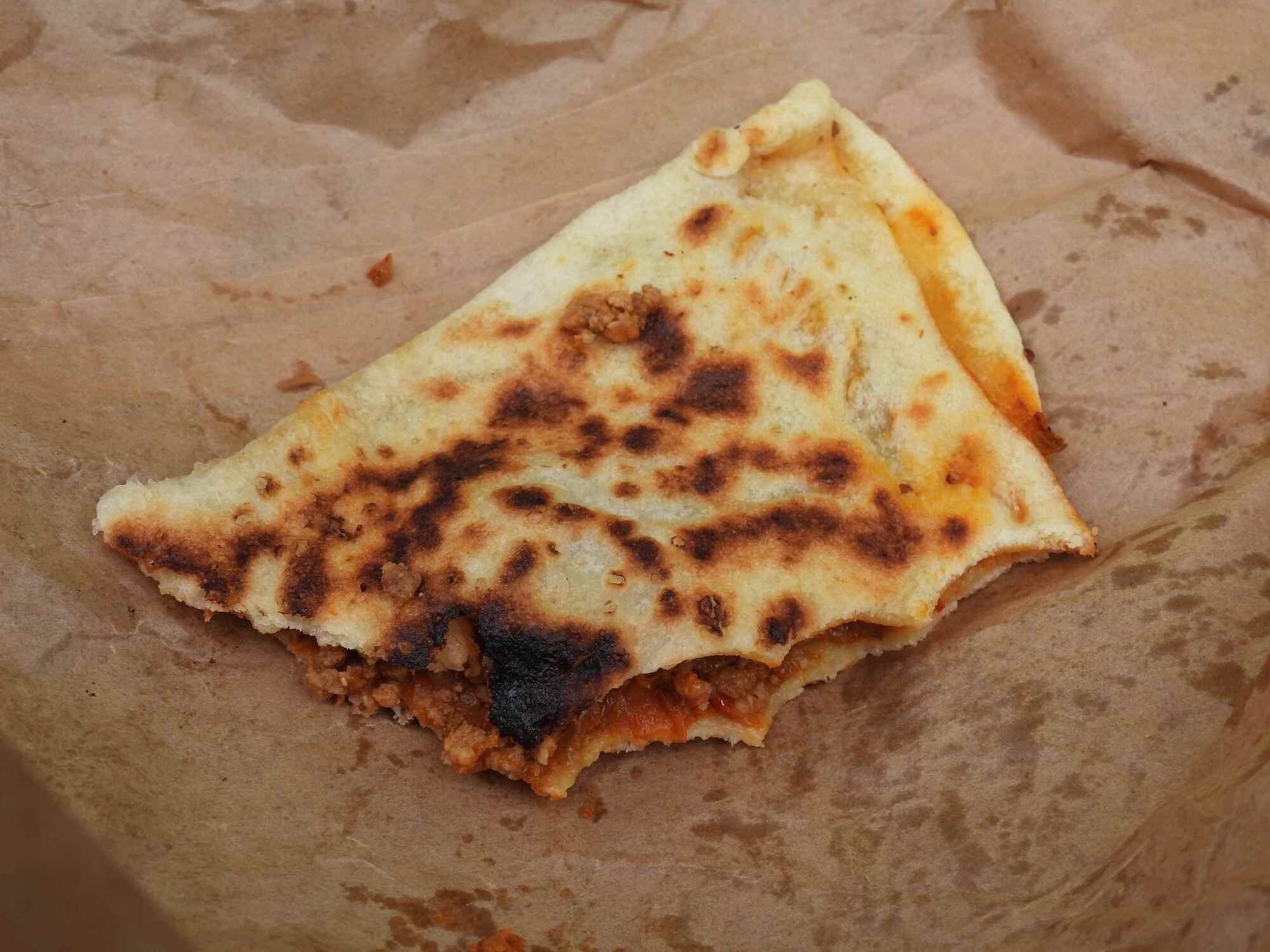 It was good, because we "walked on" to a stand that was making Tunisian flat breads, filled with chicken, potato, and cheese, which were a great choice.