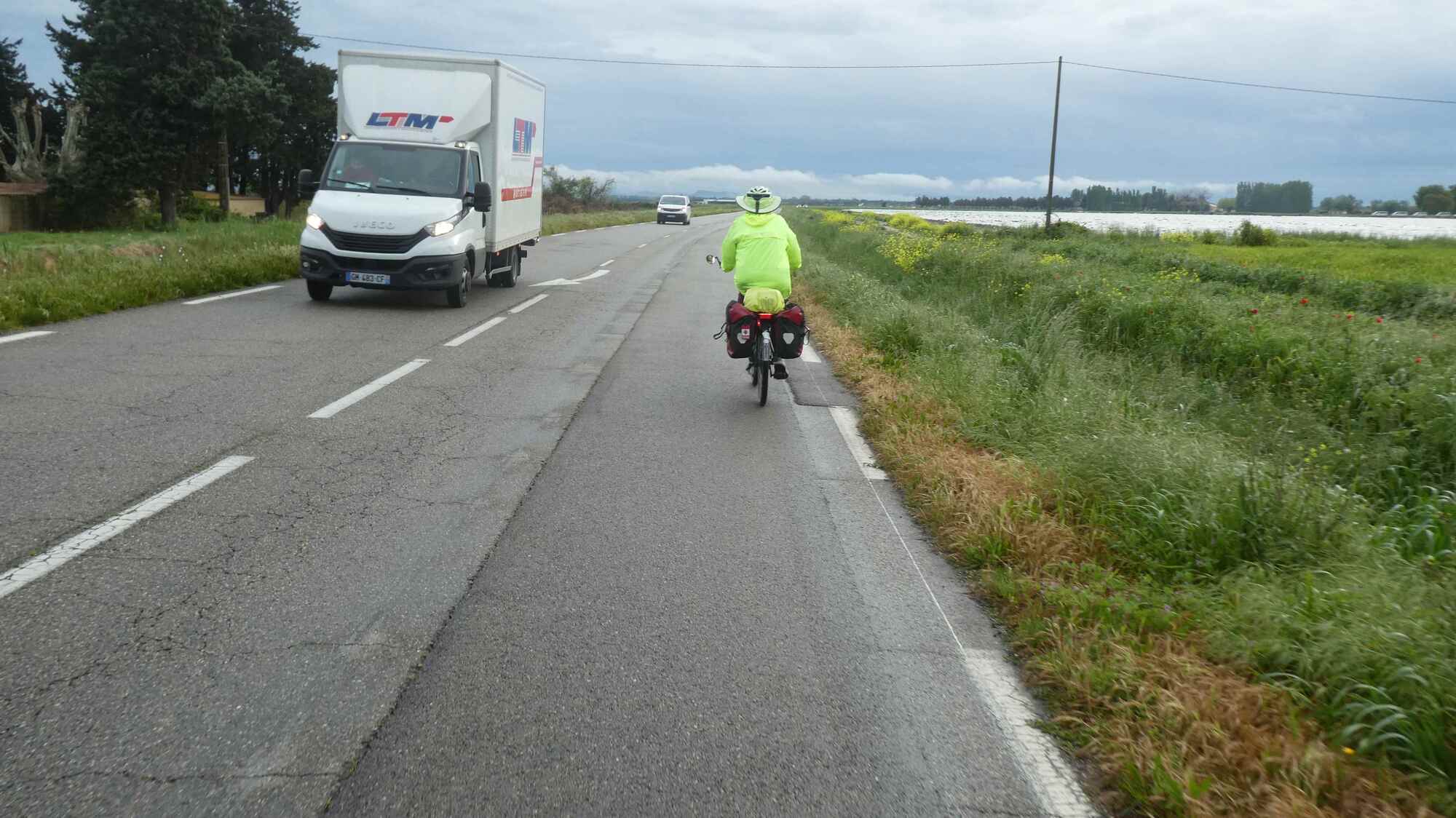 We started out on the main routes to Saintes Maries and Salin de Giraud, which we had already noted as not so comfortable, because of high speed drivers.