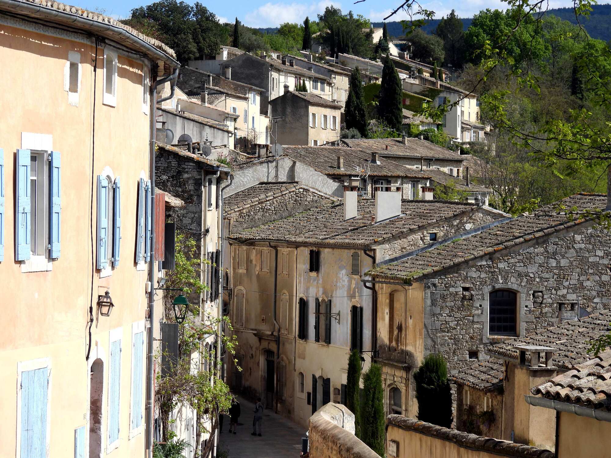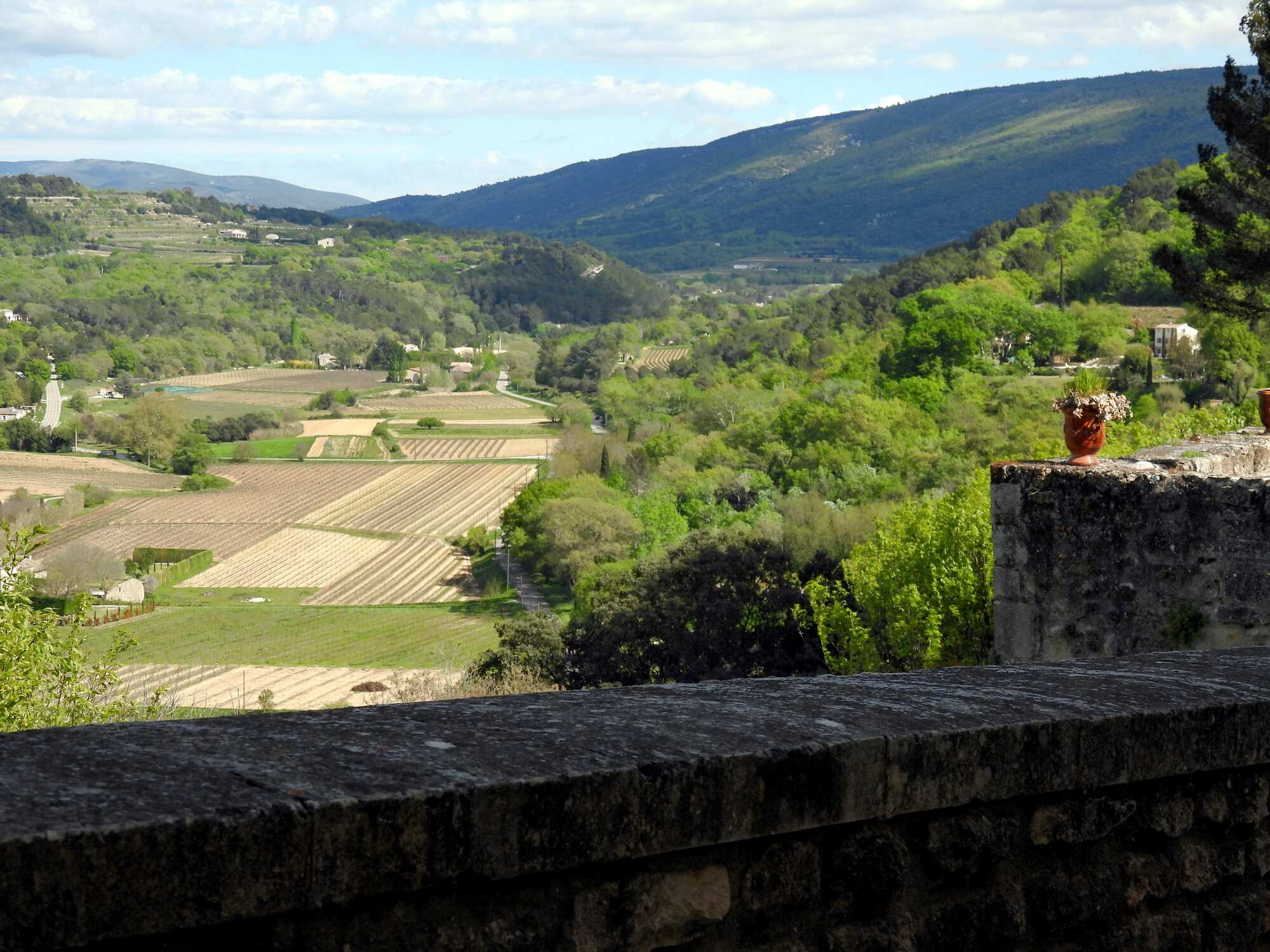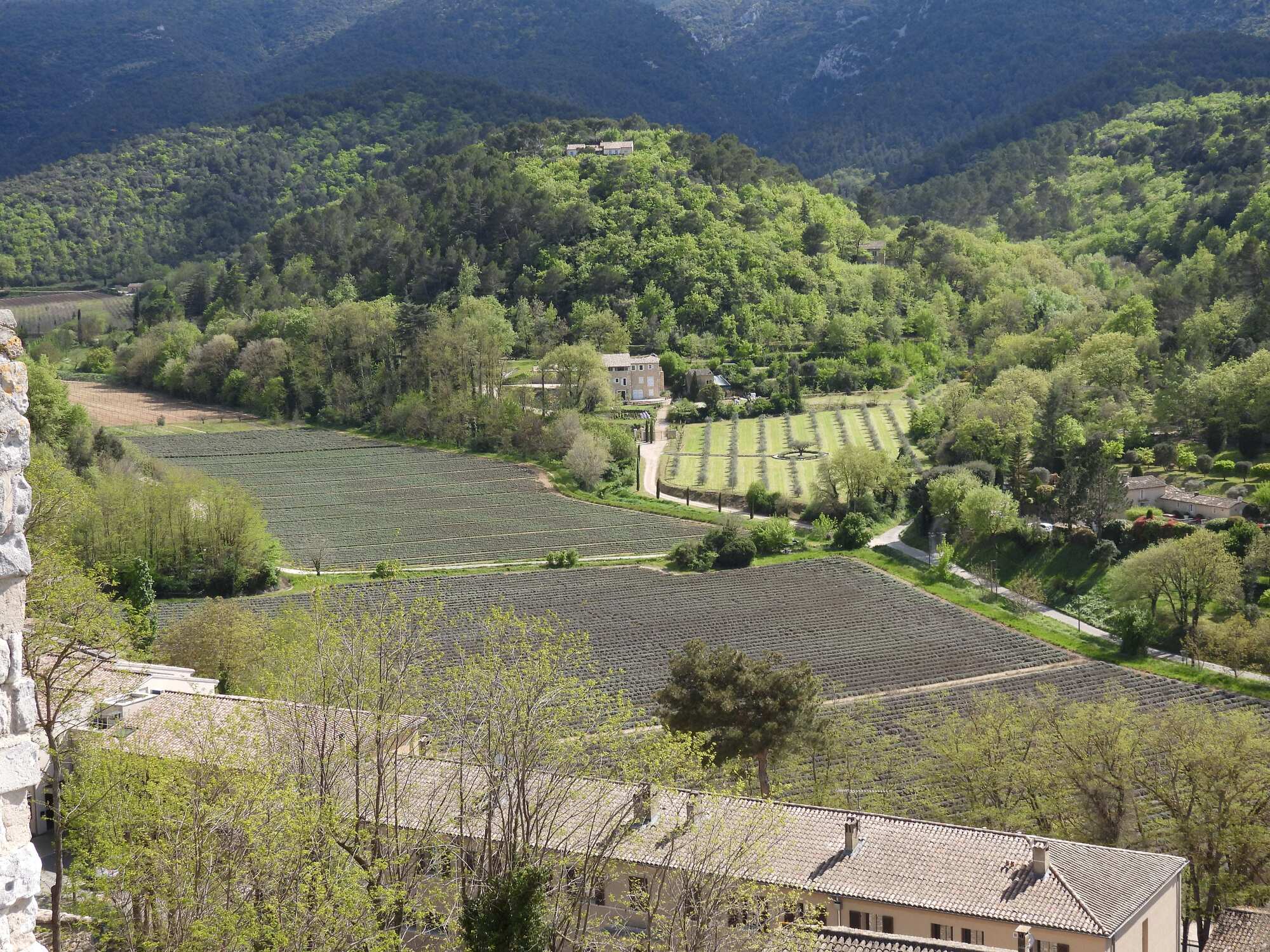 The views of the town from inside the town are all beautiful, but even more impactful are the views of the valley from up in the town. From this perspective one can see how beautiful and fertile it is down there, and one can see the position of the mountains on either side of valley as well. Another amazing thing is the large number of great villas than can be seen dotting the landscape. It seems one could become a Peter Mayle very easily, by grabbing one of them. We looked down and decided which we would like to have.