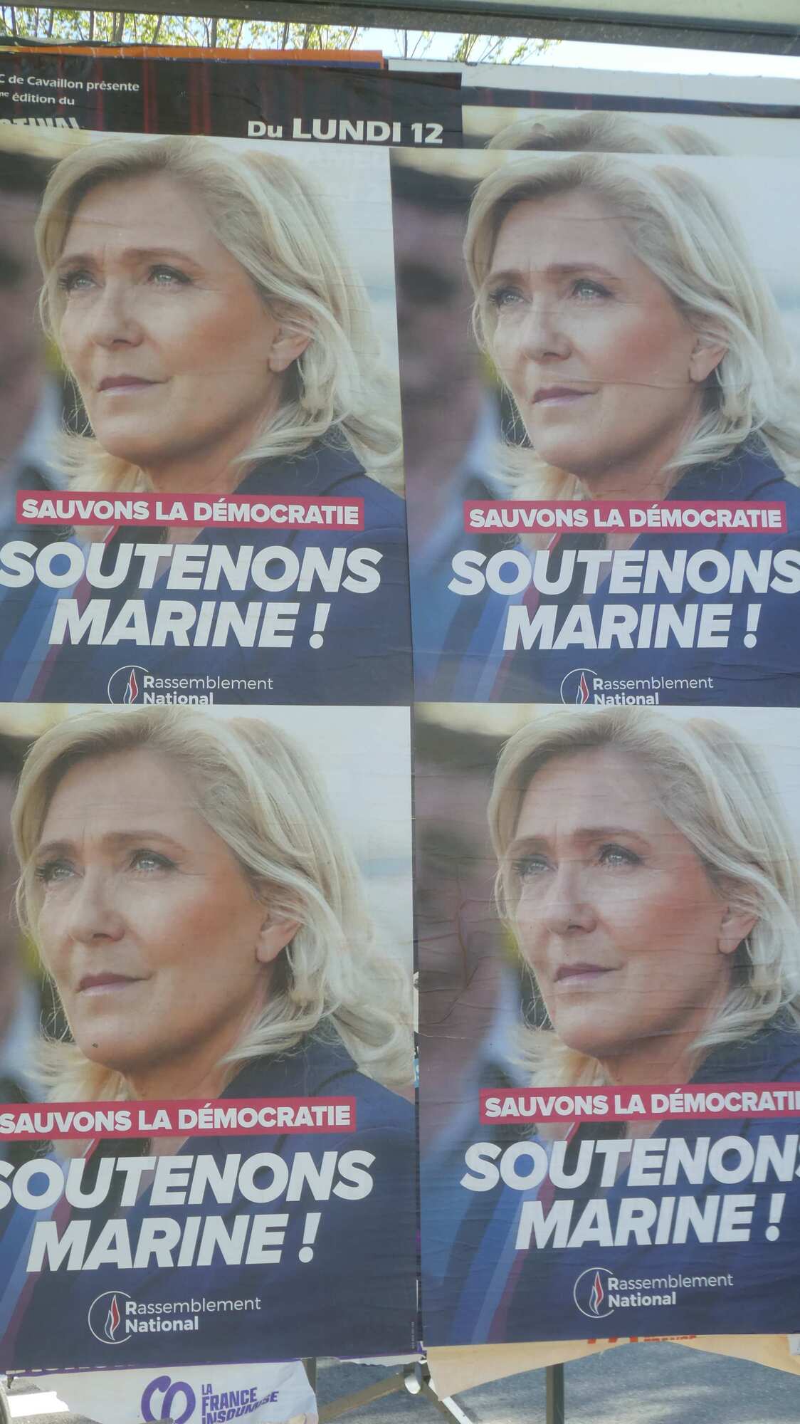 At the end of the bridge was something else scary, posters in support of Marine LePen. The caption says "Let's save democracy". It seems to be a strategy of the Right Wing to claim exactly the opposite of what they plan to do.