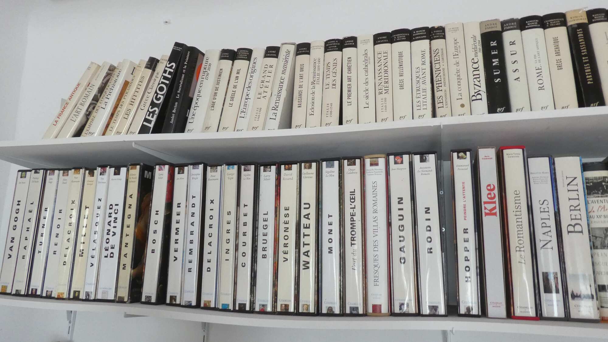 At the base of a street that leads to the top of the town, we found our BnB, with its very pleasant host, Vincent. The BnB is a house from the 18th century, made of stone like all others in the town, and tremendously atmospheric. We have two or three rooms on an upper floor - very large and airy- and with many books on the shelves. Below is part of one shelf, containing coffee table size and quality books on about 100 famous painters or famous art history eras. Vincent said it was not he, but his father, who was the scholar on this.
