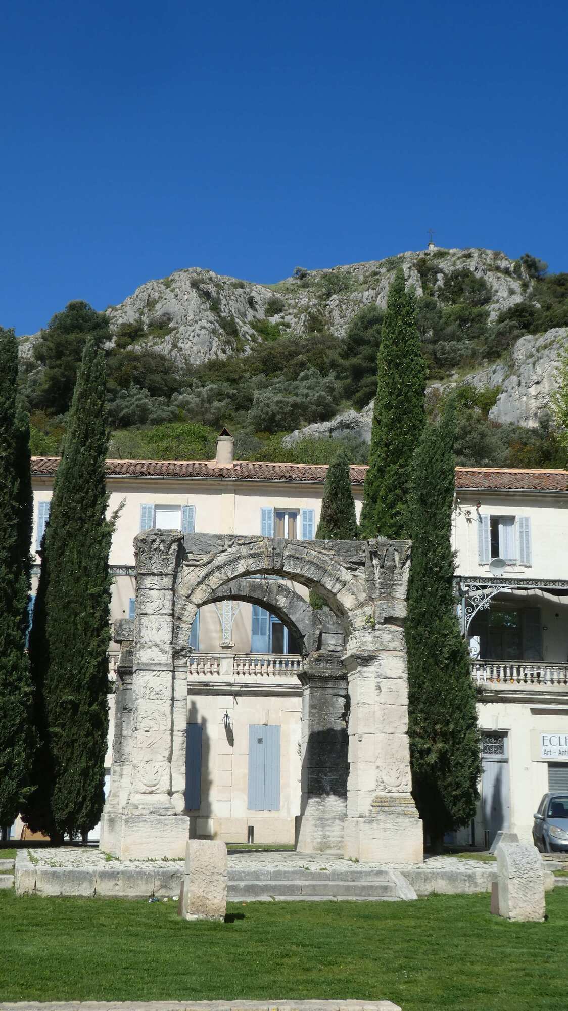 In this park there is a free standing Roman arch, a great photo candidate. According to Copilot: "The Roman Arch of Cavaillon dates back to the early 1st century and is a remarkable vestige of the ancient Roman city of Cabellio. Originally, it was located in the heart of the city, on Place de l'Évêché (now Place Philippe de Cabassole) and was likely part of a larger complex, possibly serving as the entrance to the Roman forum.