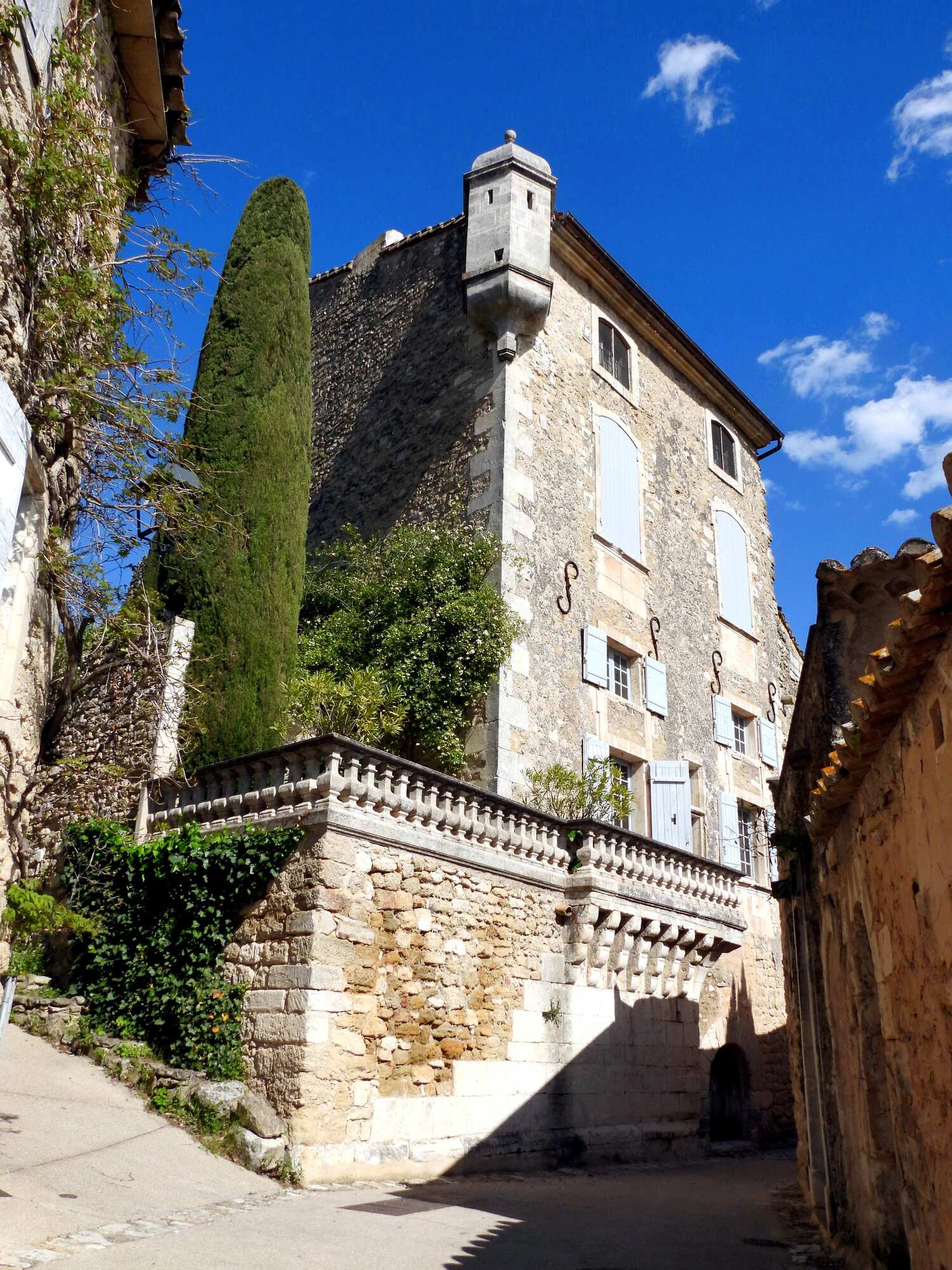 We quickly picked up the camera and went out to reacquaint ourselves with what all the fuss is about. The fuss, we found, is about that the town is a knockout for beautiful, rustic, buildings and lanes, and the views to the valley are stunning. In addition, we spotted dozens of villas down below that we could buy in a flash, had we not read Mayle's chapter (April) on how convoluted buying something here can be.