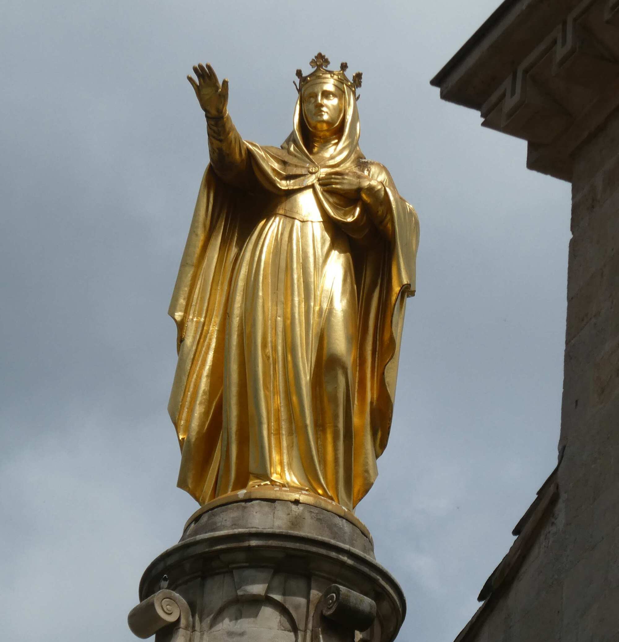Apt struck us as uninspiring, maybe because here on a Sunday nothing is happening. We did like the golden Madonna atop the 12th century Ste Anne Basilica, and the city gate with clock tower, but that was kind of it.