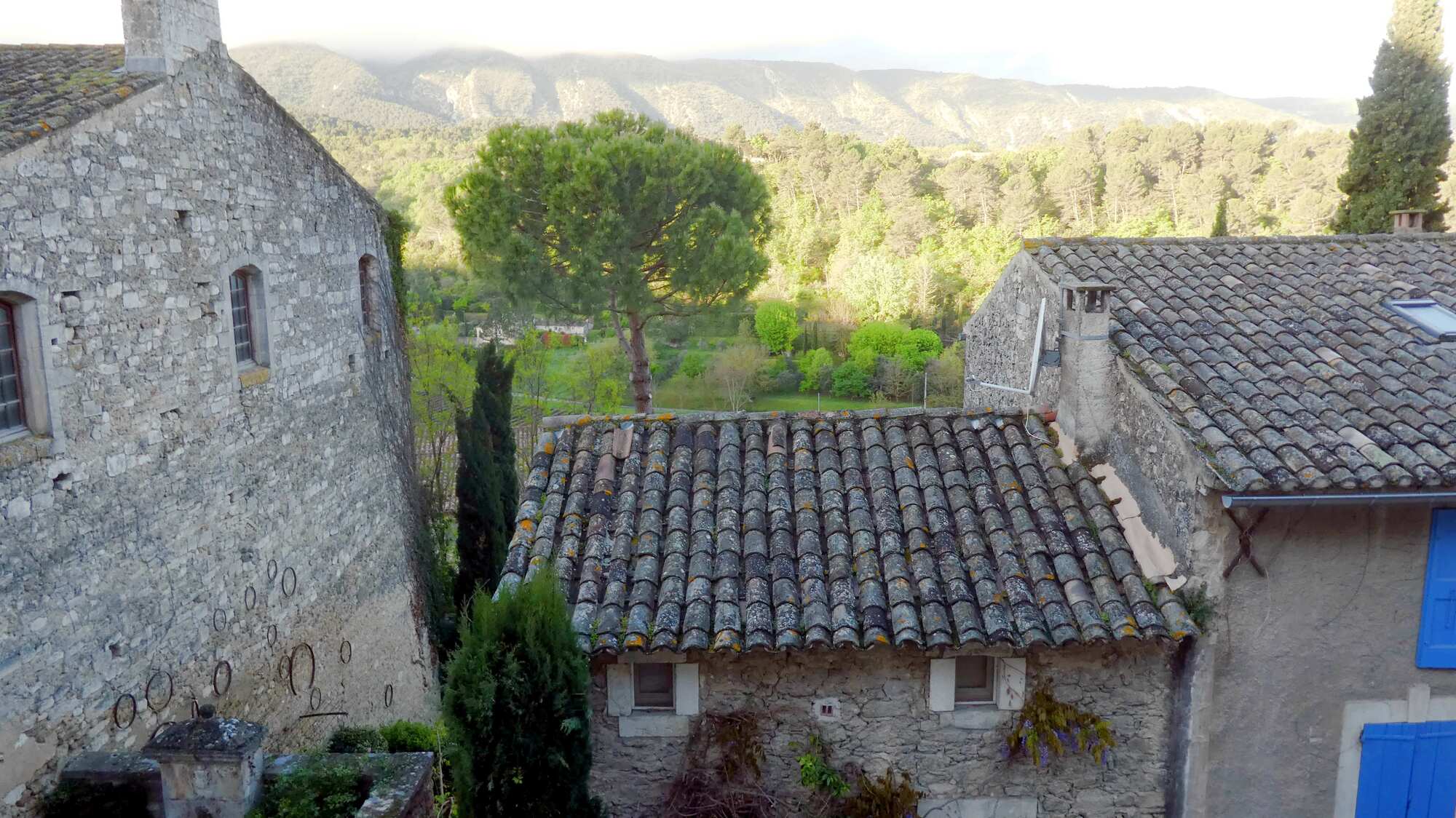 We started the day by looking out the window, and being pleased to remember that we were in Provence. Dodie was also tickled by the fact that from this window she could see a perched Kestrel. It turned out that a family of Kestrels lived in the little hole in the building opposite - just above the middle window, in the photo.