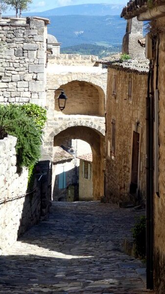 There is a staircase or path from the town to the castle, but we descended to the town by road, as far as that went. Far more than even Menerbes, this is a place of narrow cobbled passages. It really felt like some sort of mountain stronghold, which I guess it was.