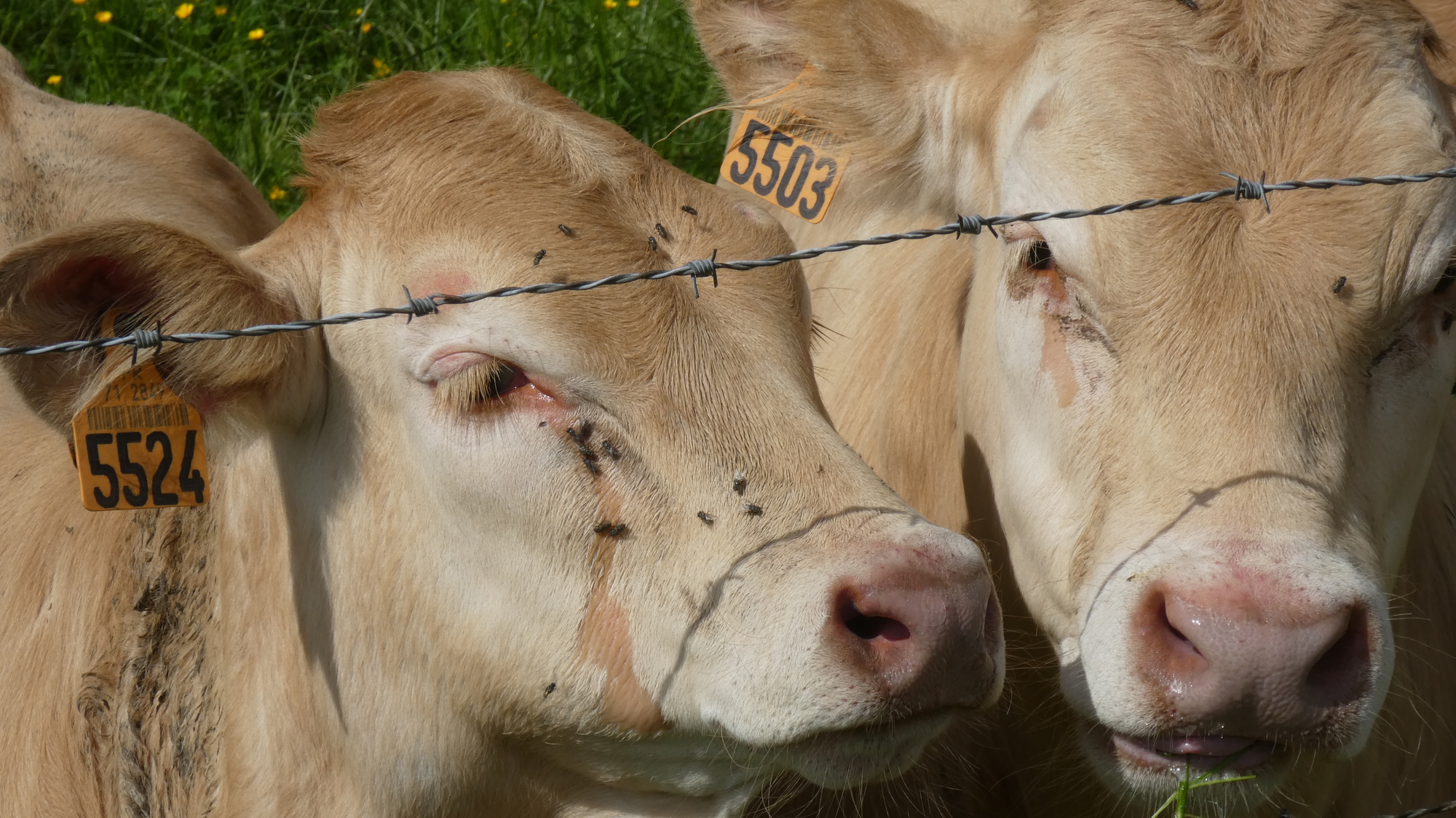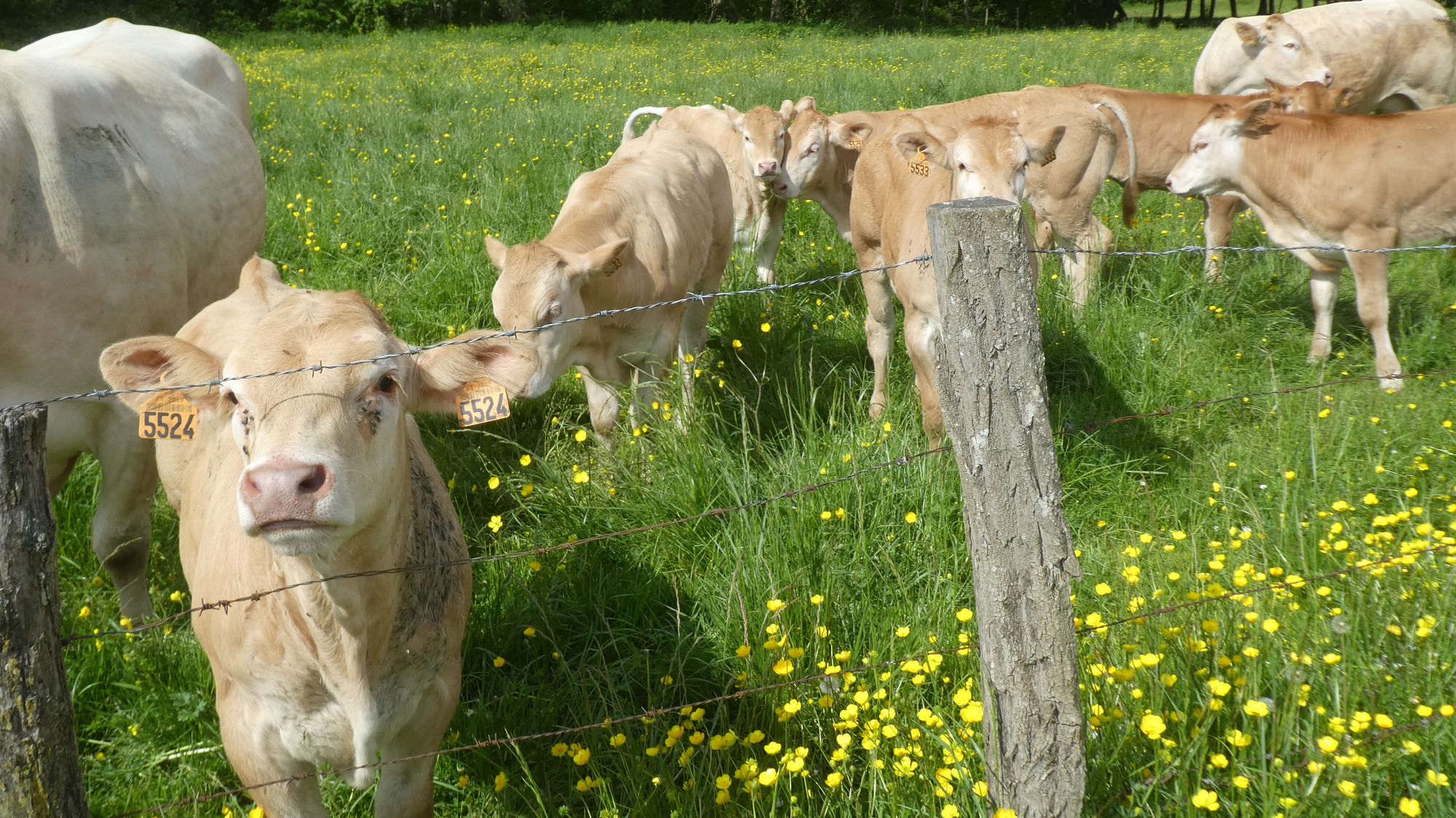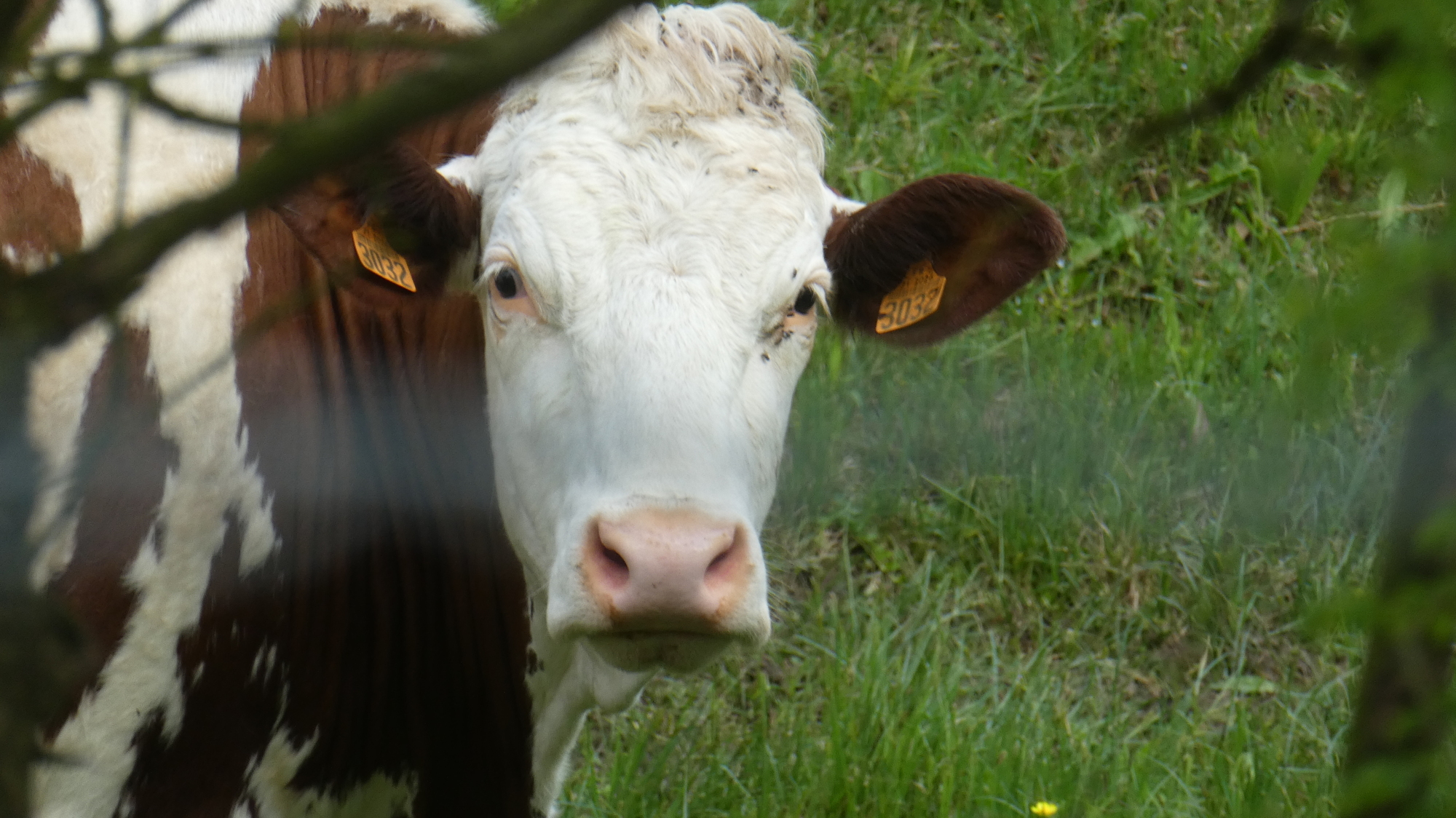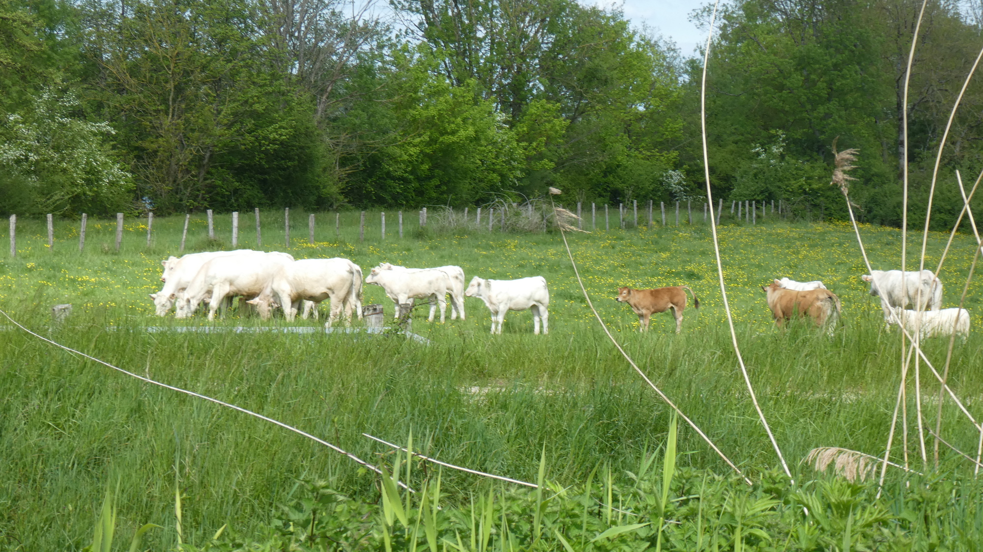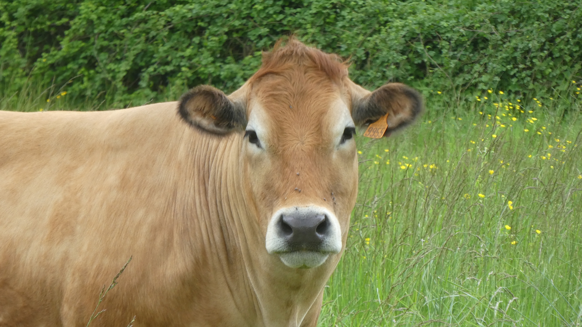 Ever since Laurie's comments on how the Charollais cattle did not appear to have proper large "cow eyes", we have been "eying up" the creatures we are meeting in the fields. How about these?