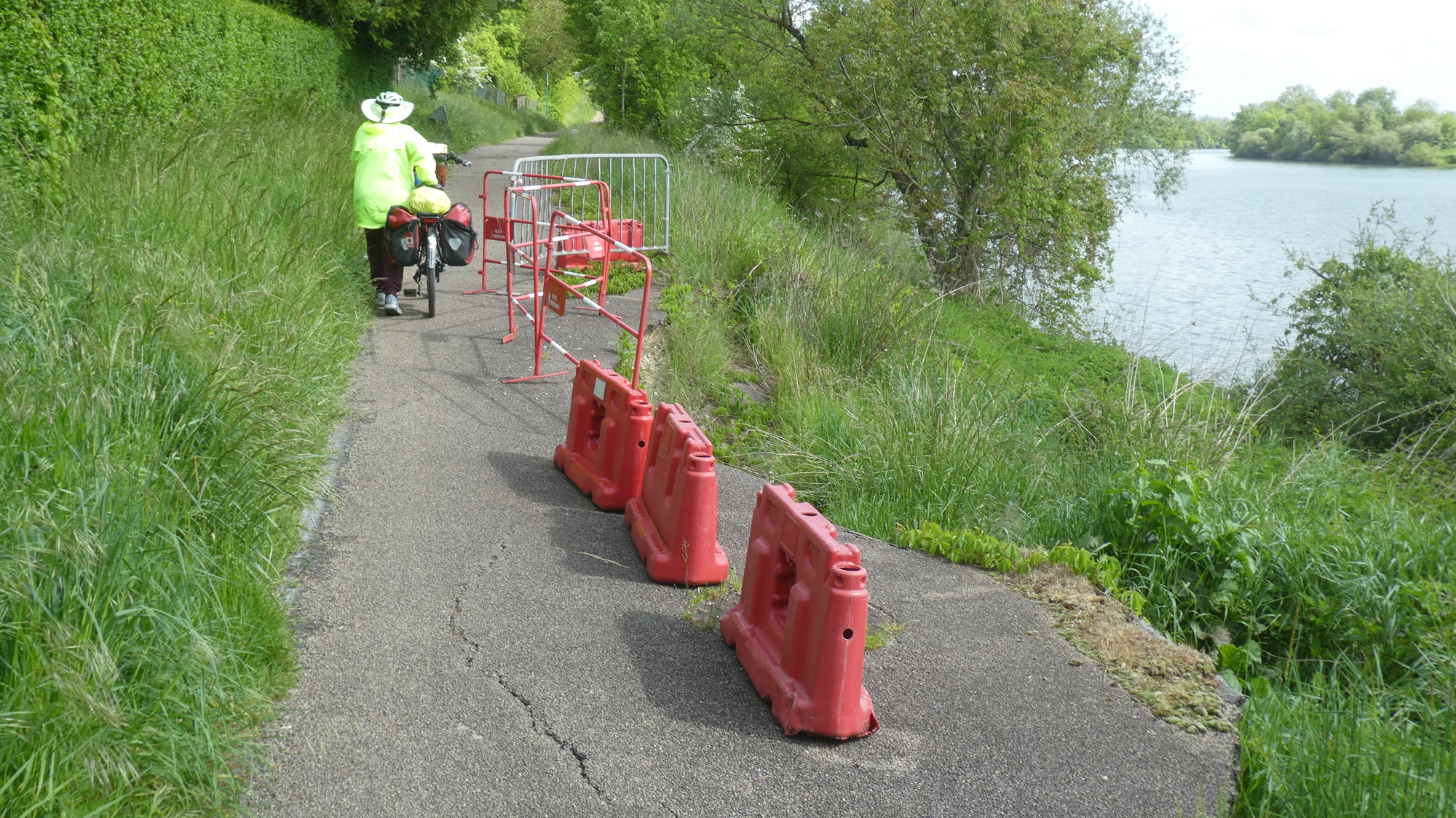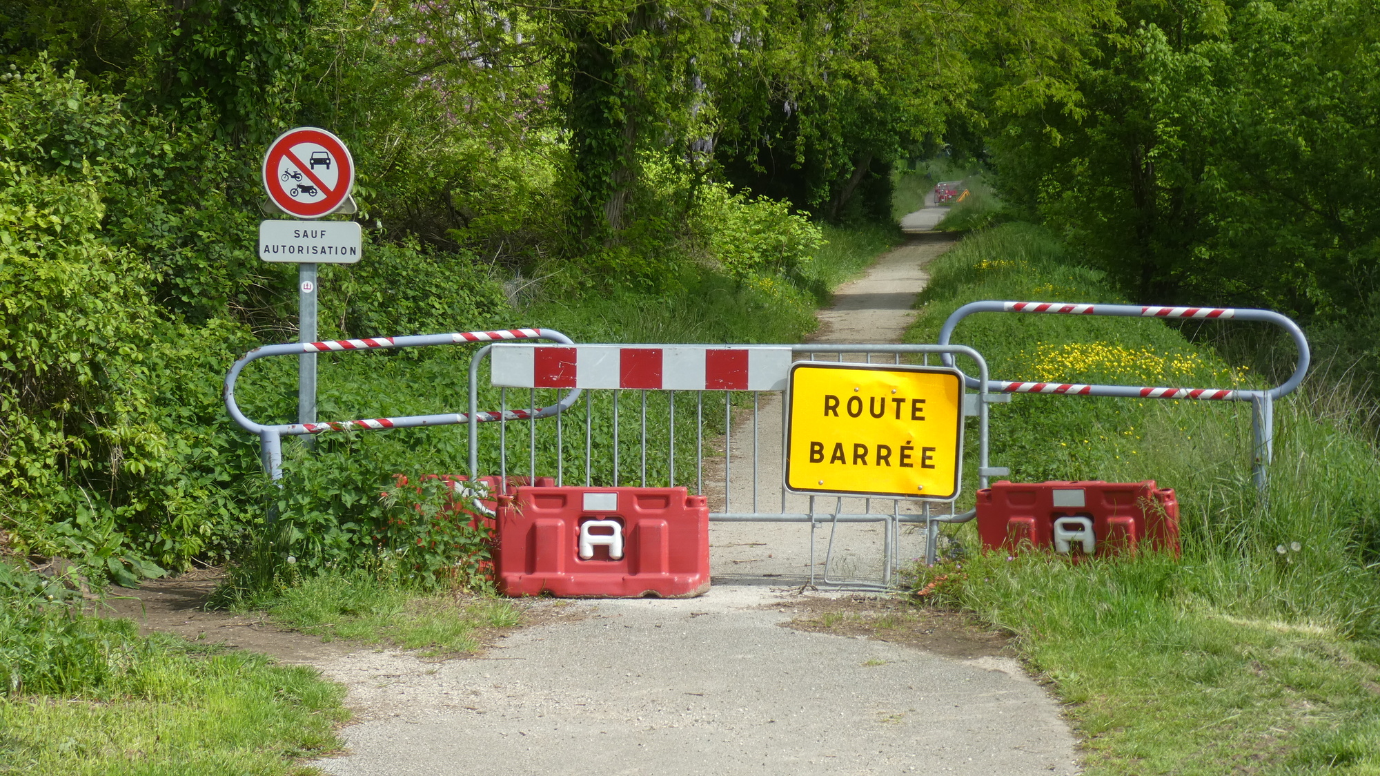 Because this is France, we soon came to our next blockade. We point out peevishly that such blockages are being done to EV 6, which is a premier international bike route. Not that the workers with the signage probably know or care about that.