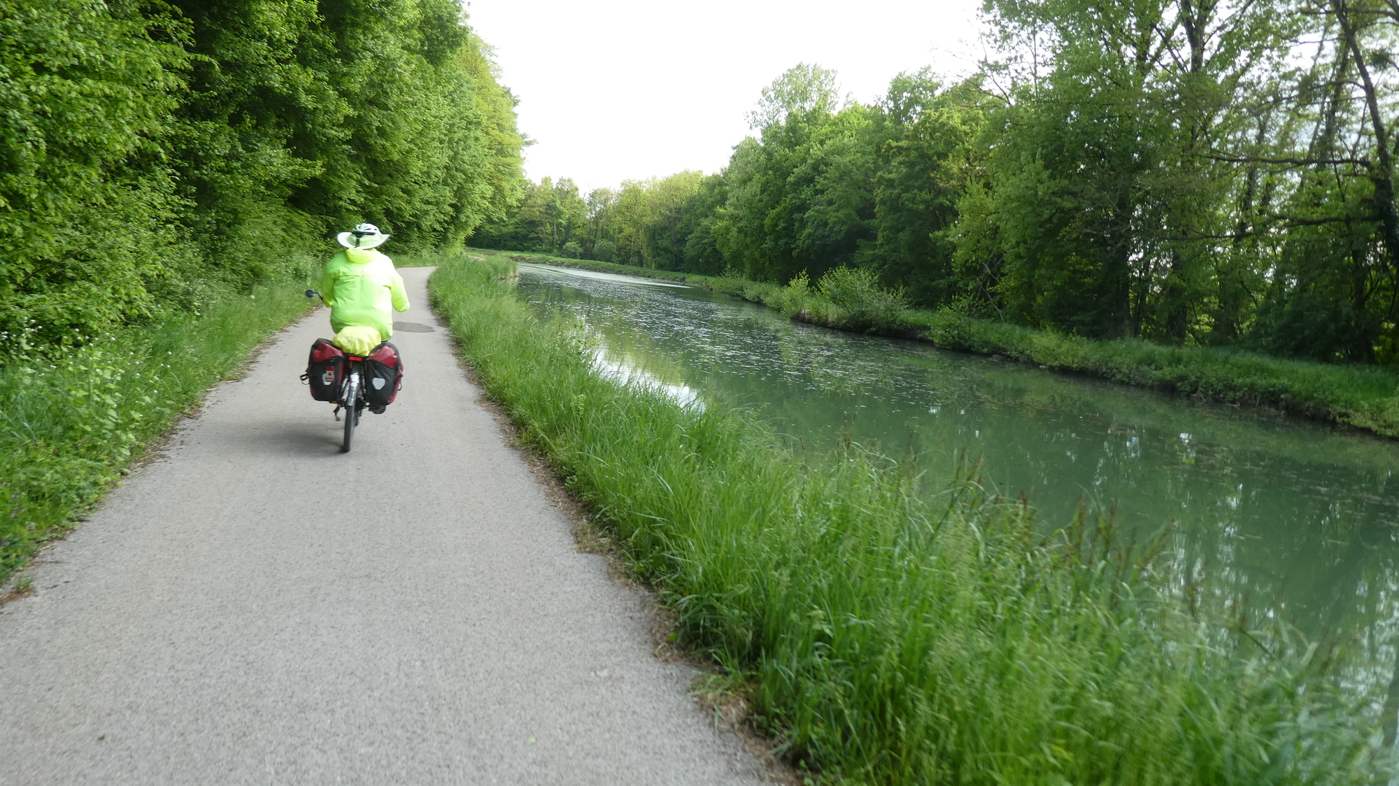 By the time we had left Losne and eventually turned south, along the Canal du Rhone a Rhin, we had to all but quit using the assist. That made things extra tiring. Also the clock was beginning to run out, though there is extra time now that it's April, before the sun will go down.