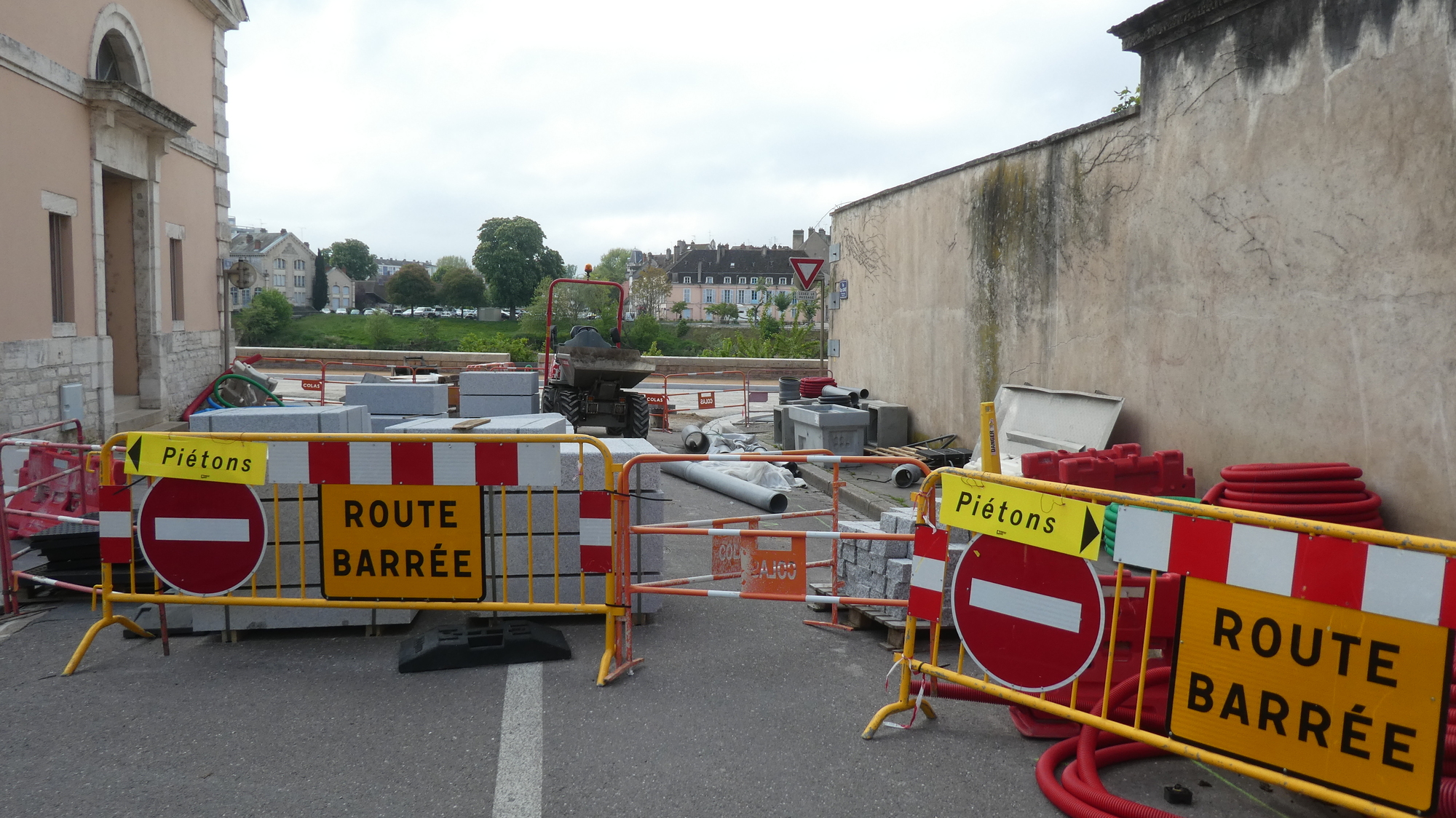 With a "Route Barreé" there are three critical considerations: Can we broach the initial blockage? Is the way really impassable further on? and Can we escape the area, past the blockade at the other end?