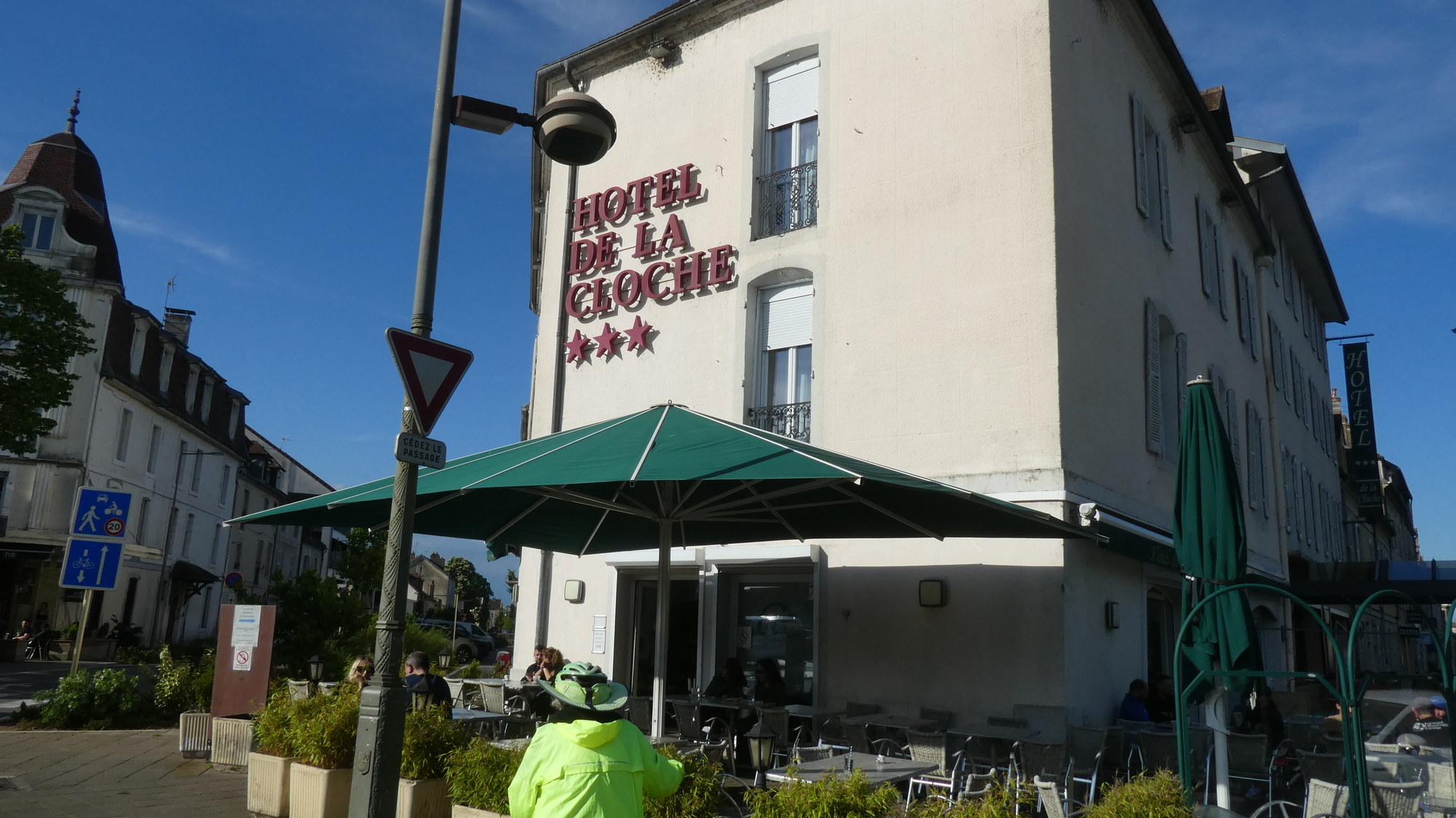 The hotel, thank goodness, had an elevator. If not, dragging the gear to our third floor room would have killed us. I flopped on the bed and napped for ten critical minutes, before I could do anything else. I was disappointed in my body, because I had carefully loaded in a huge pile of calories at the Kyriad's nice buffet in Chalon. But now, I could hardly move. Dodie on the other hand was tired but not catatonic. I had struggled to keep up with her, too, during most of the ride. We both have the same extent of assist - she is just Superwoman.