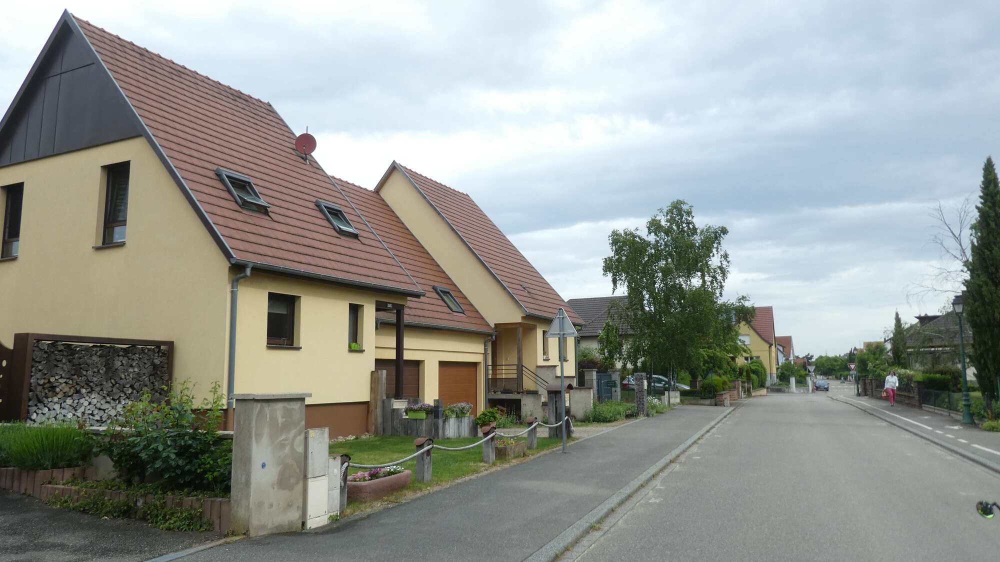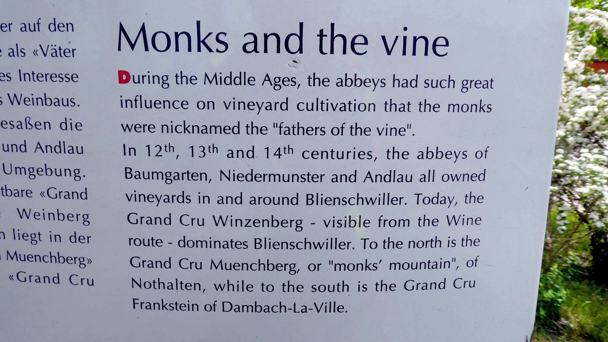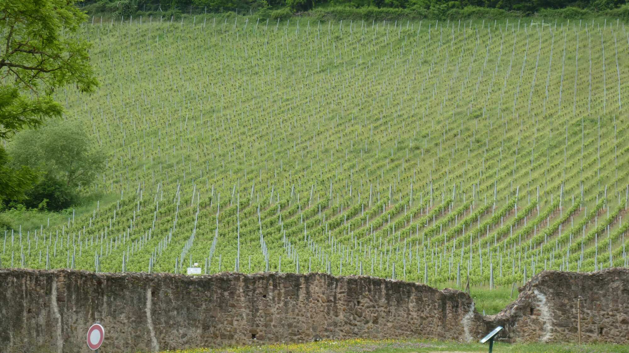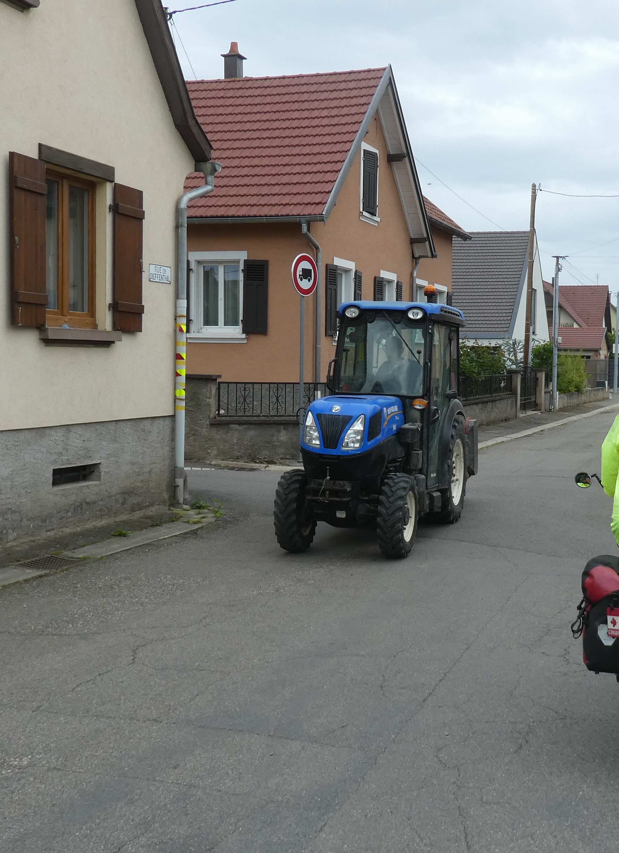 For the first perhaps 20 km out of Colmar we really didn't see much of vines, and villages were made up of solid but plain houses. There were a lot of newly sprouted corn fields, and many orchards of apples and cherries.