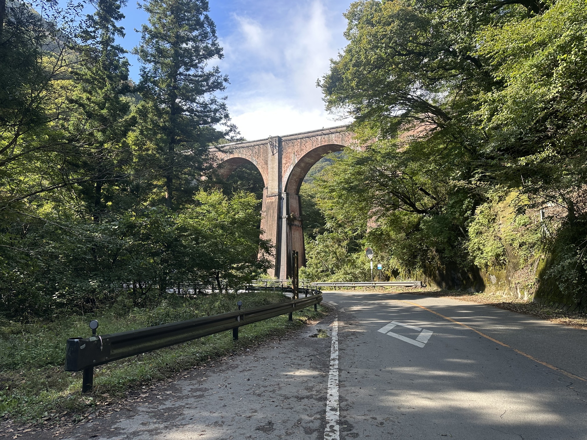 Old Highway 18 proved to be an absolute delight. It did indeed have very light traffic, and it switchbacked up the mountain running parallel to an old railway line, which offered opportunities to stop and explore the remaining bridges and tunnels — including, right at the outset, this very spectacular bridge: