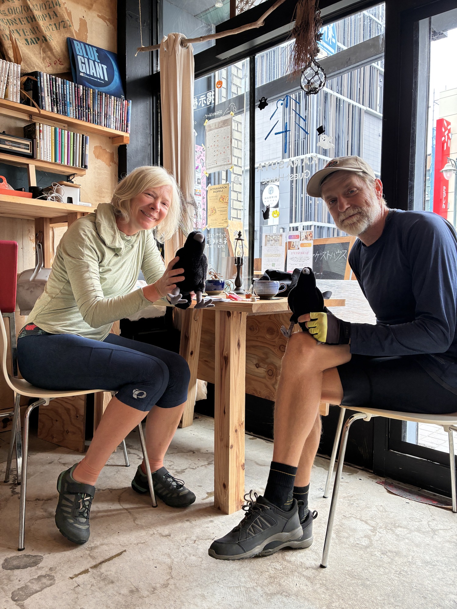 We had coffee with our guesthouse host in the morning and took some pictures with the stuffed crows that are the guesthouse mascots. It is called the Karasuya Guesthouse, karasu being the Japanese word for crow. A very laidback little place, that we enjoyed a lot.