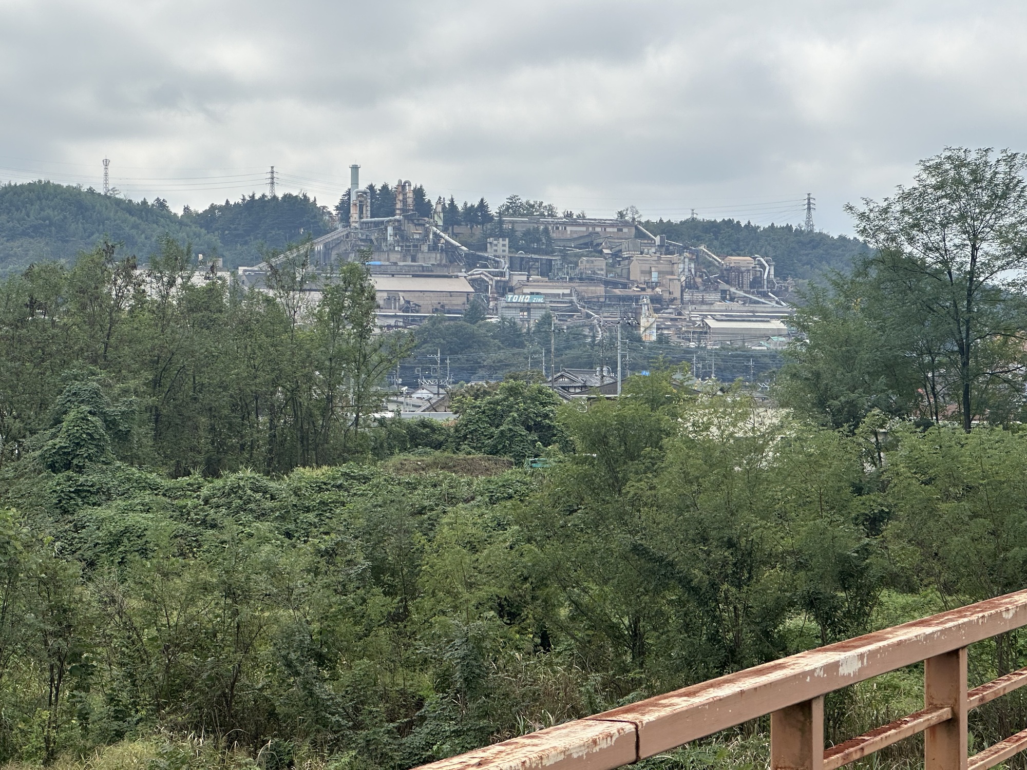 Further on, our route took us past a big smelter, which we were not tempted to explore, but which Tom wanted to document as part of his efforts to balance the depiction of Japan in this journal with some of the less picturesque reality. Not just all temples and mountains, folks!