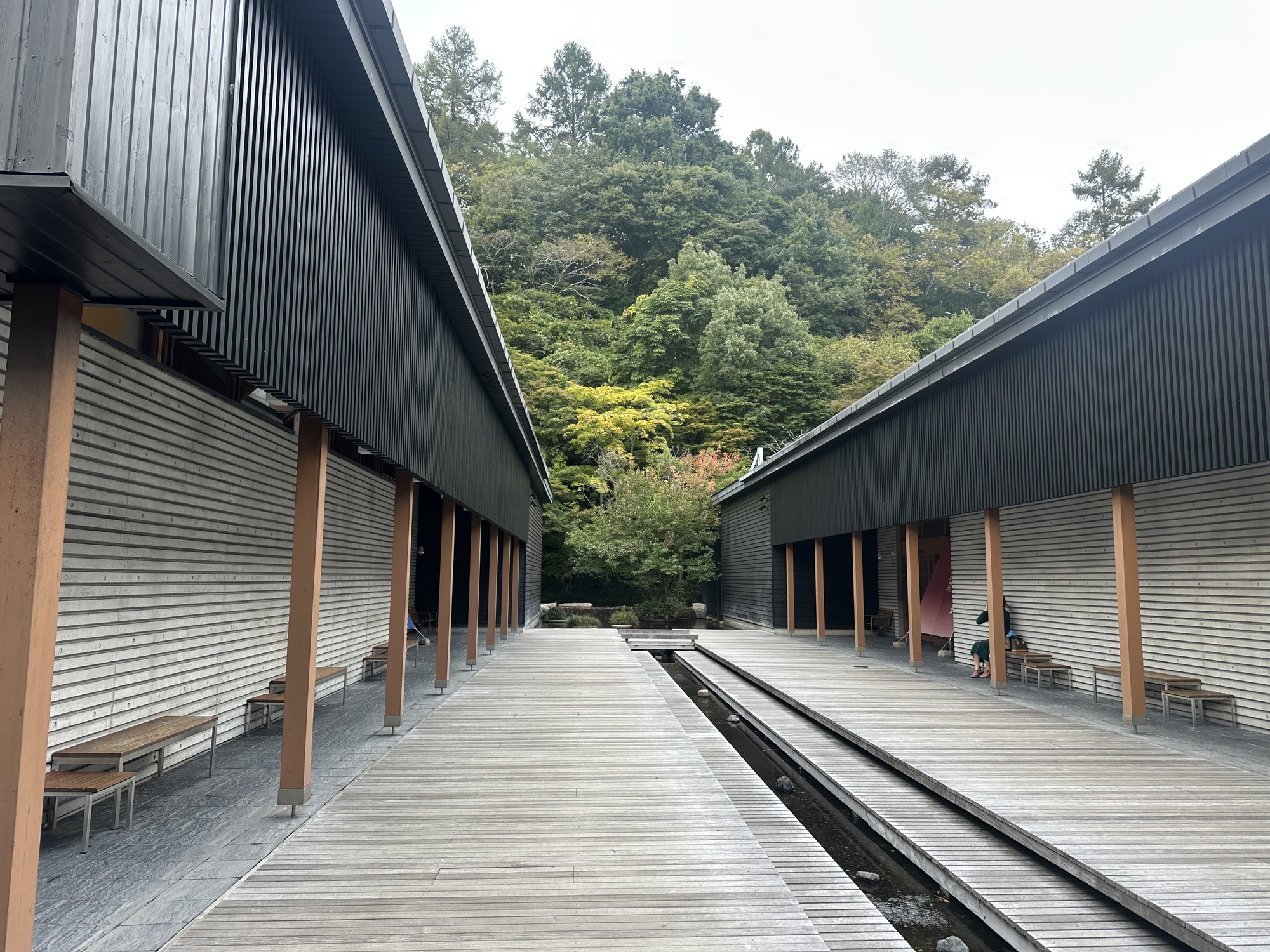 However, with the tent up, the next order of business was finding an Onsen. There was one just five minutes away, and this is where the Whistler vibe really intensified. Located on the grounds of a high-end resort, it was very modern and spa-like, and entry came with a modern spa price tag — more than double what we’ve paid for a bath previously. But it was worth it, with a large outdoor pool surrounded by autumn foliage and clouds of rising mist from the water. Thoroughly relaxed, we were to lazy to cook dinner and splurged at the neighboring restaurant before returning to our weird backyard campground.