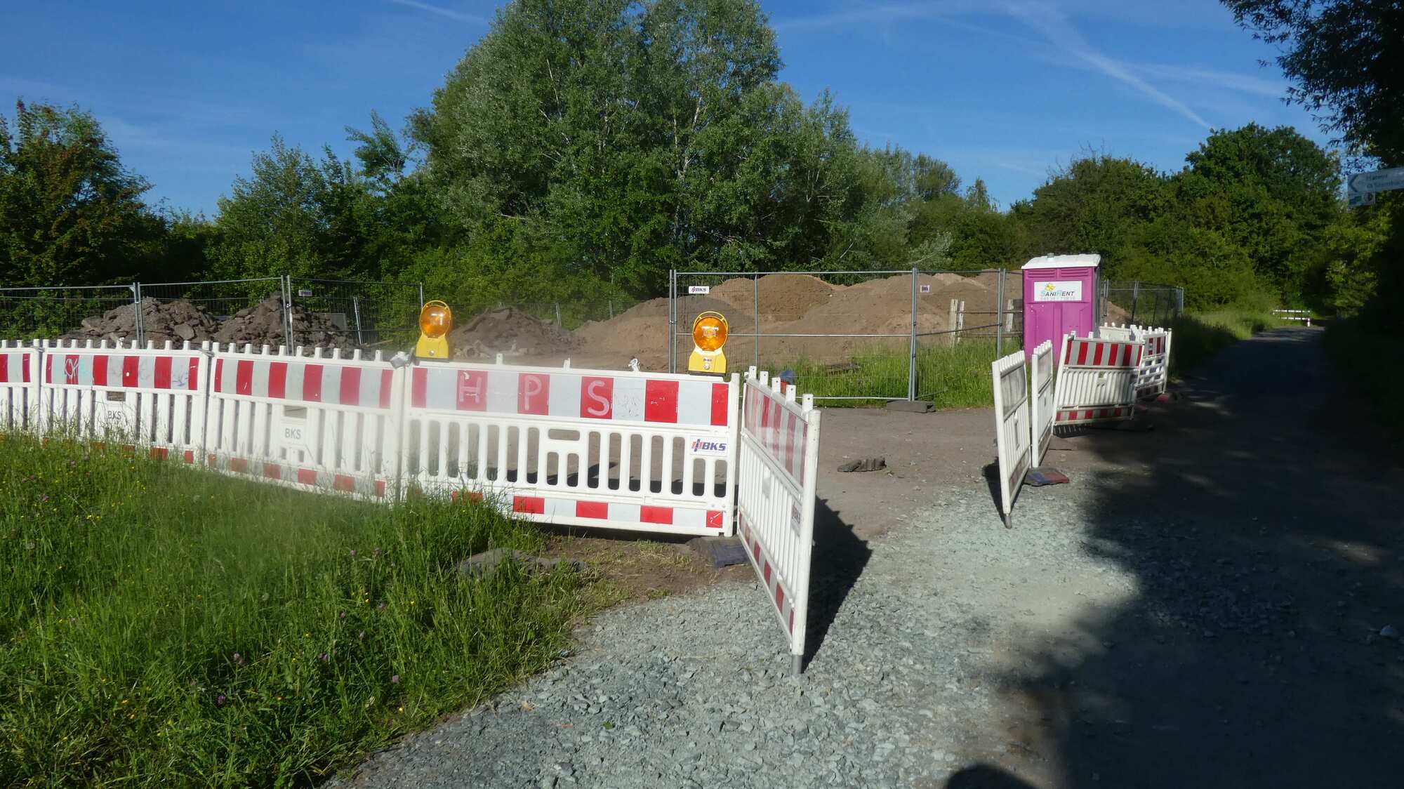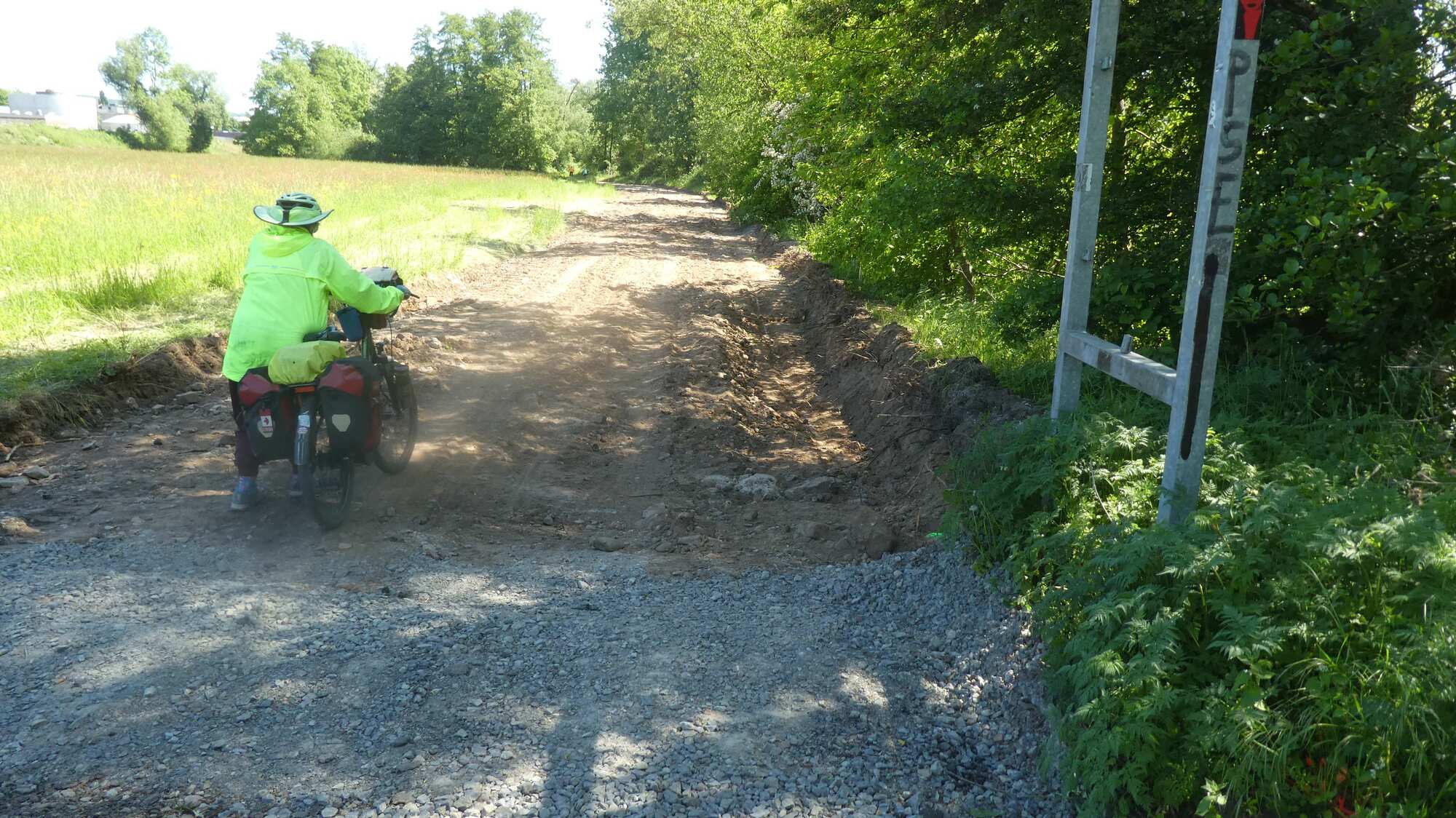 Referring to the path as idyllic wore thin, as we encountered another of several barricades for the day. This time it was just that they had chewed up the road for about 1/2 km.