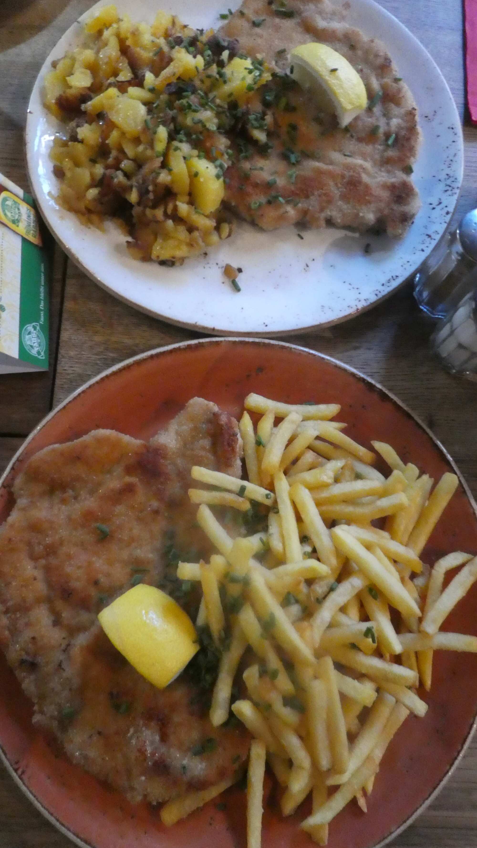 We then wrote up the whole thing, including about the old lady and her daughter that ran the place, what our room was like, what we ordered at supper, how Dodie shouted at rowdy people in the street at midnight, and what the old lady and her daughter came up with for us at breakfast. In short we were all over it. And now, here we were sitting in Zum Reisen in 2025, with me ordering schnitzel (again! as it happens) with me reading our 2015 blog to Dodie in amazement. It's not that nothing has changed, however. That time Dodie ordered the schweinbraten, and now for some crazy reason, schnitzel, like me.