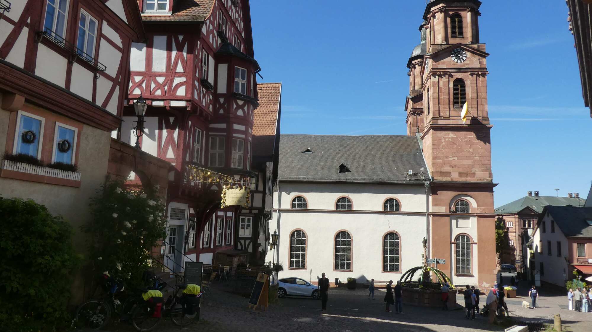 After about 15 km we drew abreast of Seligenstadt, and decided to go in for a look. Seligenstadt turned out to be one of those villages rich in fachwerk houses, which are so wonderfully attractive.