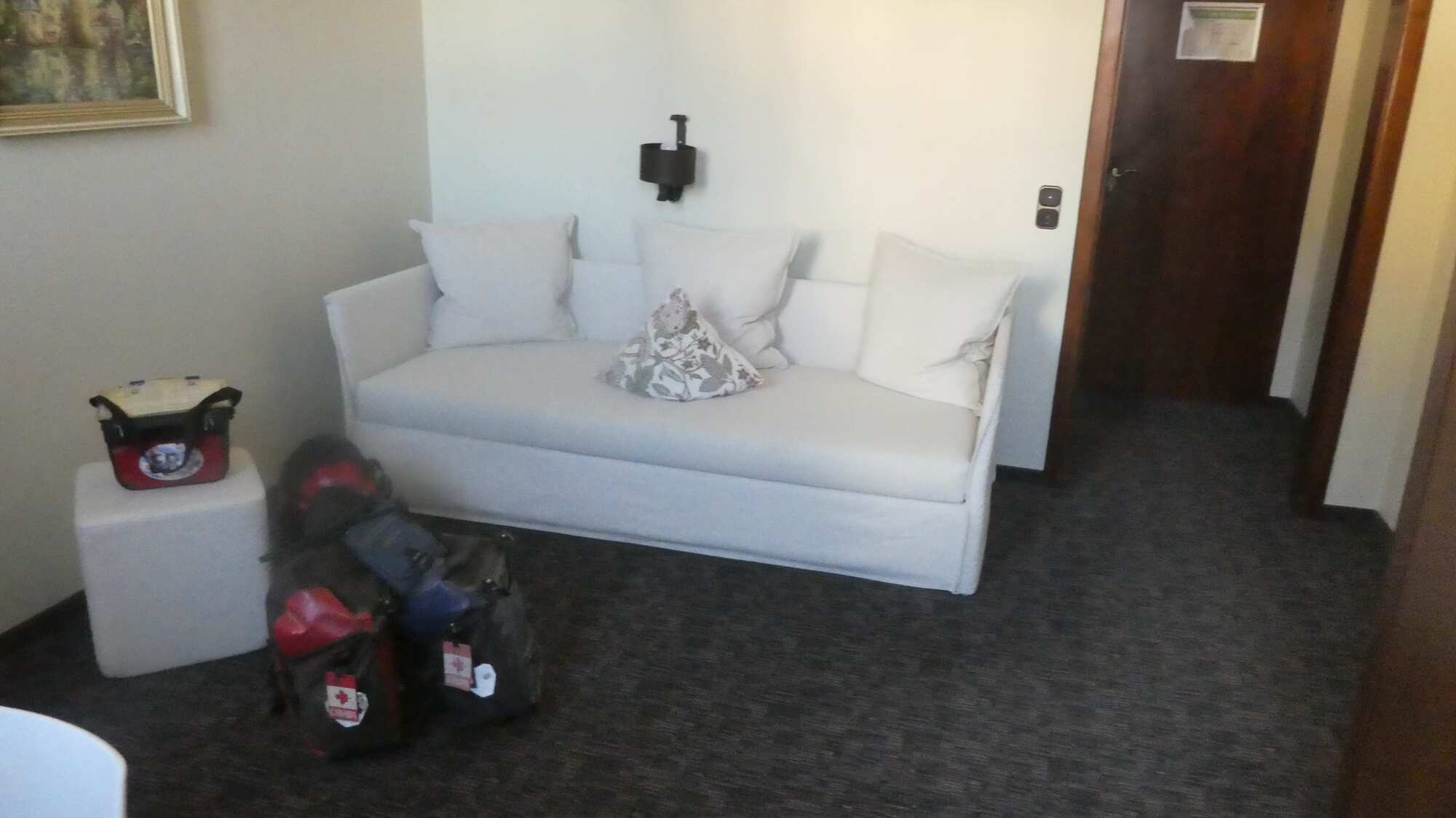 We checked in, and found that our space was a large bedroom, a sitting room, and another sitting room that is in one of the turrets that contribute to the building's style.