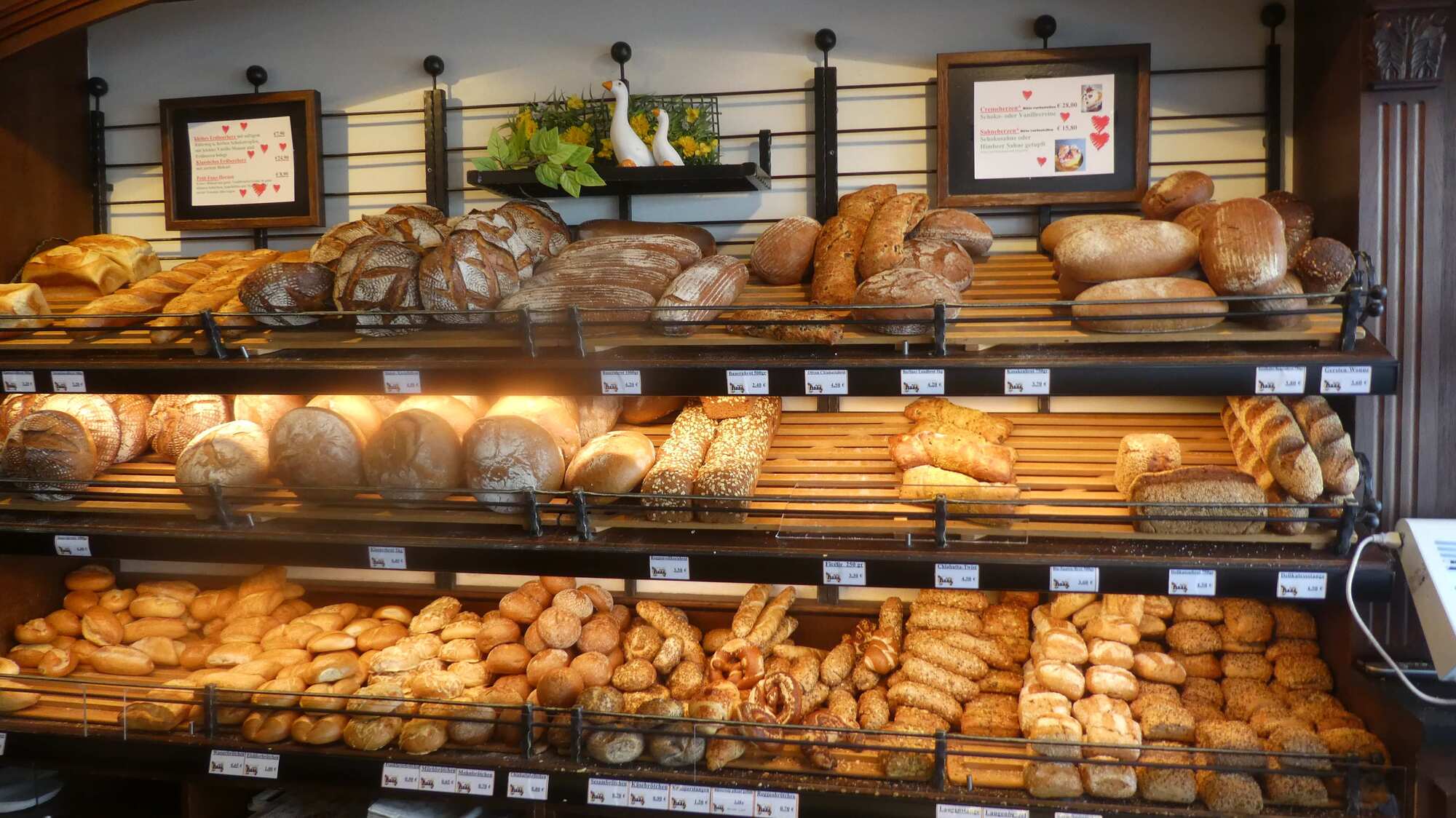 After appreciating the fachwerk houses for a while, I found the first bakery, and dove in. Yup, there were the schnitten. But now I had two glitches. The first was that I was not actually hungry. And the (related) second was that these things are too gooey to practically take along on the bikes. So, no schnitte for me. Maybe tomorrow.