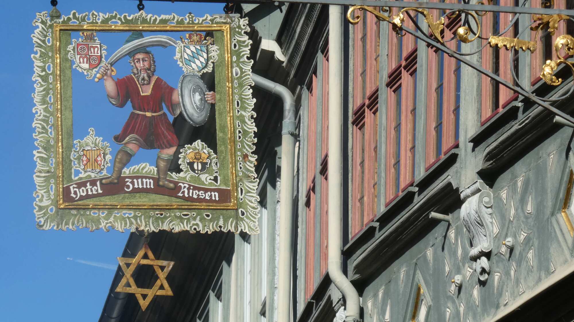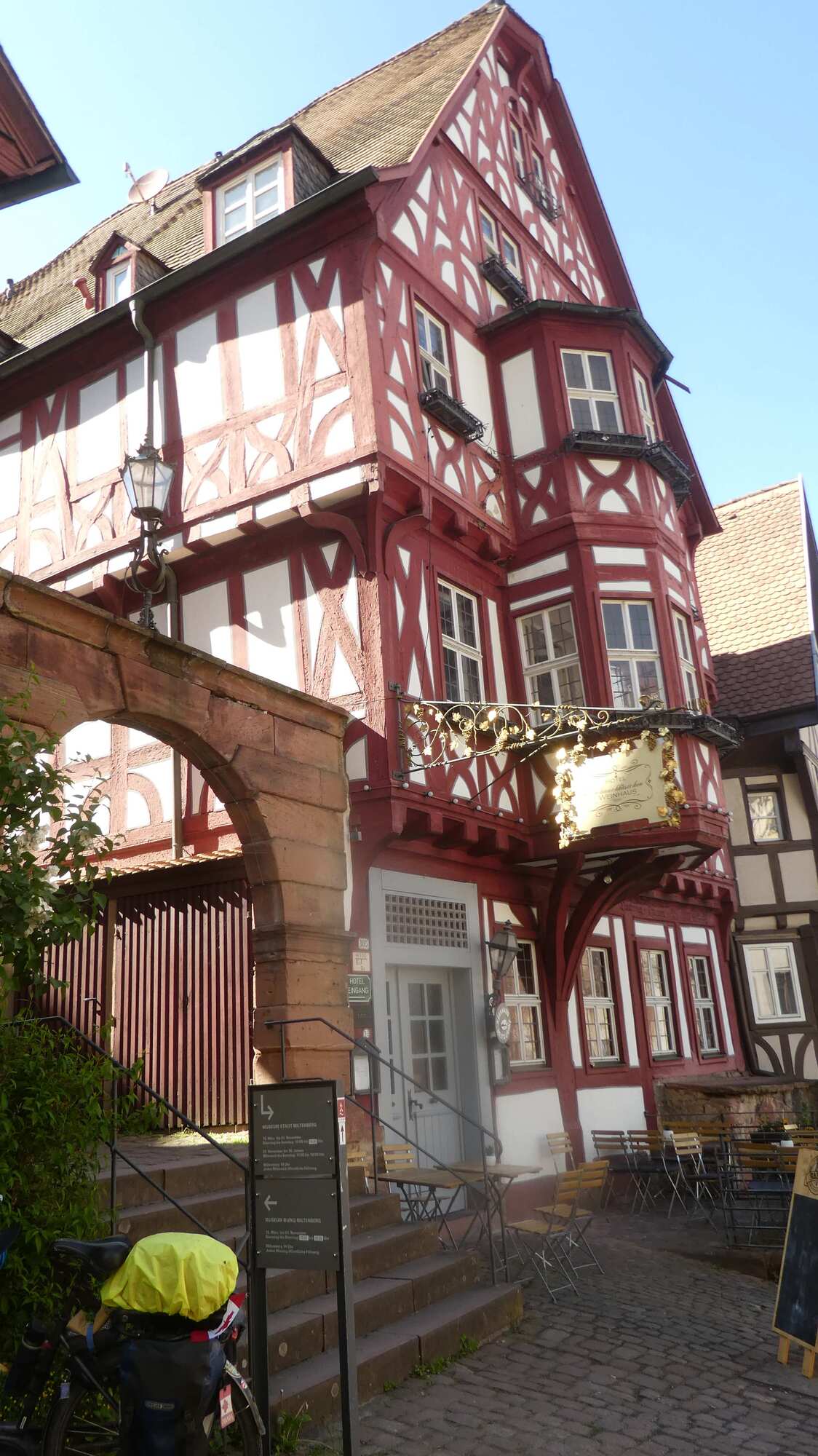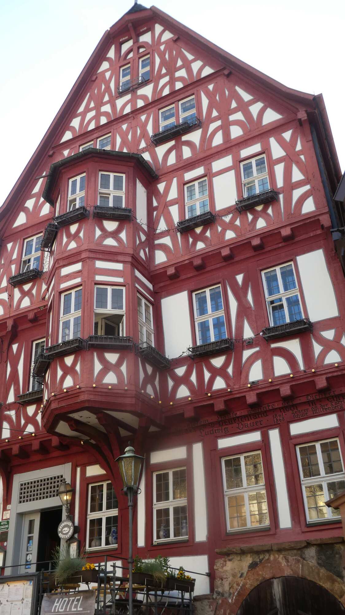 You can see from the photos how close we now were - how close until the lights finally came on in those grizzled heads. We had stayed here! We had noticed the place and its claim to fame, and busted open the piggy bank for a quaint room in the attic! It was 2015, and we were still camping, but we had some euros reserved for emergencies. Coming across this place ranked as an emergency, and though at 90 euros it exceeded our 80 euro maximum emergency budget, we went for it. What's more, we had already seen the hotel Schmuckkastchen, but had been able to resist staying there.