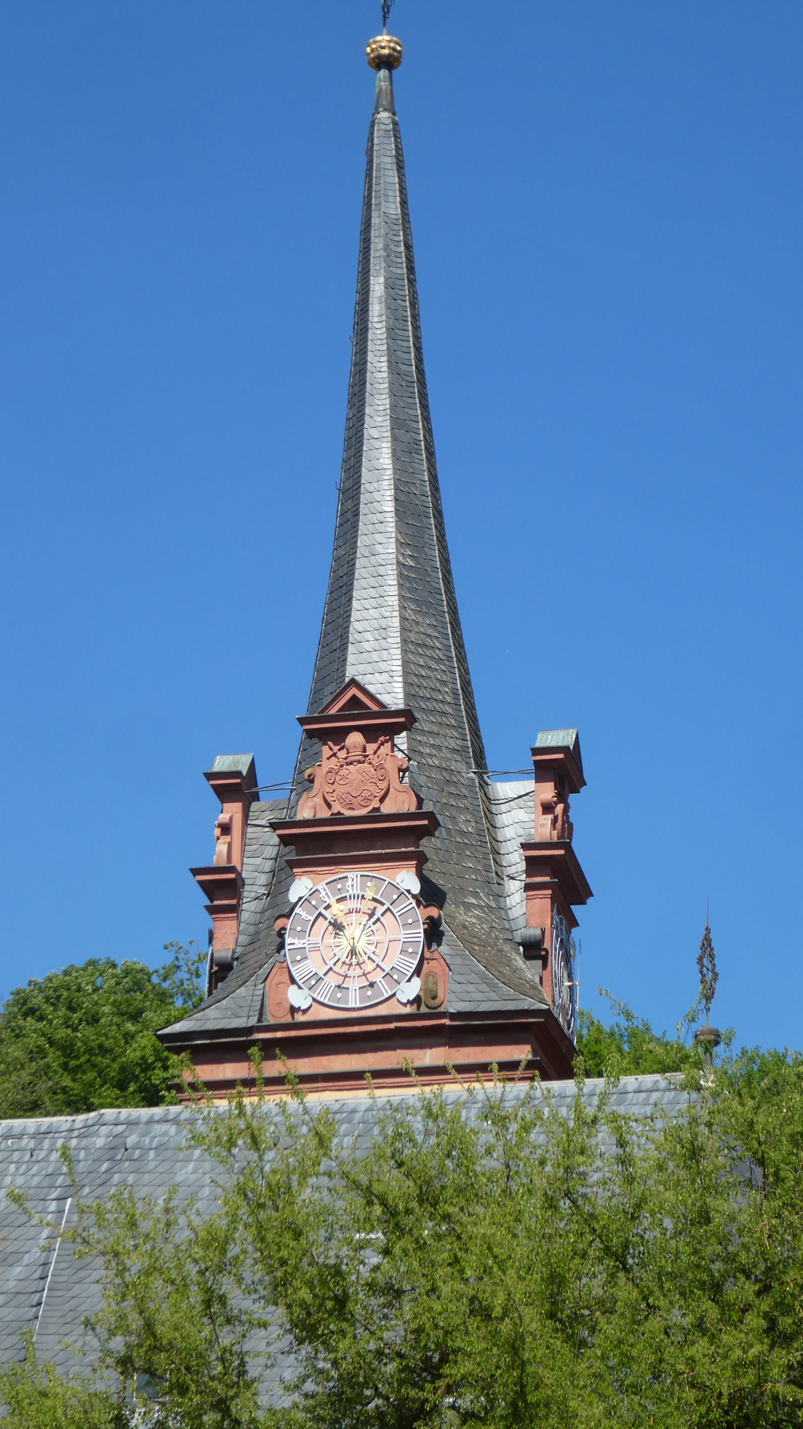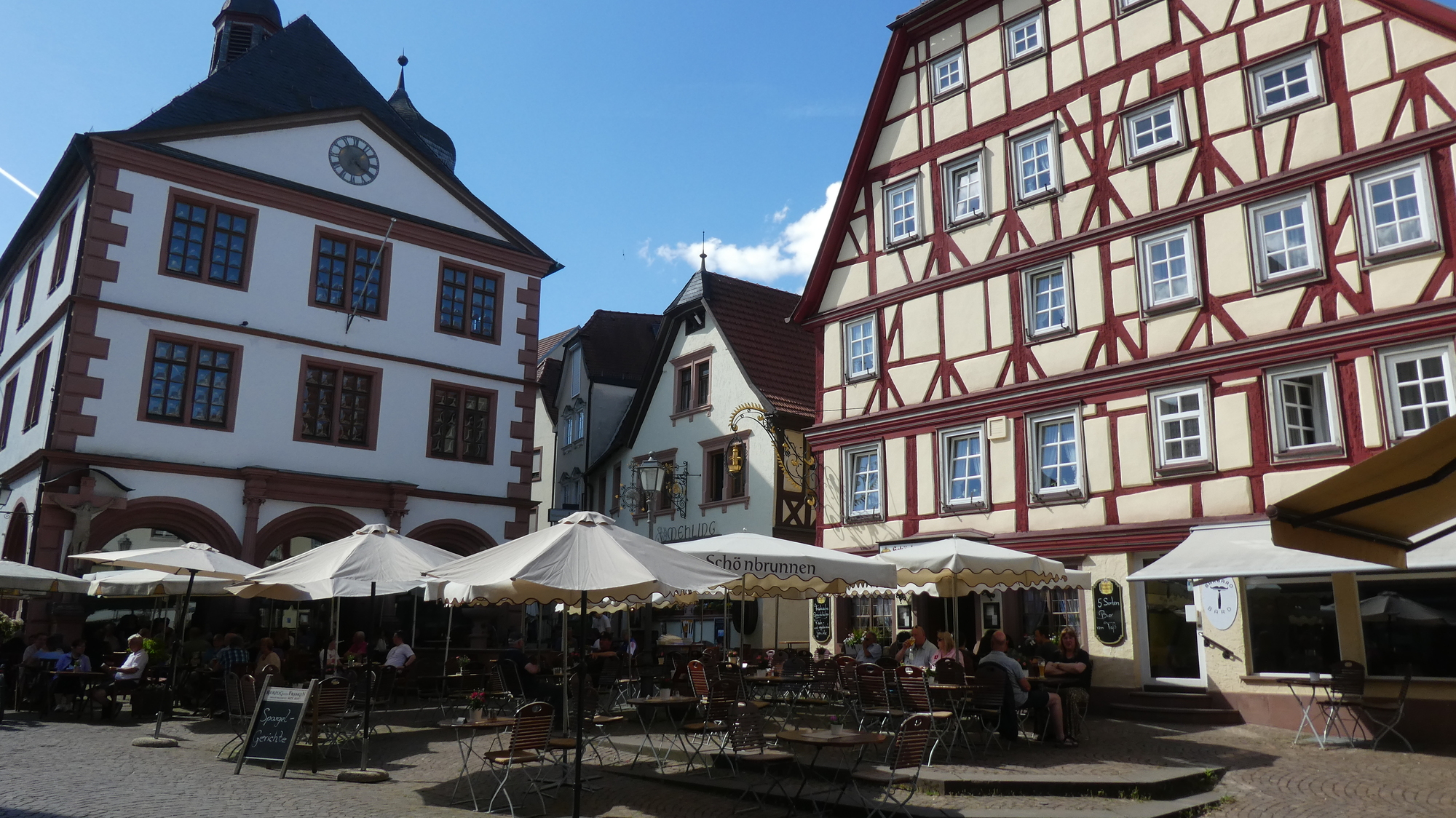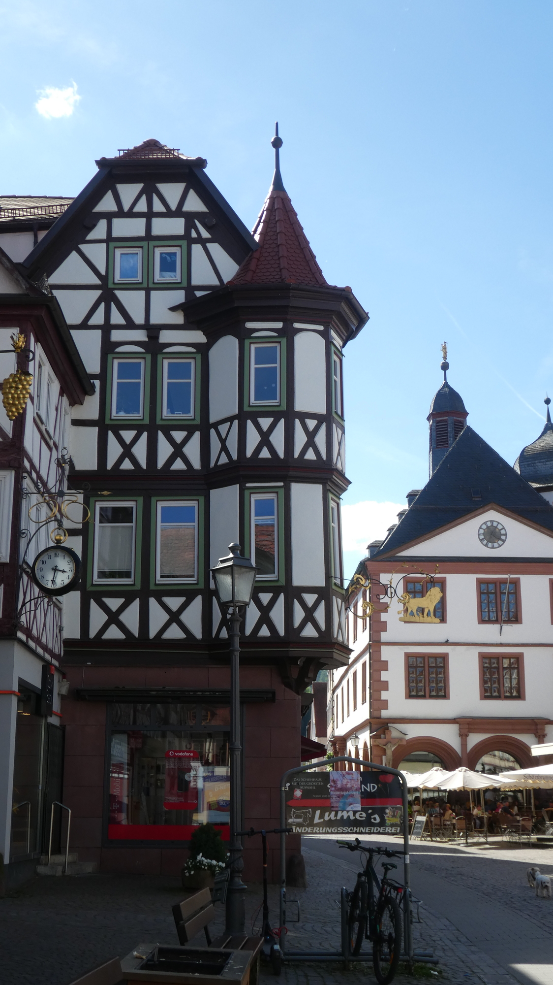 After a beautiful but quite long ride, we rolled into Lohr, and finally found the eis we had been looking for. We also noticed several references in the town to "Schneewittchen", Snow White. I found out that the reason is that though Snow White is one of the folk tales collected by the Grimm brothers, it has a basis in fact. On June 9, 1725 Snow White was born in Lohr Castle. She was baroness Maria von Erthal. Snow White's father was in charge of the mirror and glass works in the region, and probably gave the "talking mirror" to the evil step mother as a gift. Snow White ran away from the step mother, and could well have been taken in by the diminutive miners, mining being a major industry here at the time.
