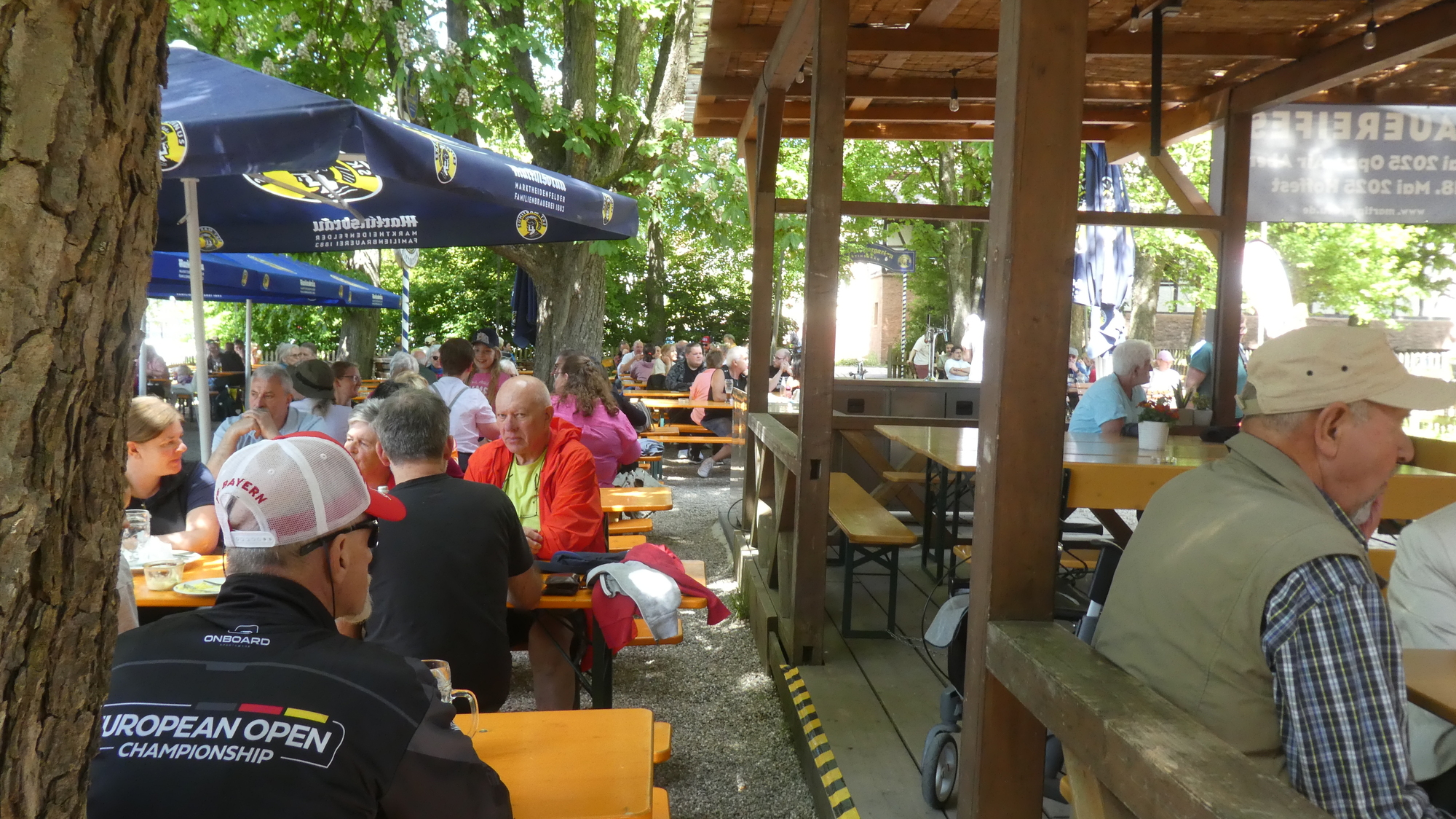 The ice cream (eis) hankering was enough to have us pull up to what turned out to be just a pure beer garden. You can see that lots of other cyclists have also stopped, so that we would could call this a "radler treff" or cyclists' meetup. We are surprised that none of the beer gardens we have visited have sausages, or much of any food other than pretzels. This has hampered me as well with an assignment given by my brother: He had picked up a salt and a pepper shaker at a beer garden in Germany one time. They were only worth a euro, but did say Germany on the bottom, and he liked the souvenir, until one day he broke one. My job is to find a replacement. But you don't need salt or pepper if all that is on offer is beer!