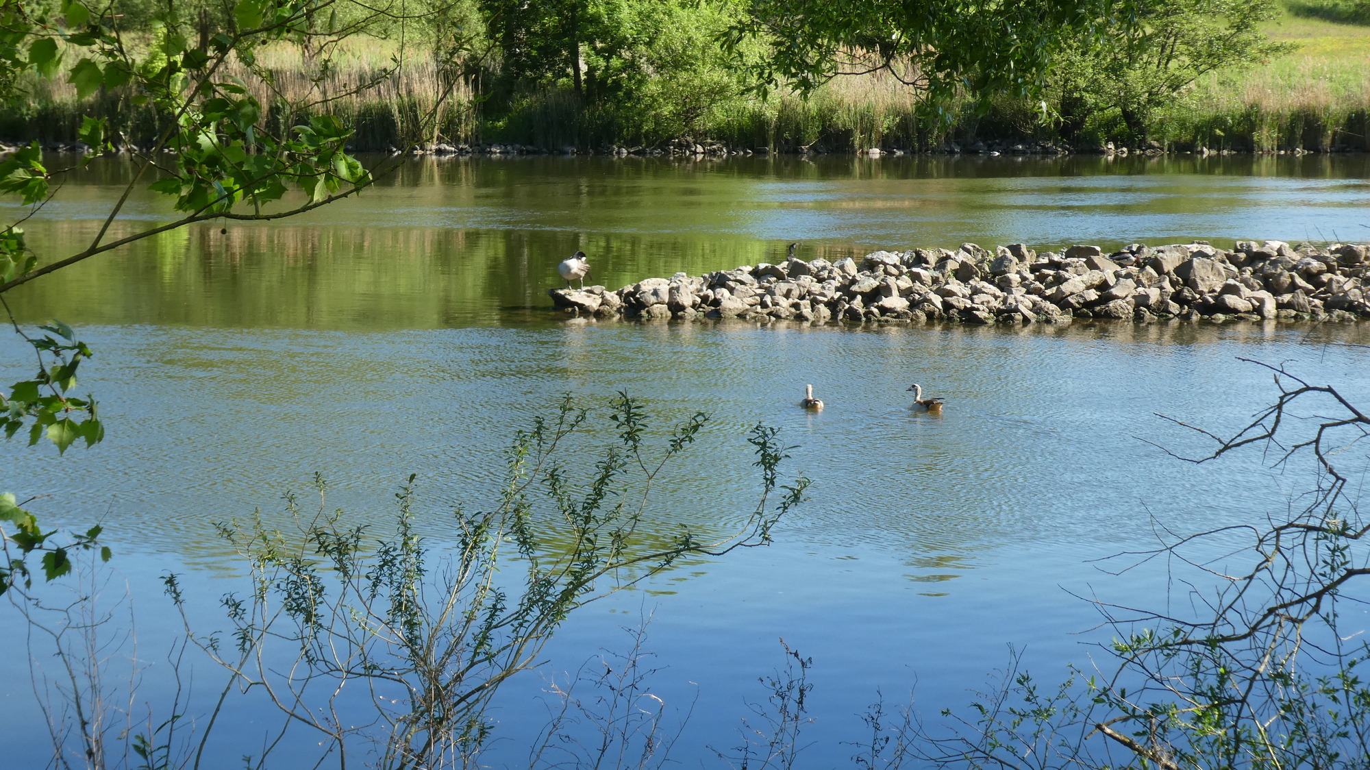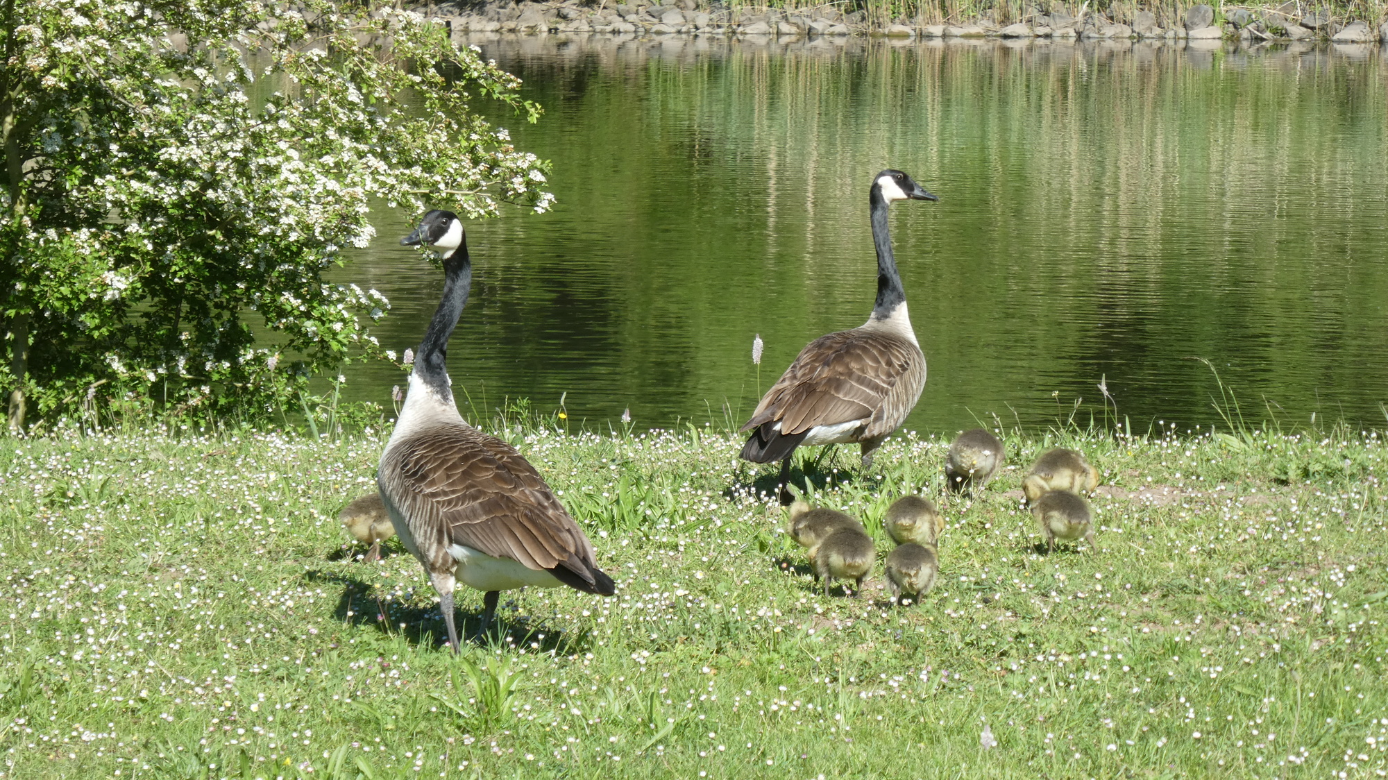 While the Main was not showing us any "new" birds, there were really a lot of geese, many with young, all along the way. There were even two Egyptians up on the roof of our hotel.