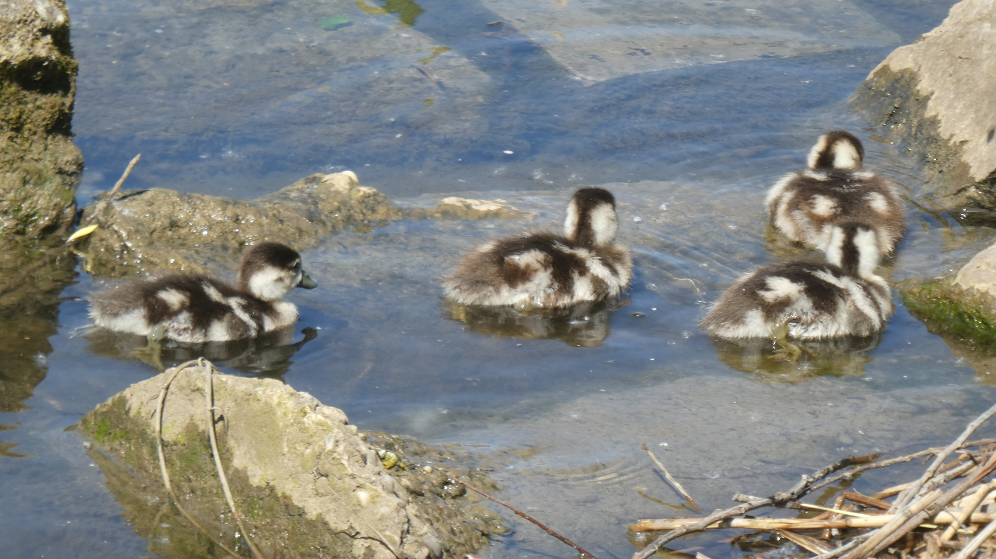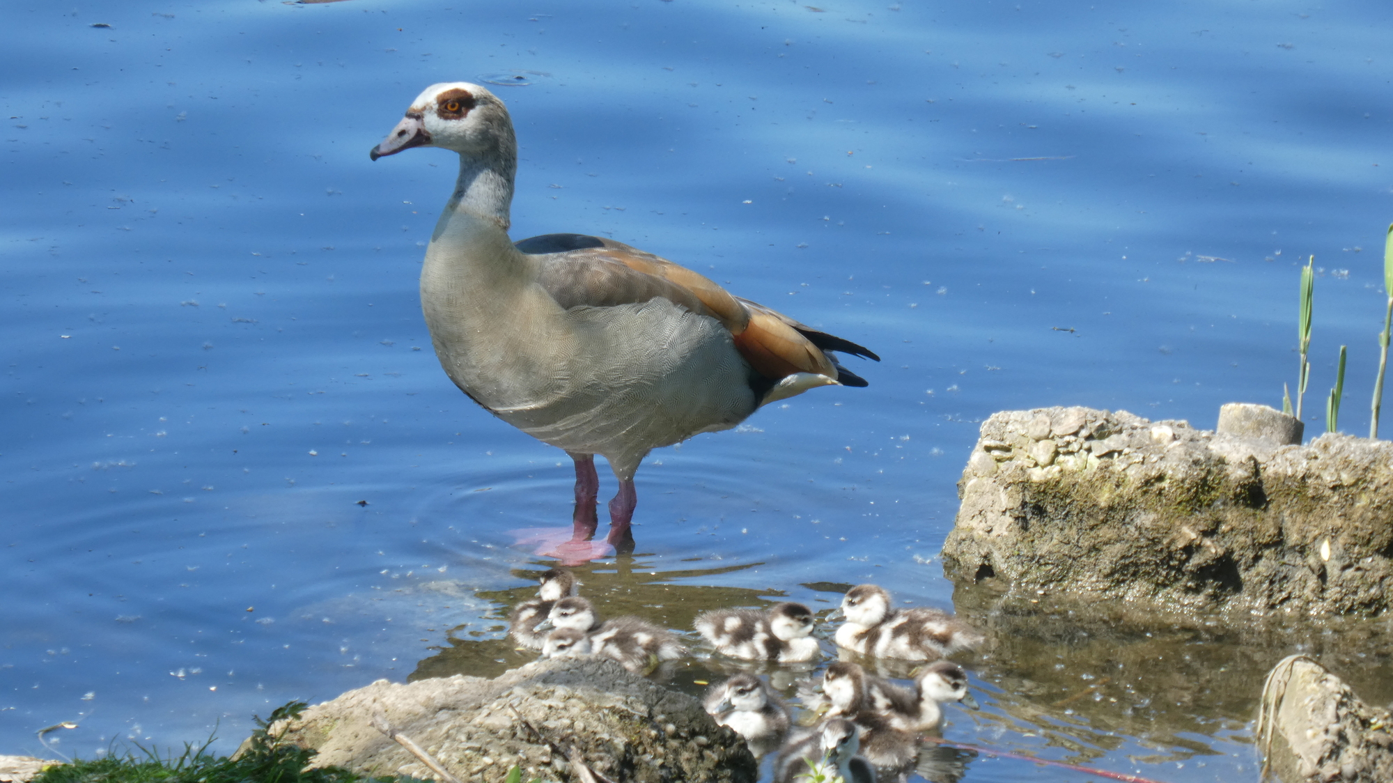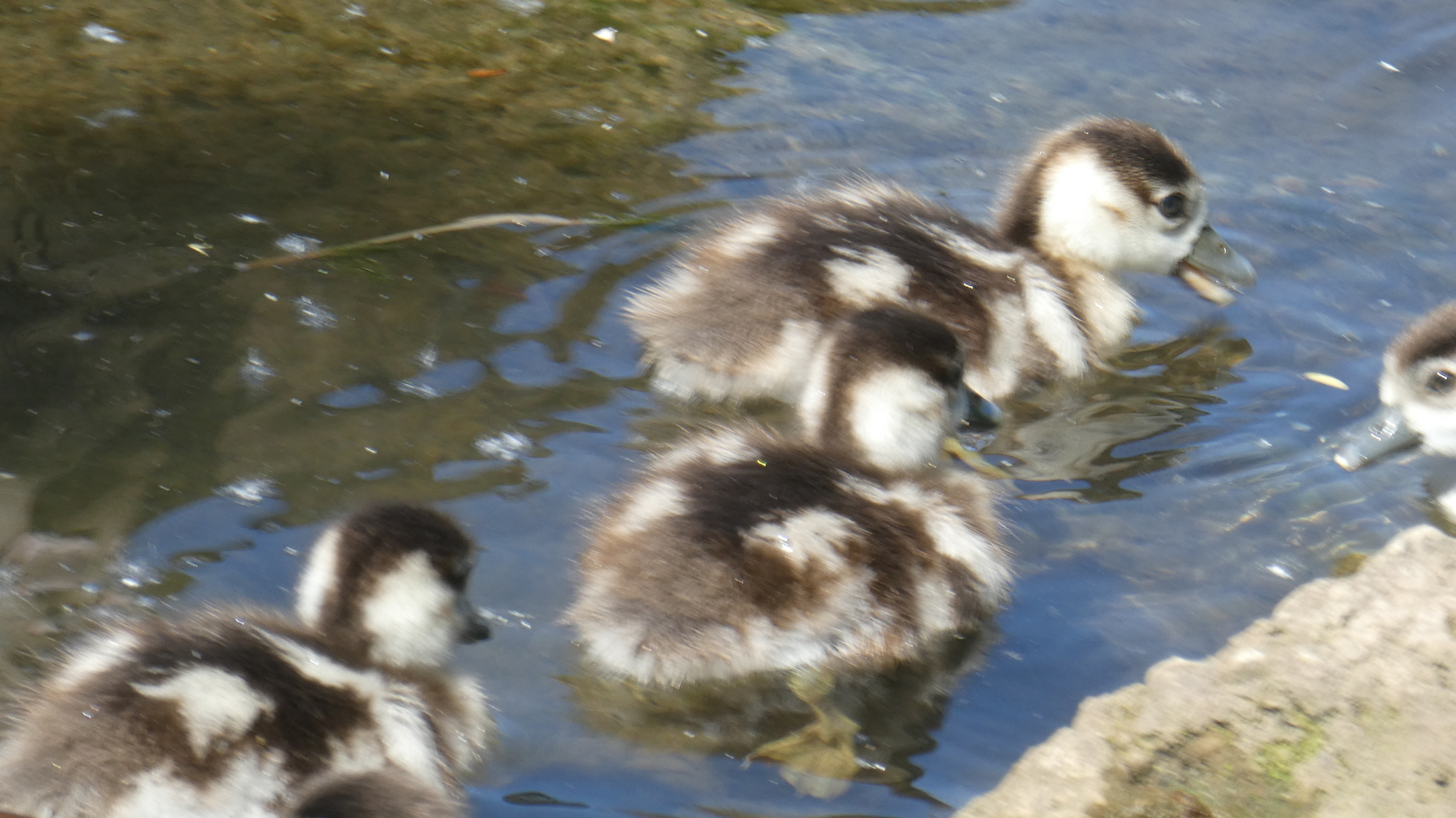 On the river side, we now observed an Egyptian Goose pair with super cute newly hatched young: