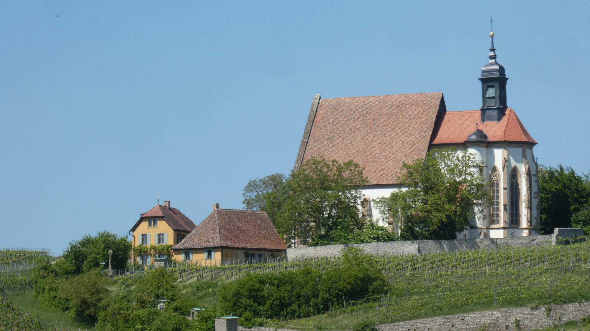 We carried on through orchards and grapes, and with the occasional lovely sight, like a Maria chapel among the vines.