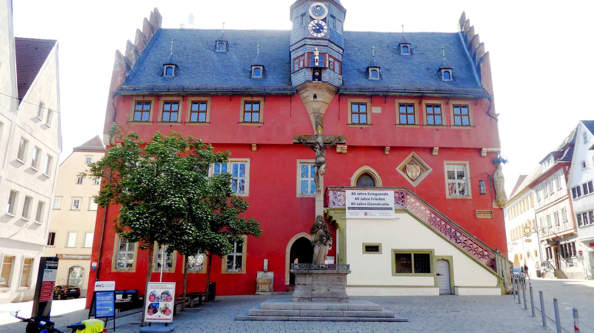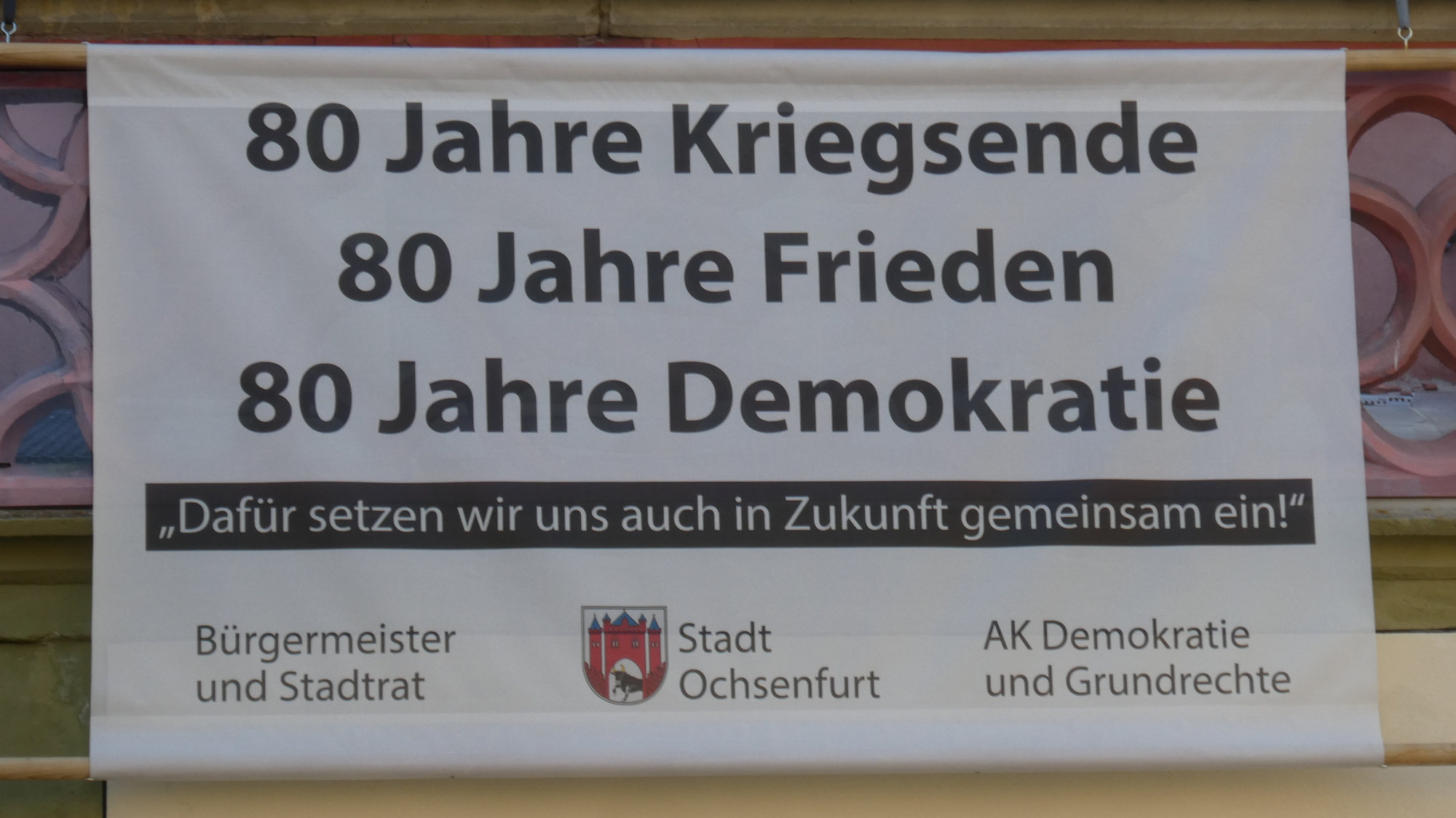 In front of the rathaus was also the sign show here below. It celebrates 80 years since the end of WWII, and 80 years of peace and democracy. The note on the bottom says we will continue to strive for this in the future as well.