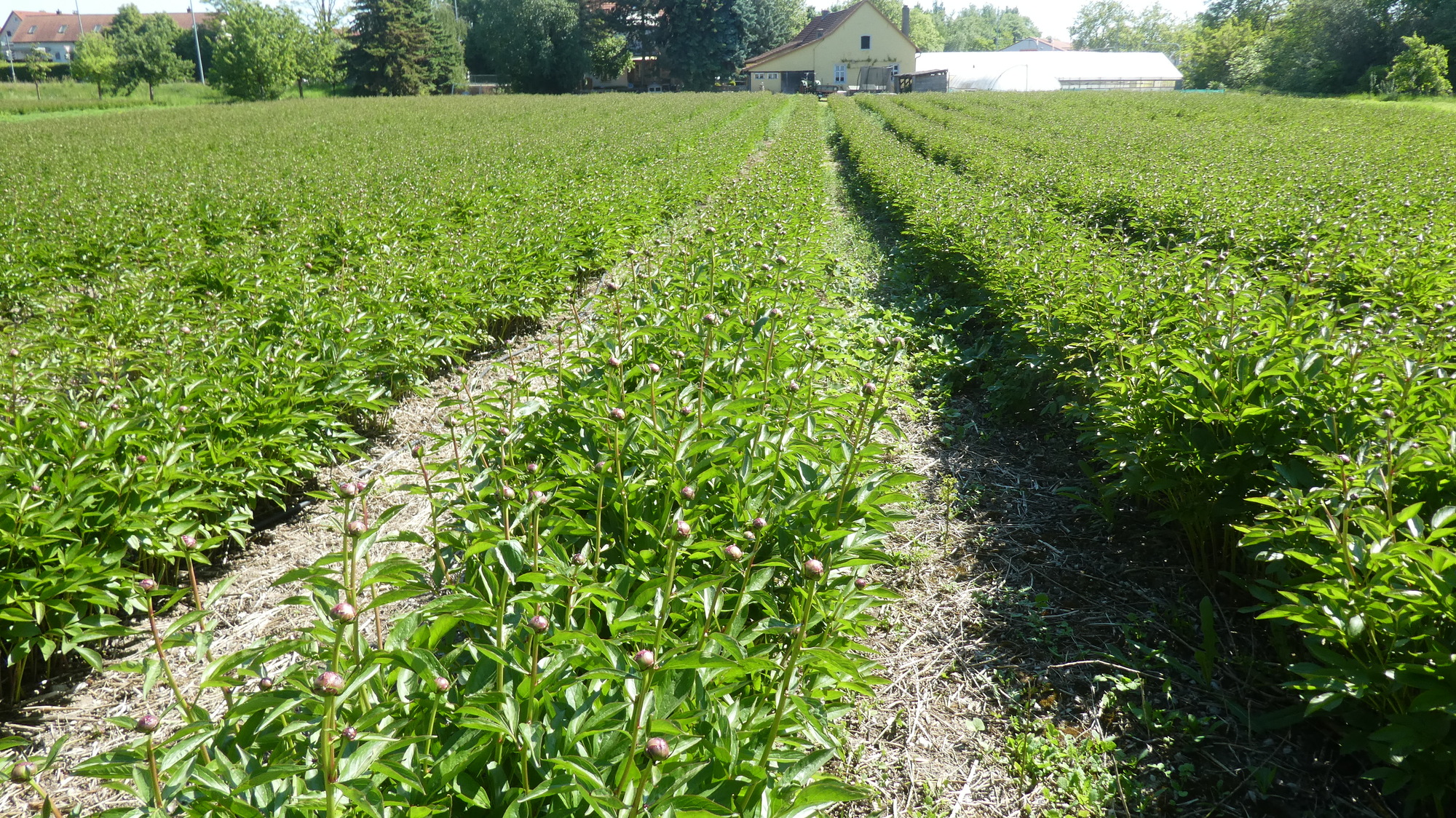 Back out along the trail, we ran into a large field of peonies. That's a crop we have not seen before. Are they for cut flowers? Or will they be dug up for sale as roots?