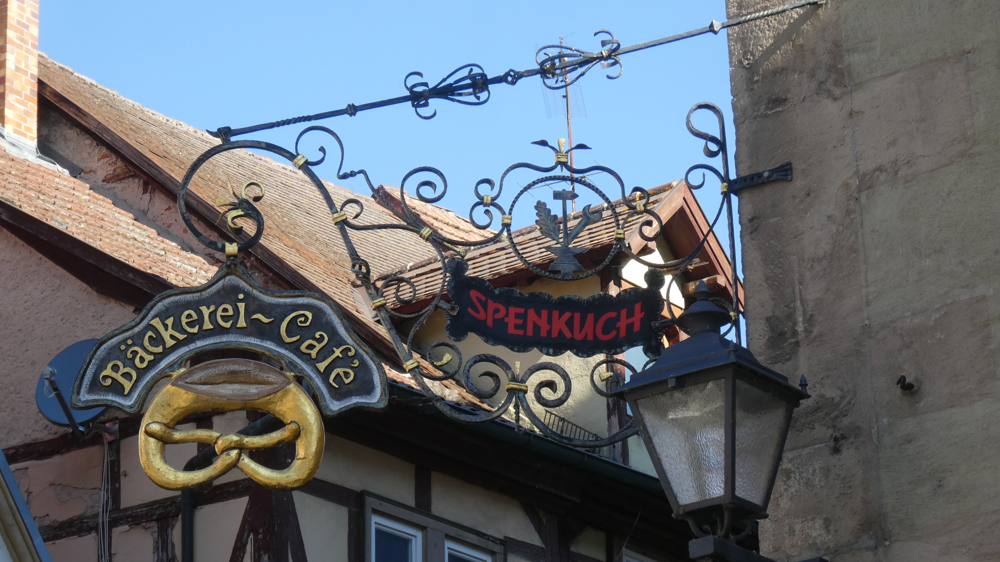 With the bakery research done, we could turn to the other things of note in the town. But wait, not so fast. Laura Seidita has written in the Comments that she misses real German pretzels. We callously reacted by buying some more today. This bakery had a choice of styles: