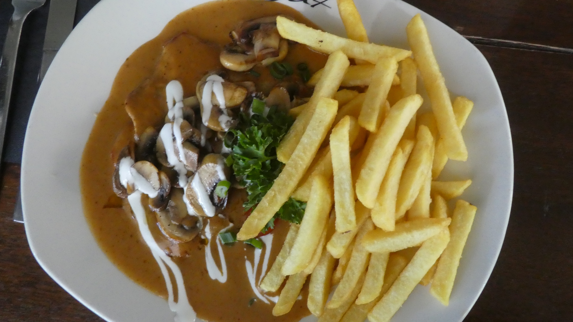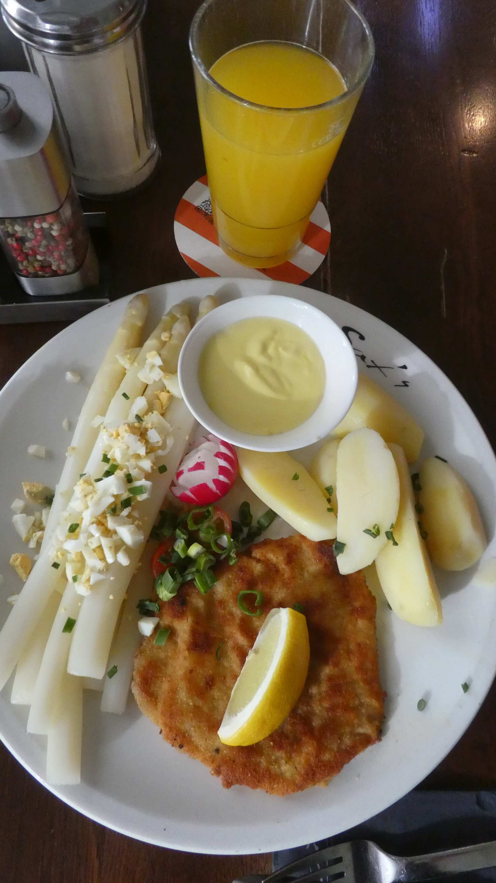 We had lots of sandwiches and other food, but got attracted by the Germn restaurant next door. They had Spargel, one of our target delicacies.