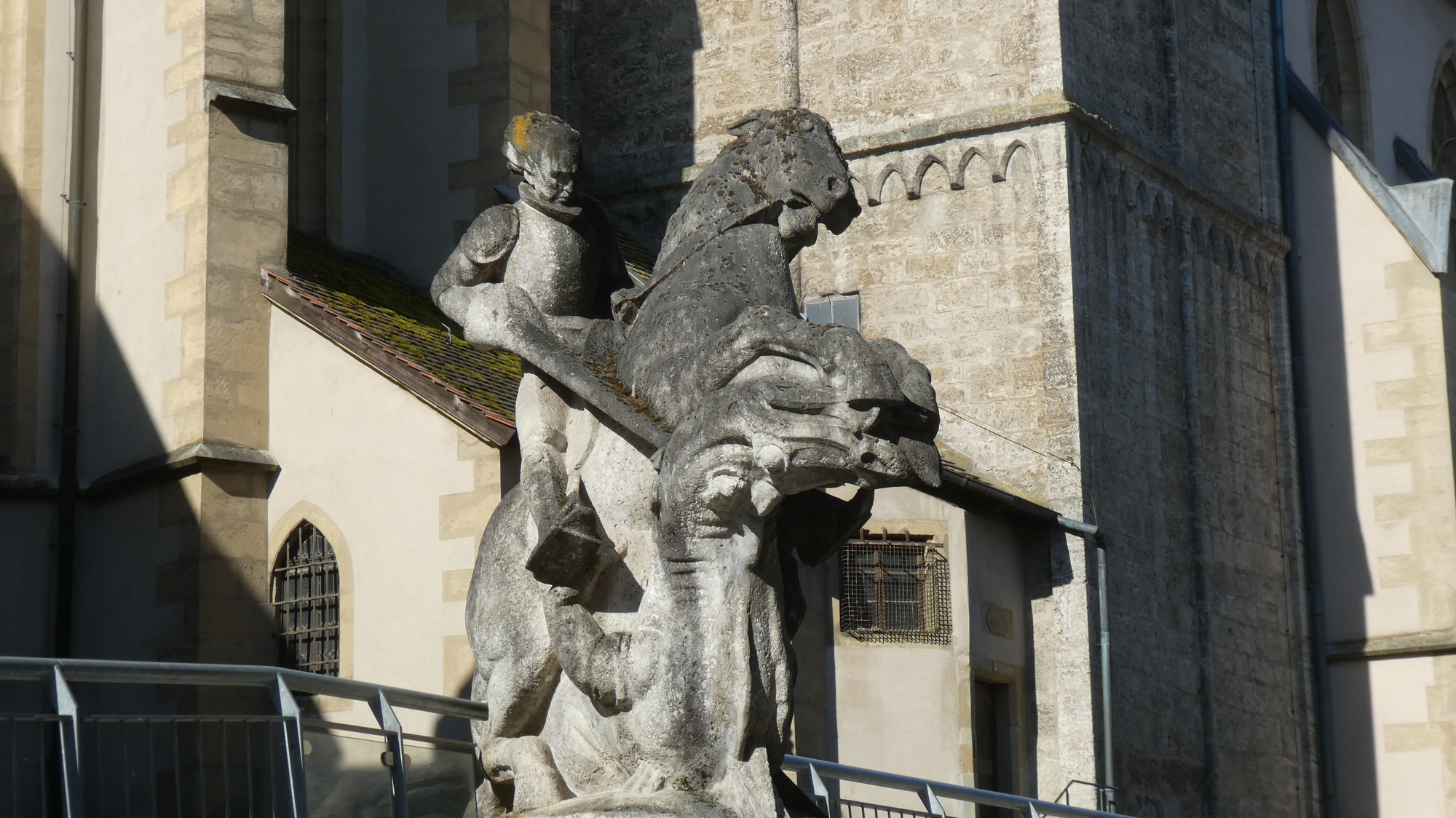 In front of a church, we also had a dragon being (rather unfairly) slain: