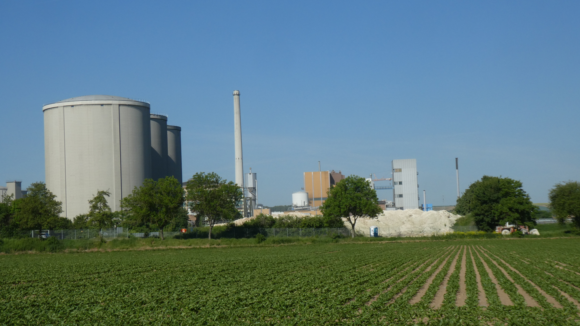 What we had seen of the town so far was housing and retail. But up the river a bit there was one plant, which we think is refining sugar. It makes some sense, then, that sugar beets are in the field in front of it. The company is Südzucker AG, the largest sugar producer in the world, with an annual production of around 4.8 million tonnes, presumably not all at this location!