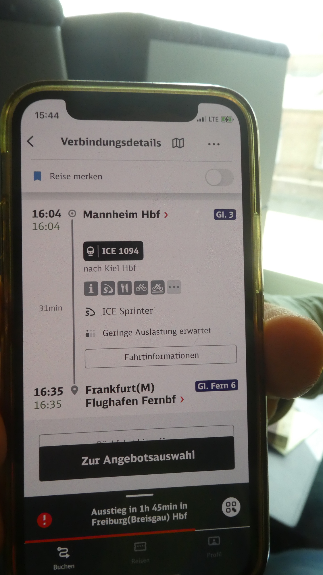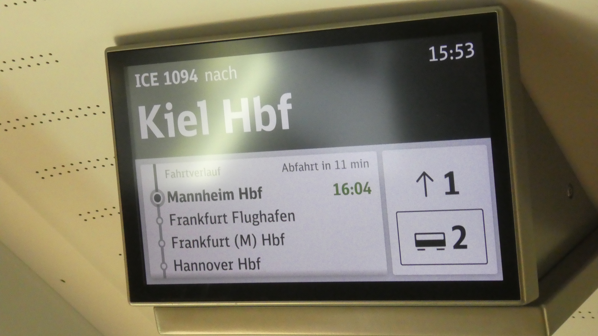 ICE 1094 is the train for us! And this time after we jumped on the train standing at the correct track at the correct time, we were darn sure to verify inside that it was going to the correct place!
