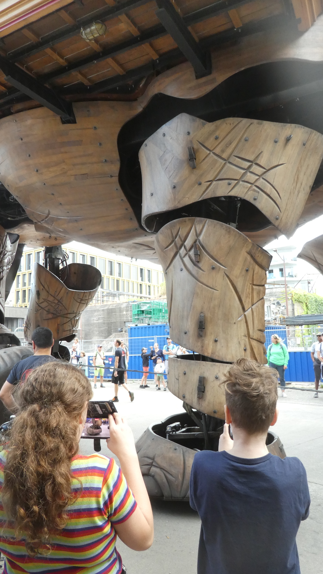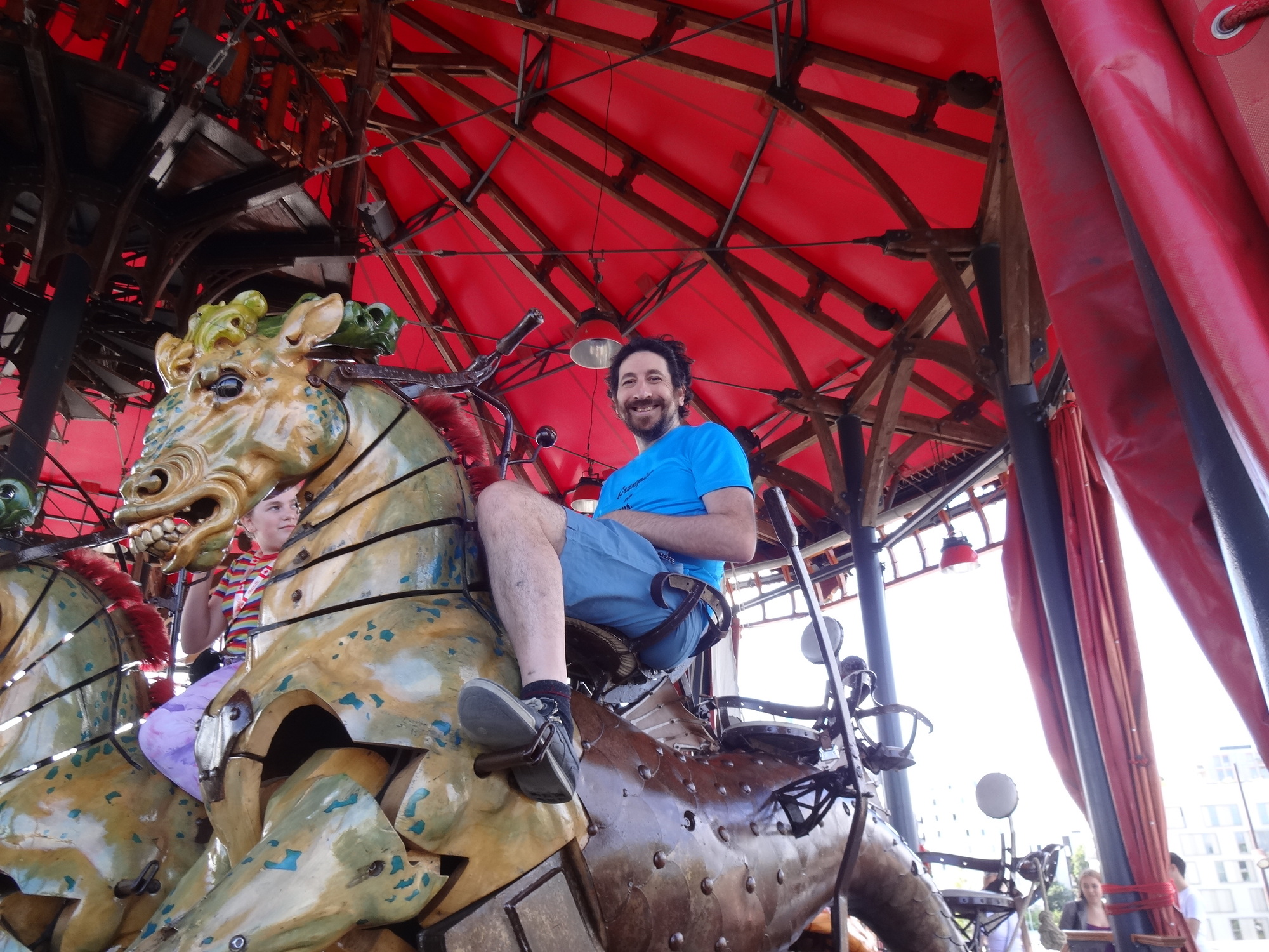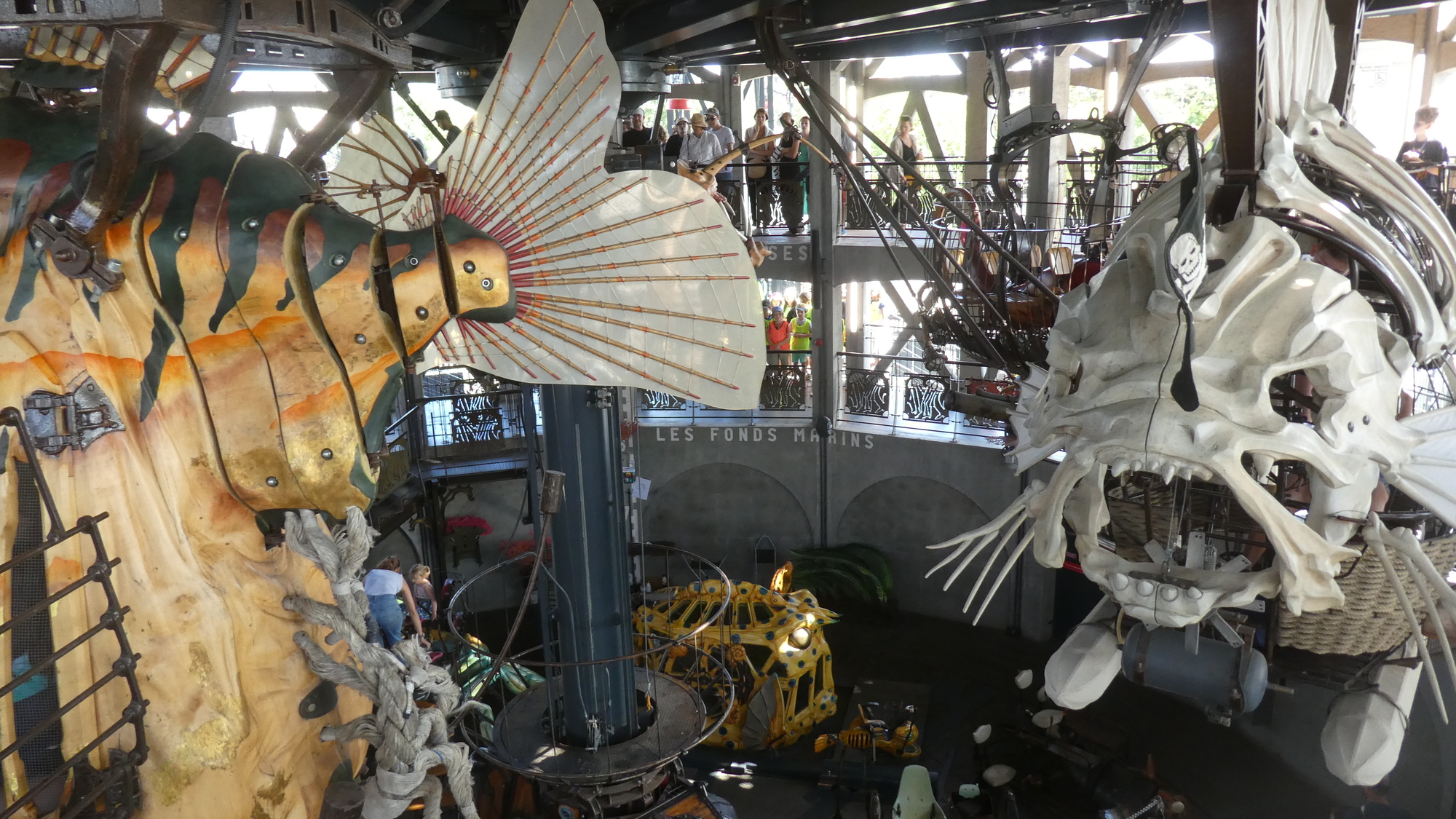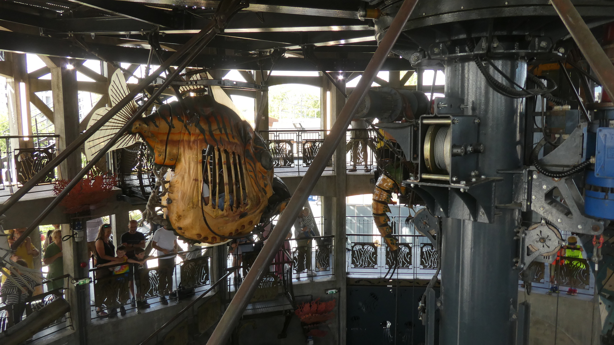 The most flamboyant of these is a huge motorized elephant, that cruises about a section of the island, scattering tourists and spraying water. You can also ride atop it, in a fantastical saddle area. So as the public used to come to watch ship launchings right here, they now watch the elephant.