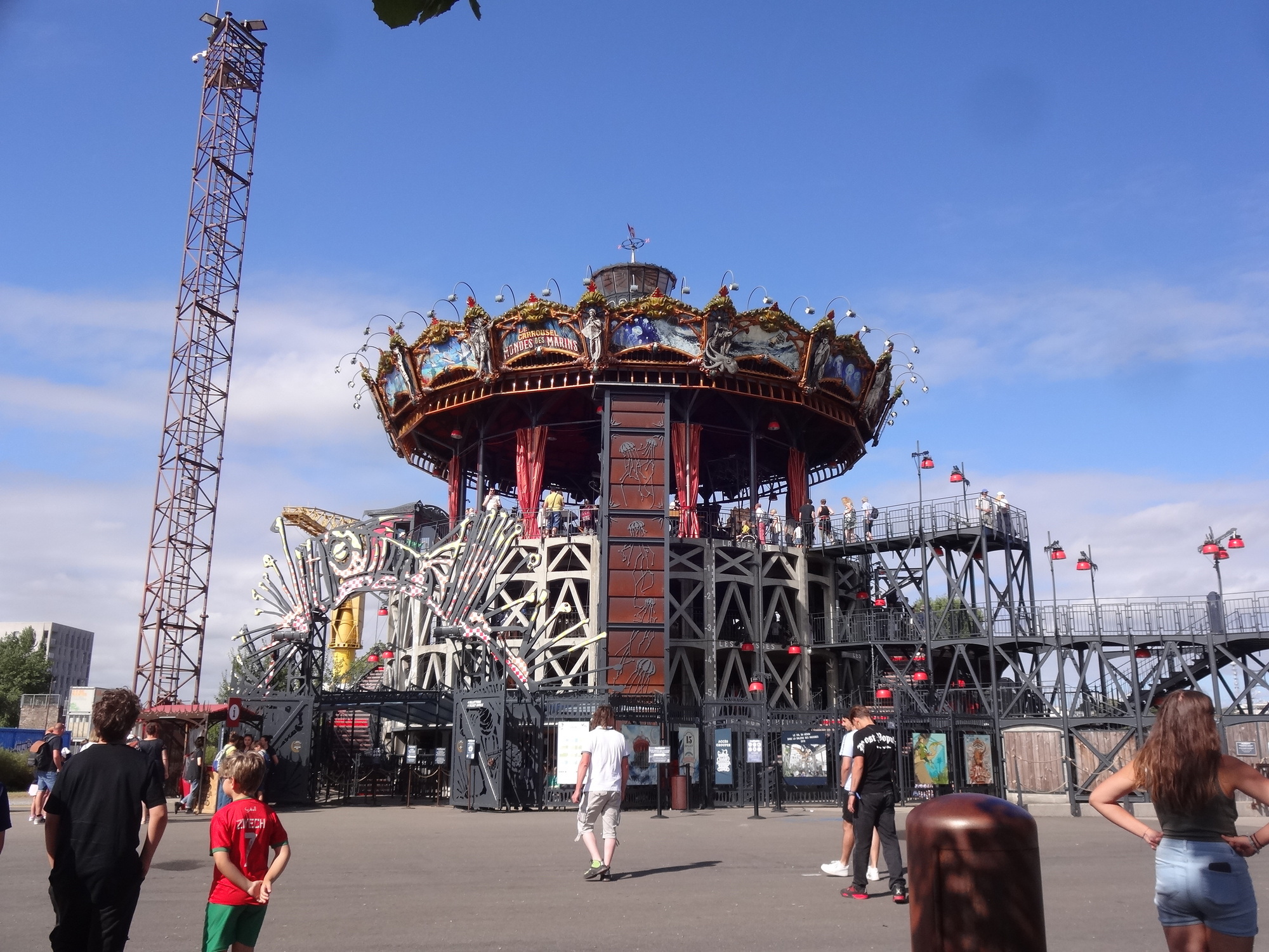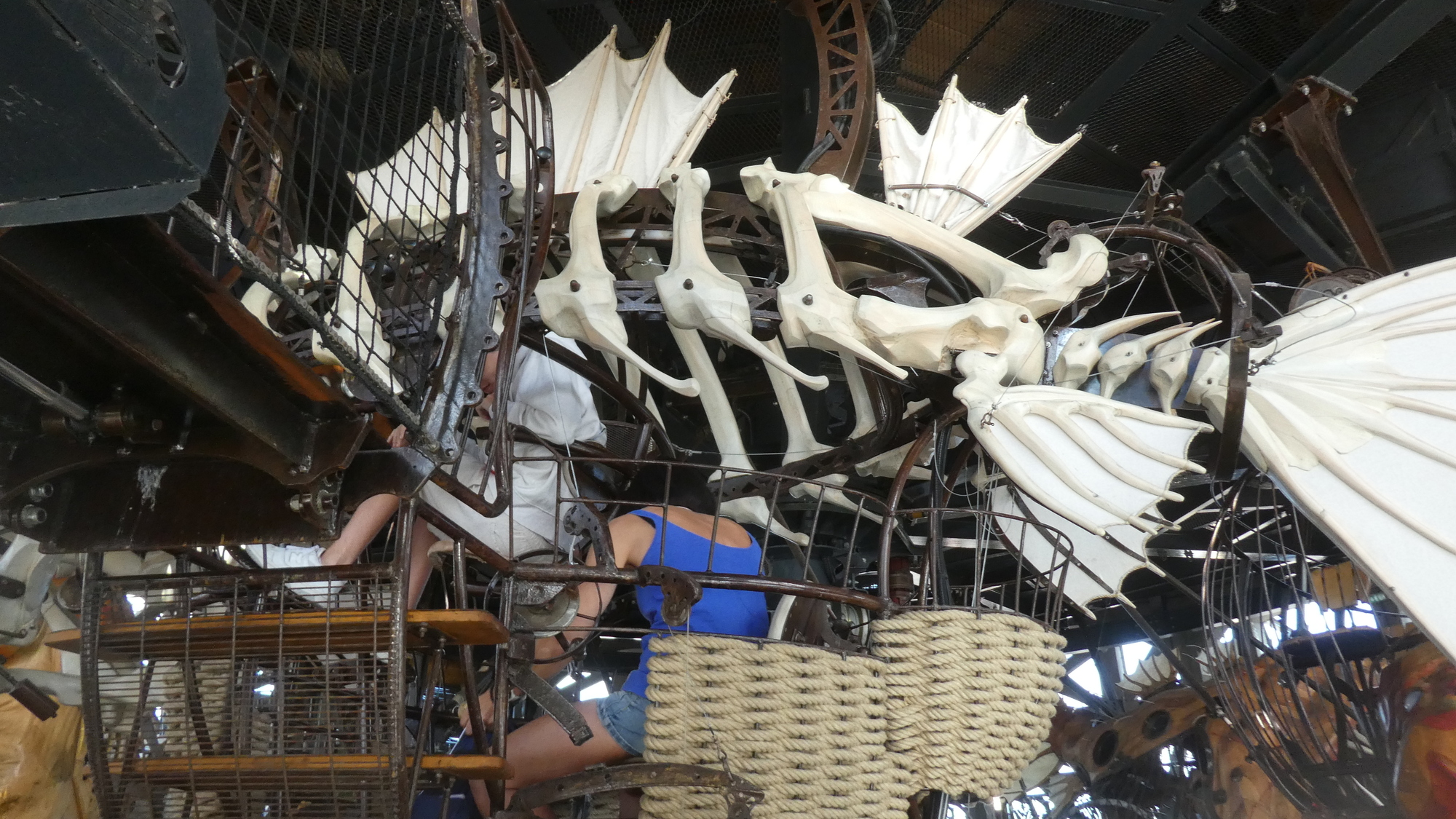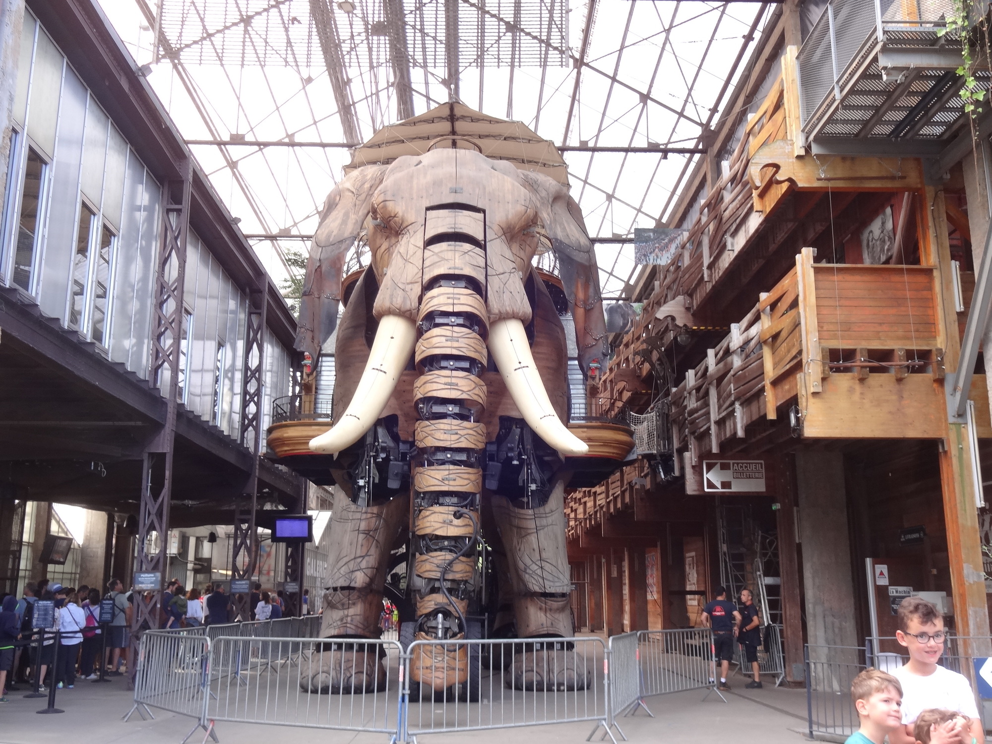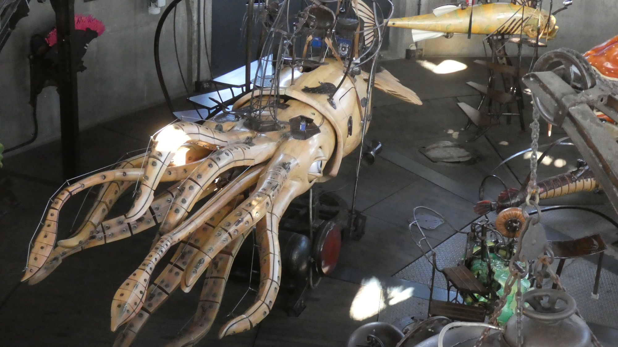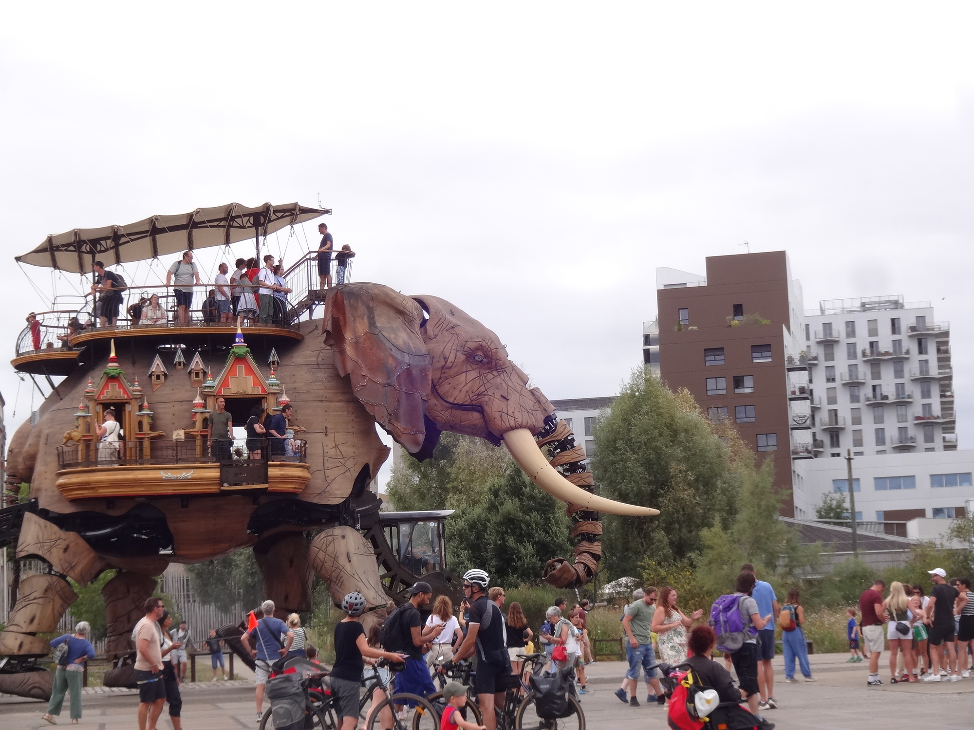 The most flamboyant of these is a huge motorized elephant, that cruises about a section of the island, scattering tourists and spraying water. You can also ride atop it, in a fantastical saddle area. So as the public used to come to watch ship launchings right here, they now watch the elephant.
