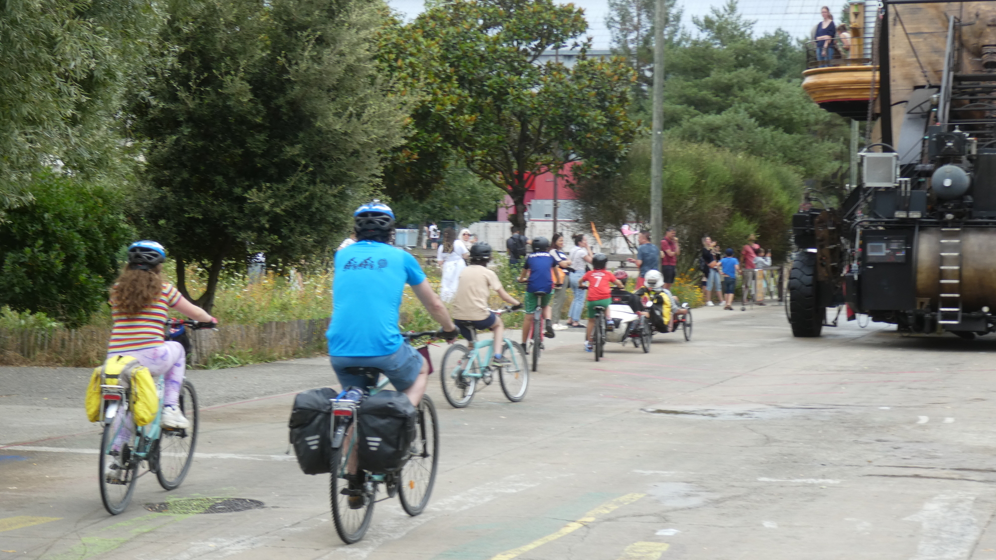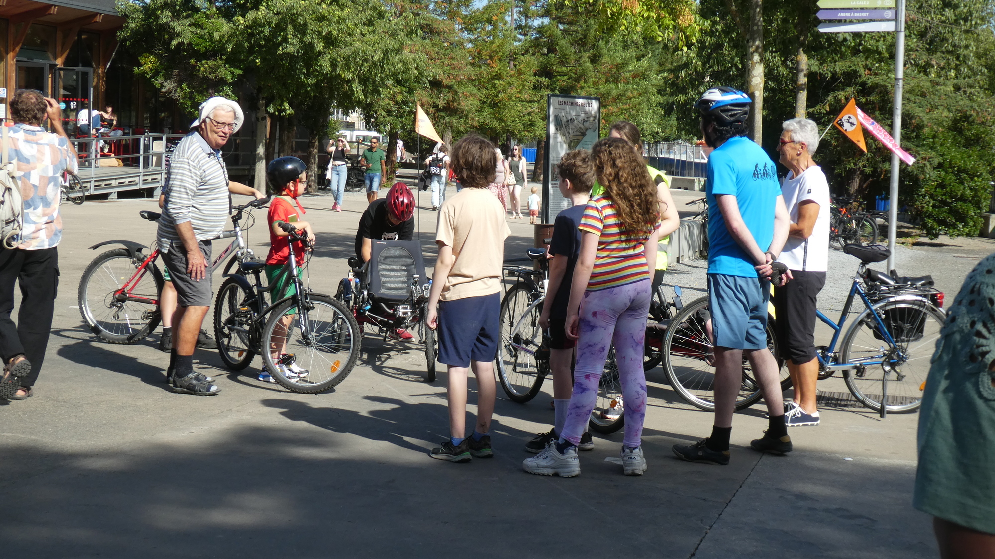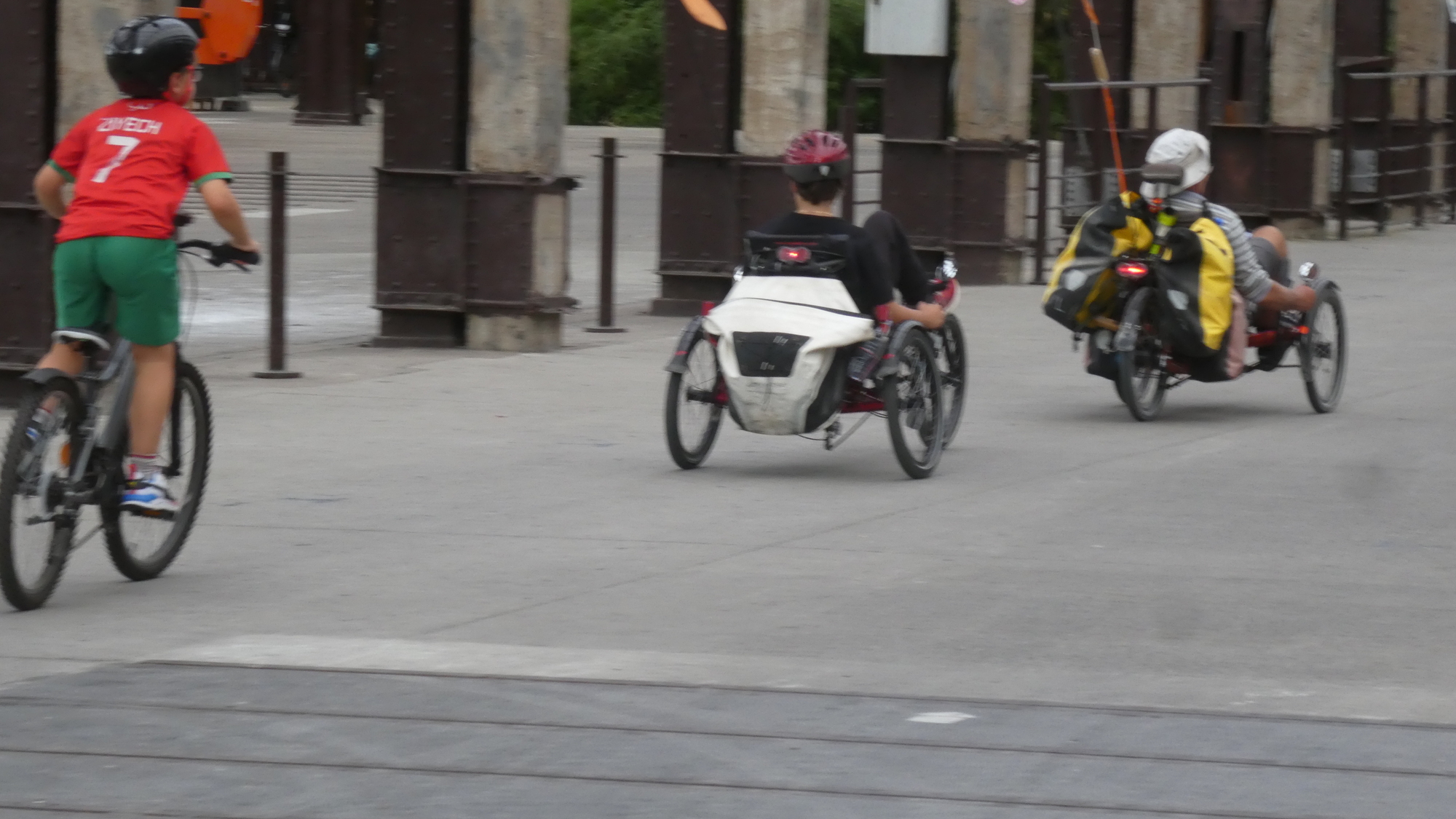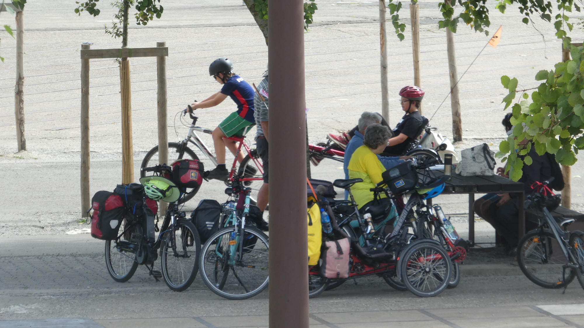 After some fun with the machines, we all looked for a bit of a ride. Michel proposed guiding us to a beer garden. Sure, ok.