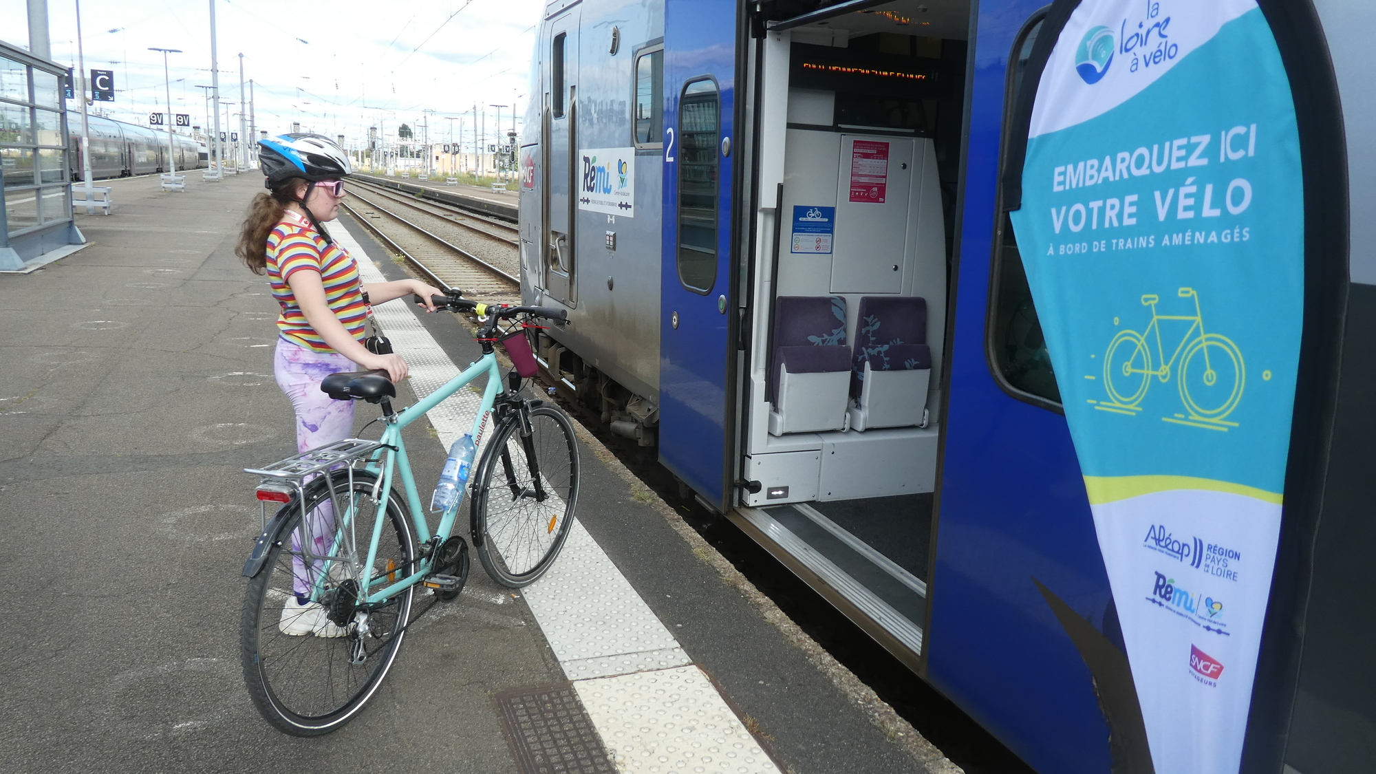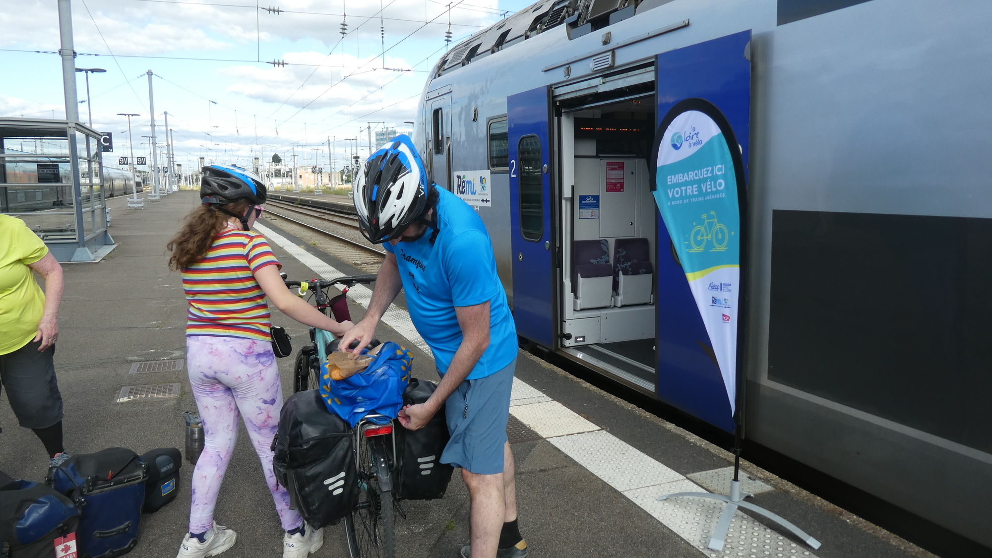 After several beers, or more like ice creams, we said a fond farewell to all our Nantes friends, and made our way to the train station. We had tickets on the Loire a Velo train for our next destination, Blois. We took a break in front of the station, until time to find our track, which of course is not announced until it is almost too late to reach it!