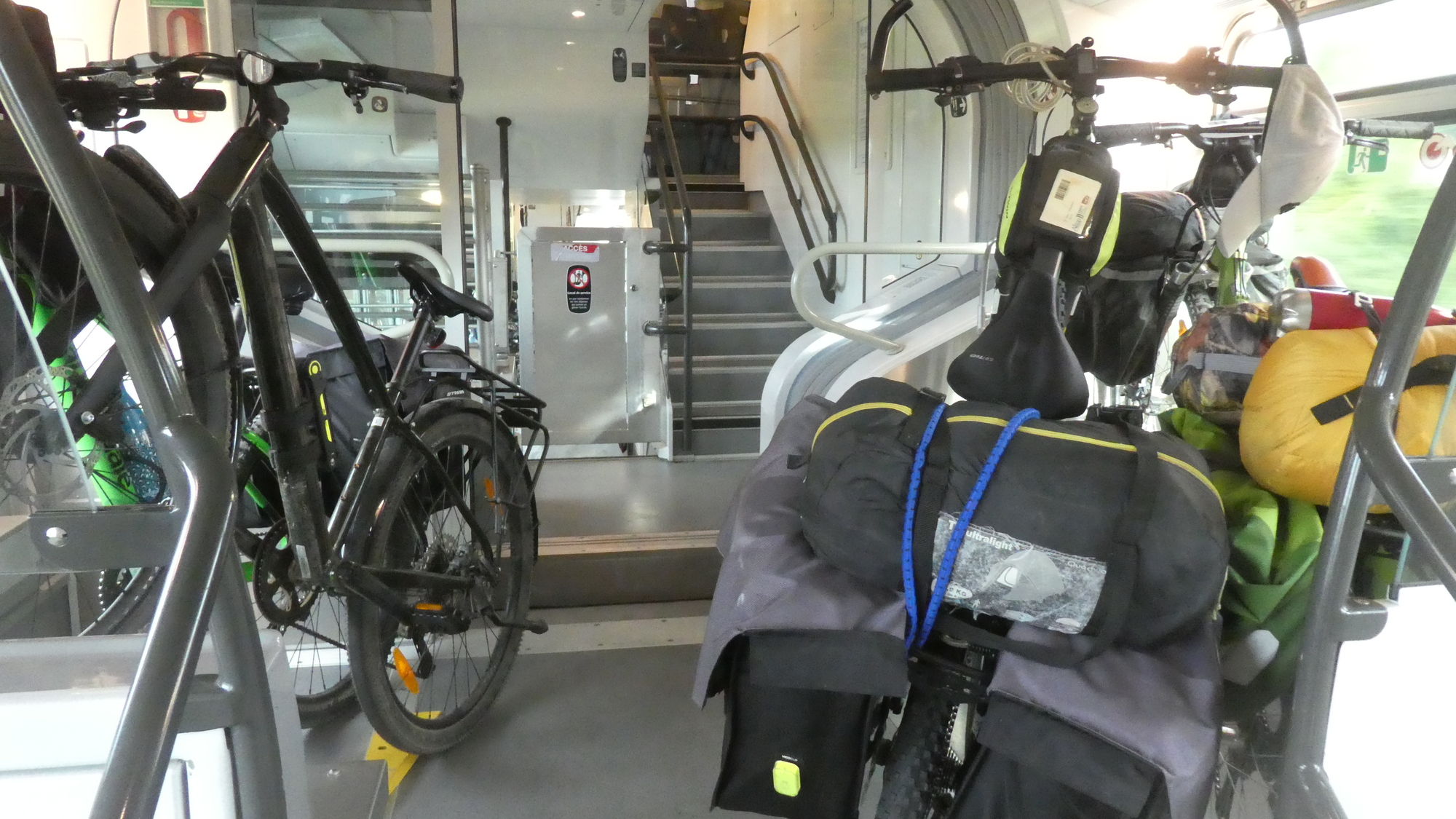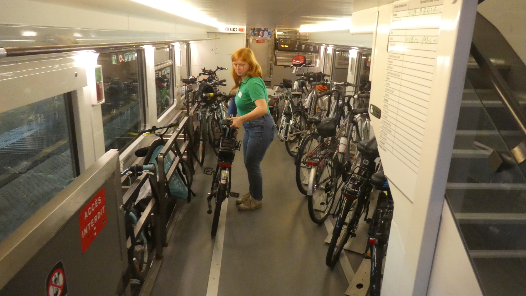 The route and the train idea is so popular, that the much vaunted bike car was filled up immediately. So things reverted to the good old jamming bikes on hooks, in corridors, and wherever.