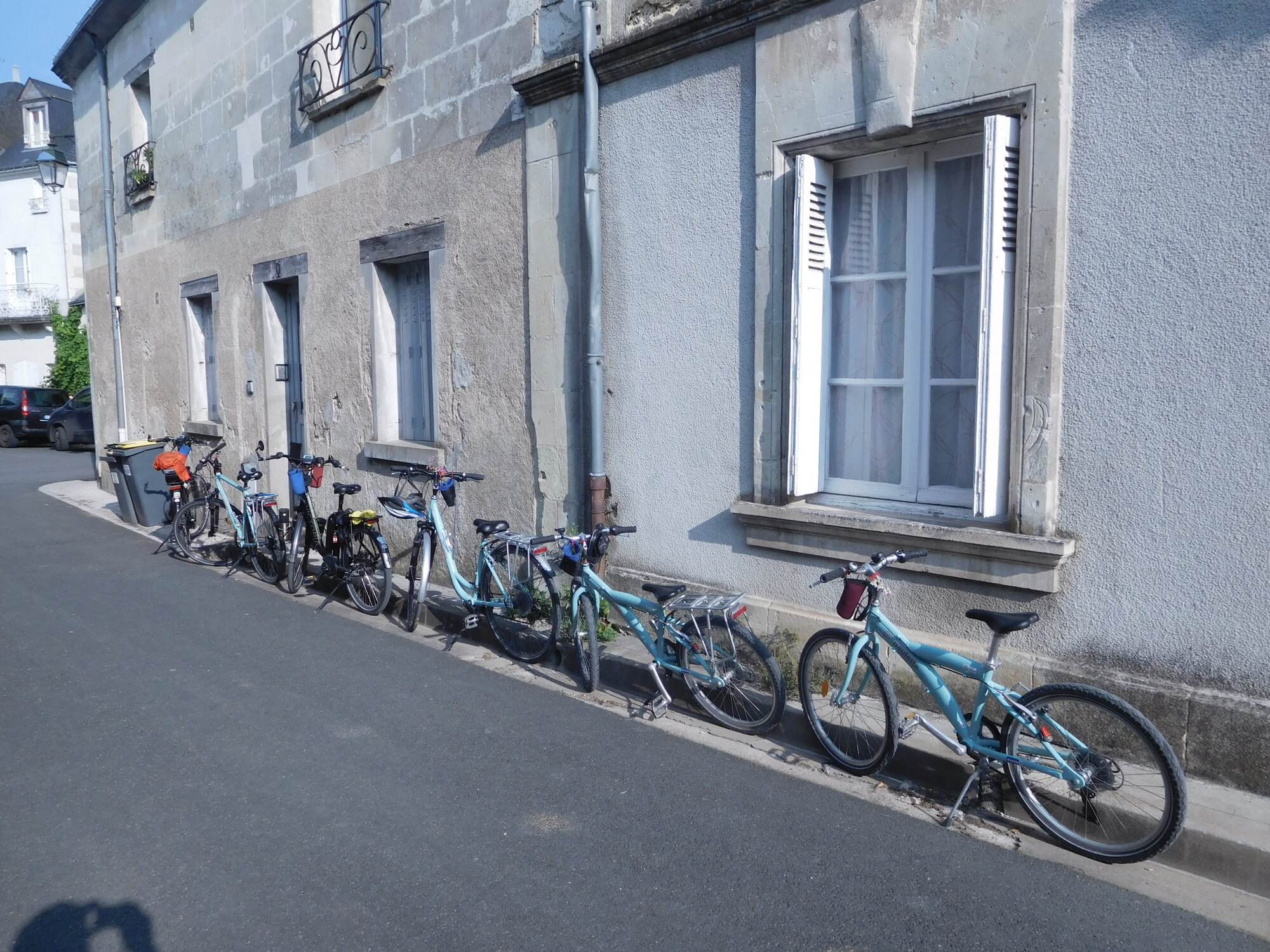 The streets of Villandry are very quiet, allowing us to line up our bikes and getthem ready to go. I think our expedition is quite impressive when set out like this.