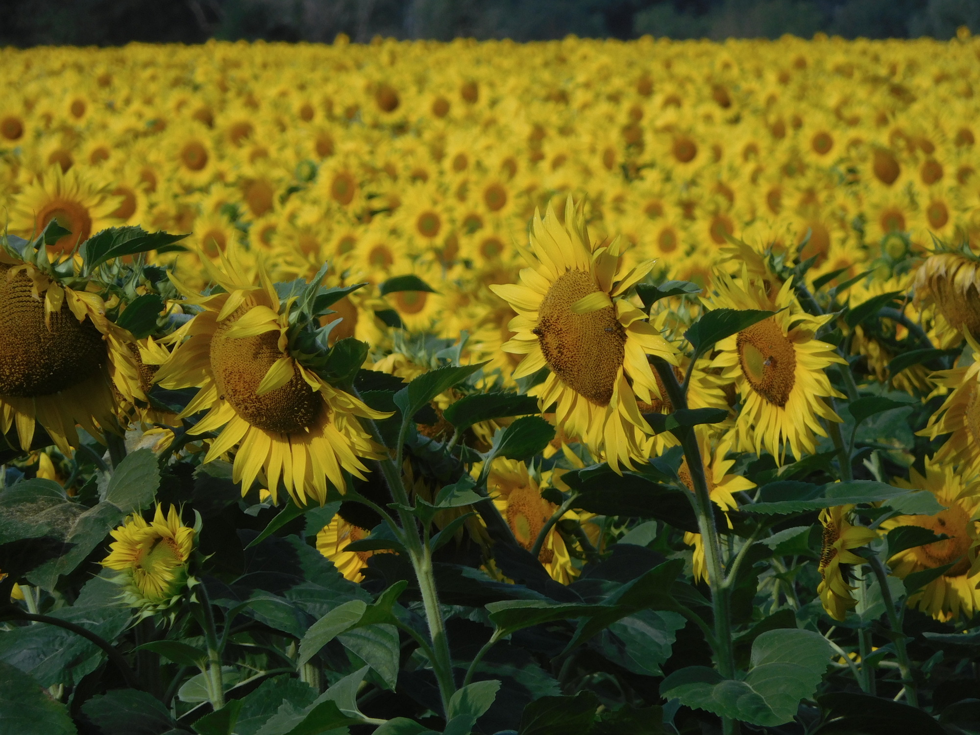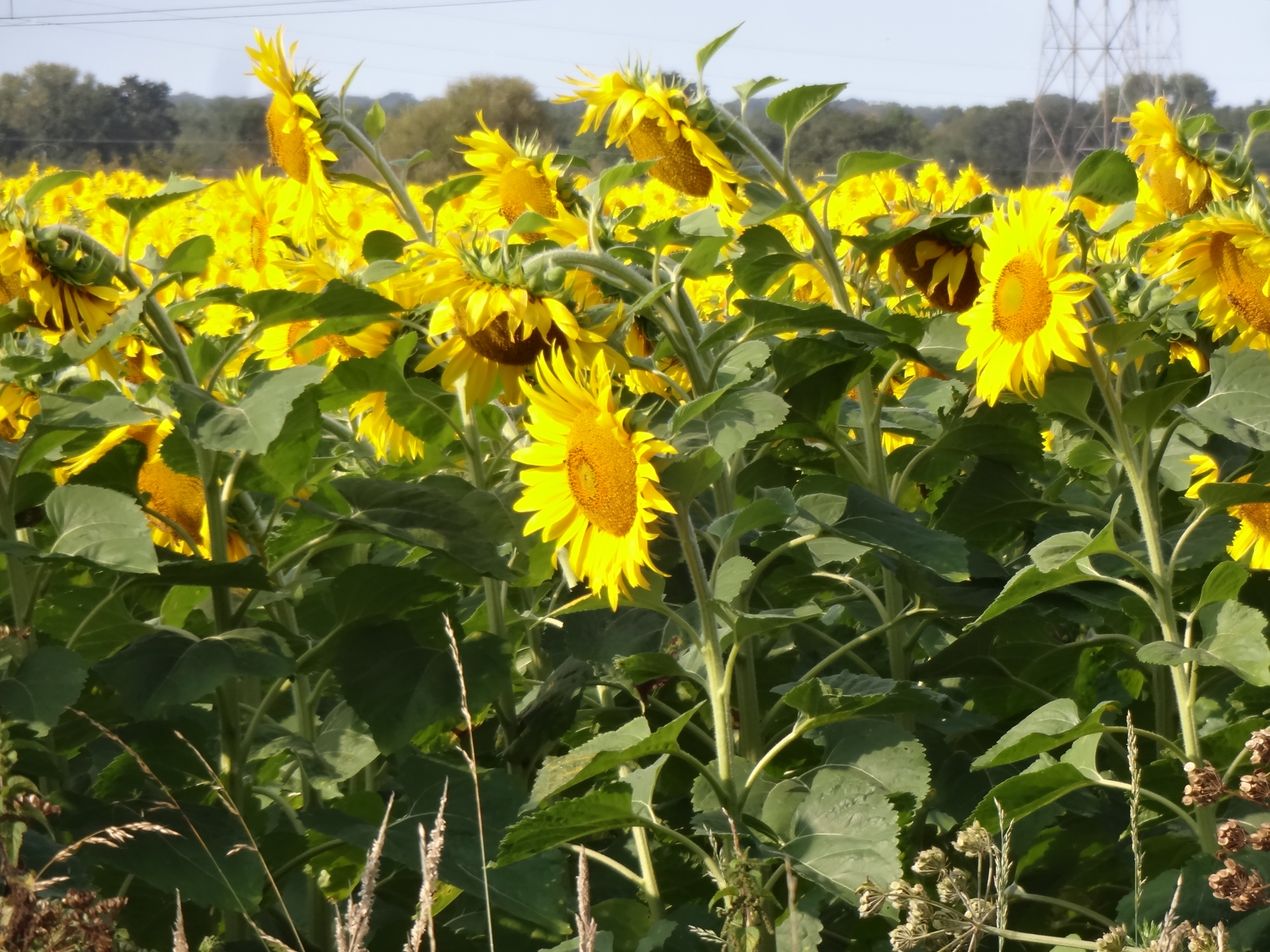 The sunflowers are an exciting part of the route, especially when they are being "polite" and looking our way.