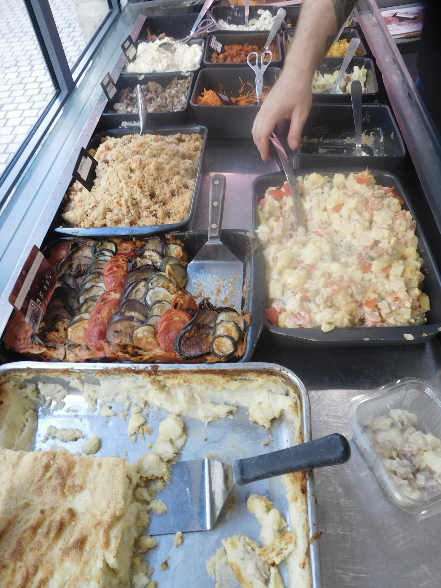 After a bit more walking, Dodie declared a bonk, and demanded food NOW! We found a butcher with some really nice cold dishes. This solved the problem for us and for Amelia too.