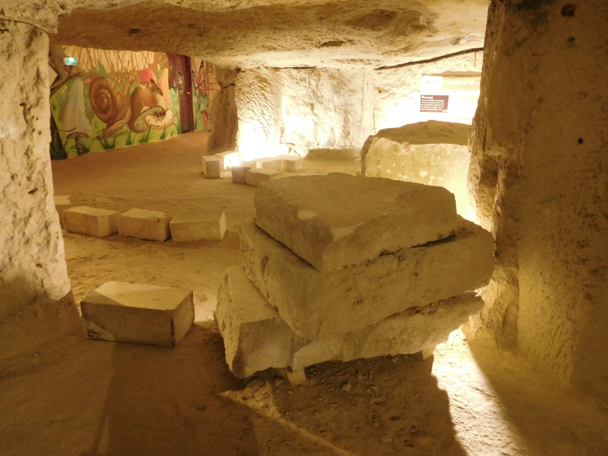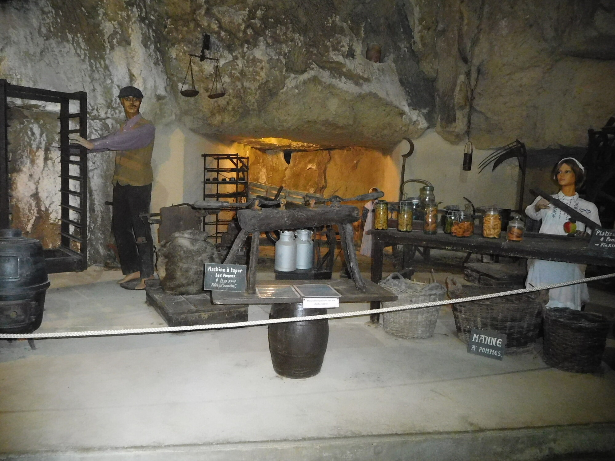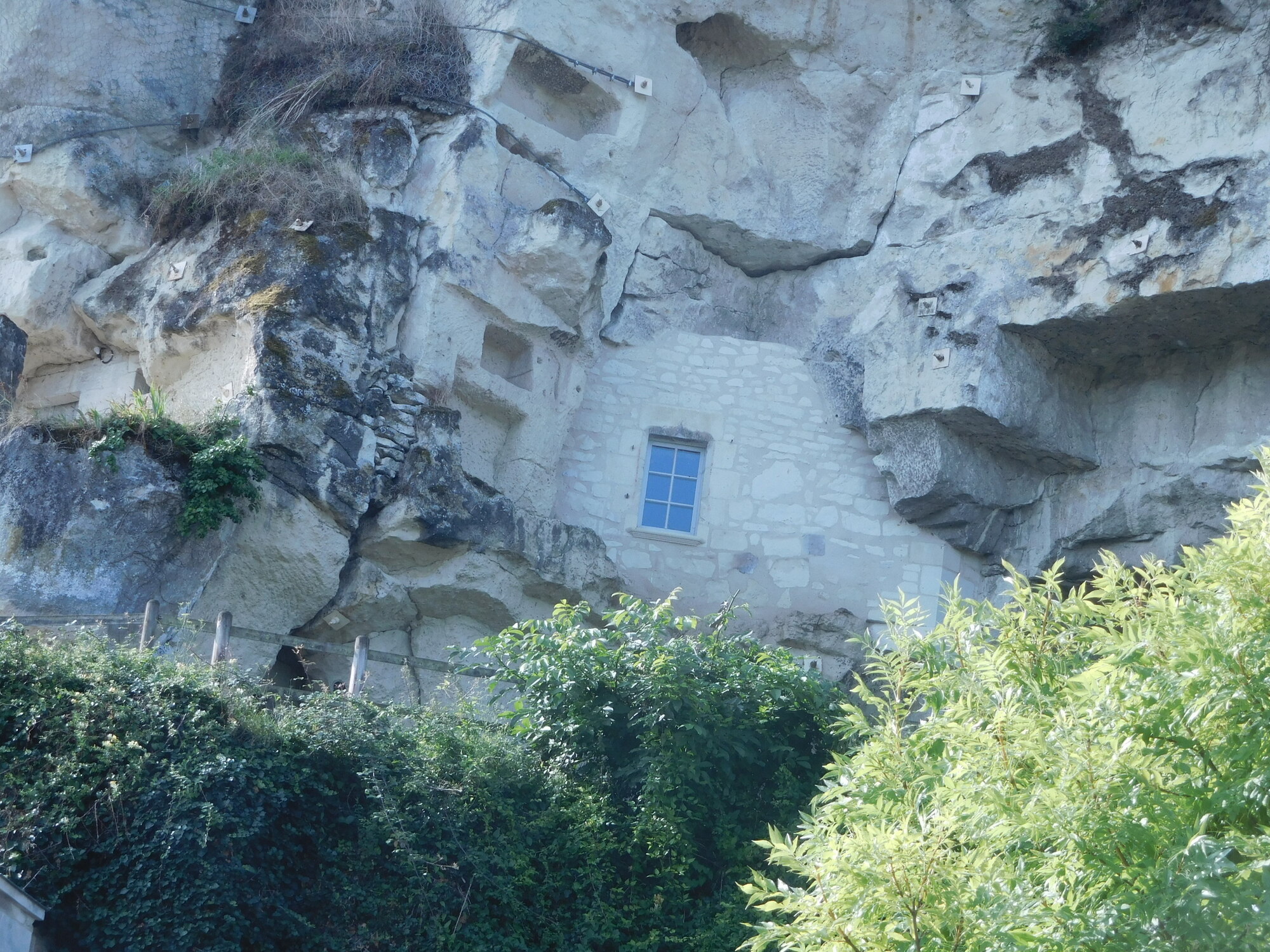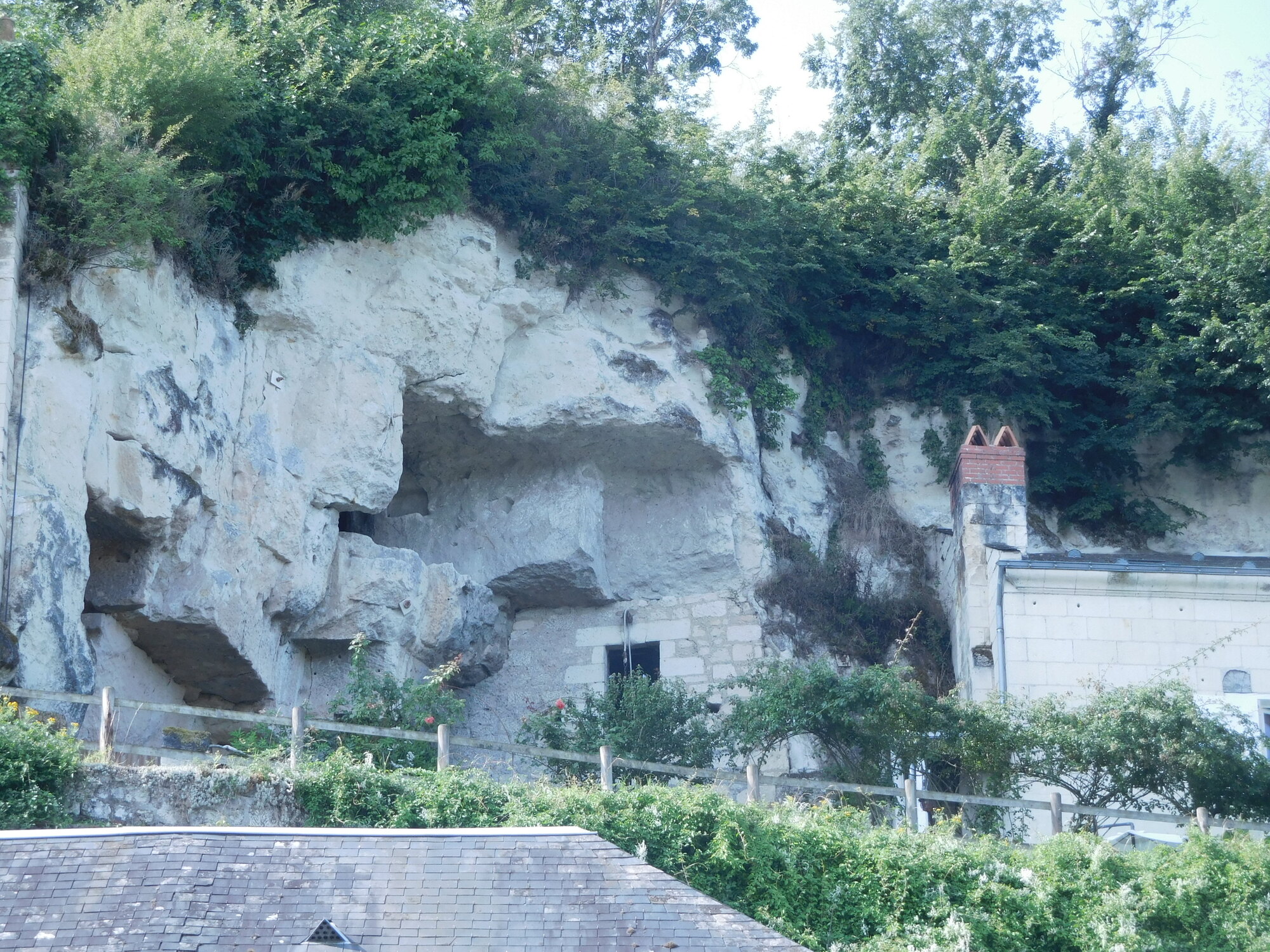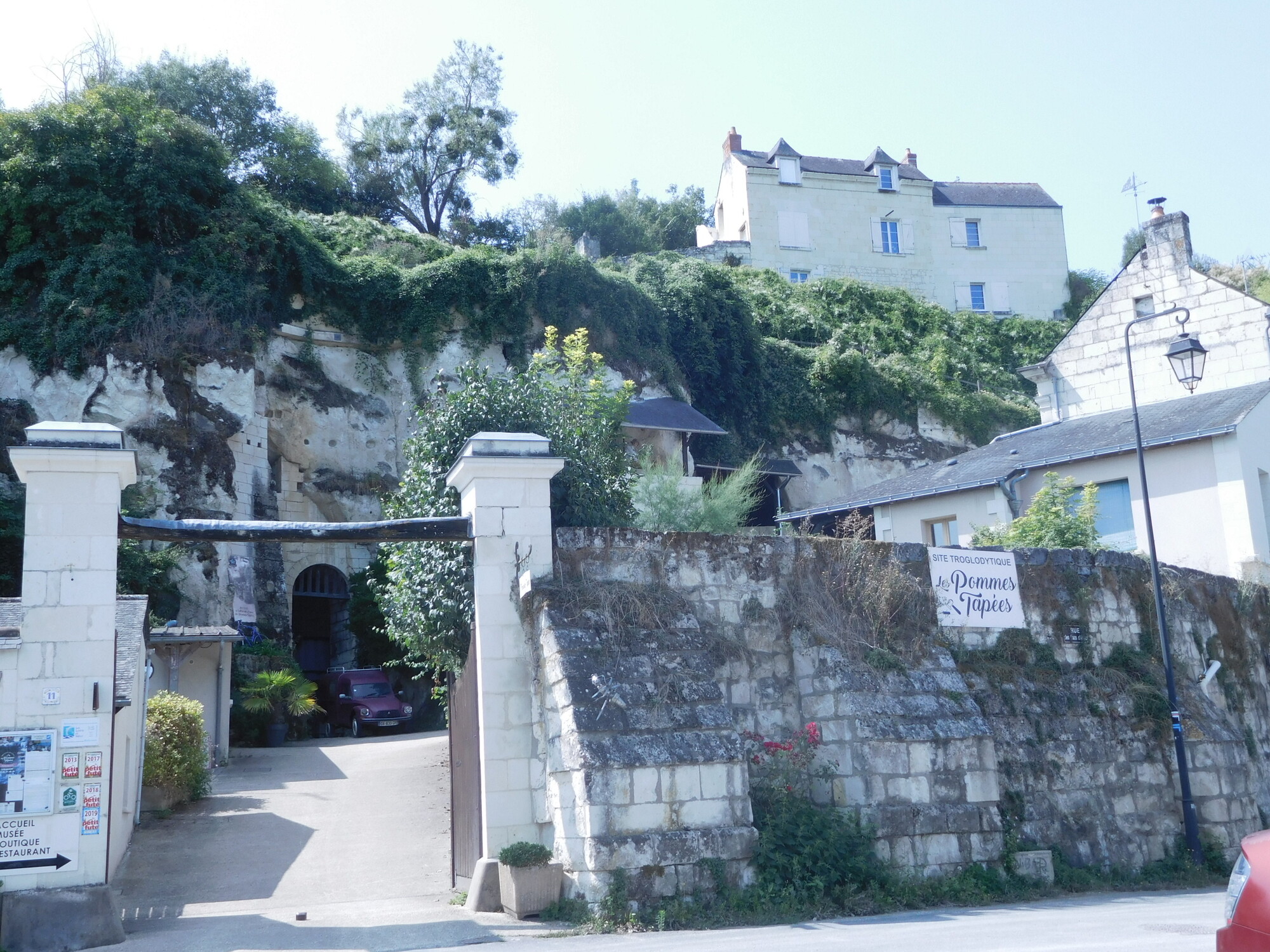 Today featured the stretch of the trip with the kids that we figured would be the most interesting. It begins at Candes St Martin, where the church tells the story of St Martin. Then it extends beneath limestone cliffs, featuring homes built right into the stone, and two attractions that rely on the cool caves that were created hundreds of years ago by the extraction of stone for construction.