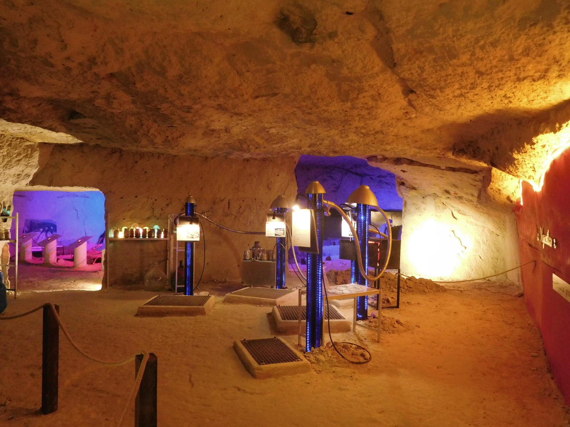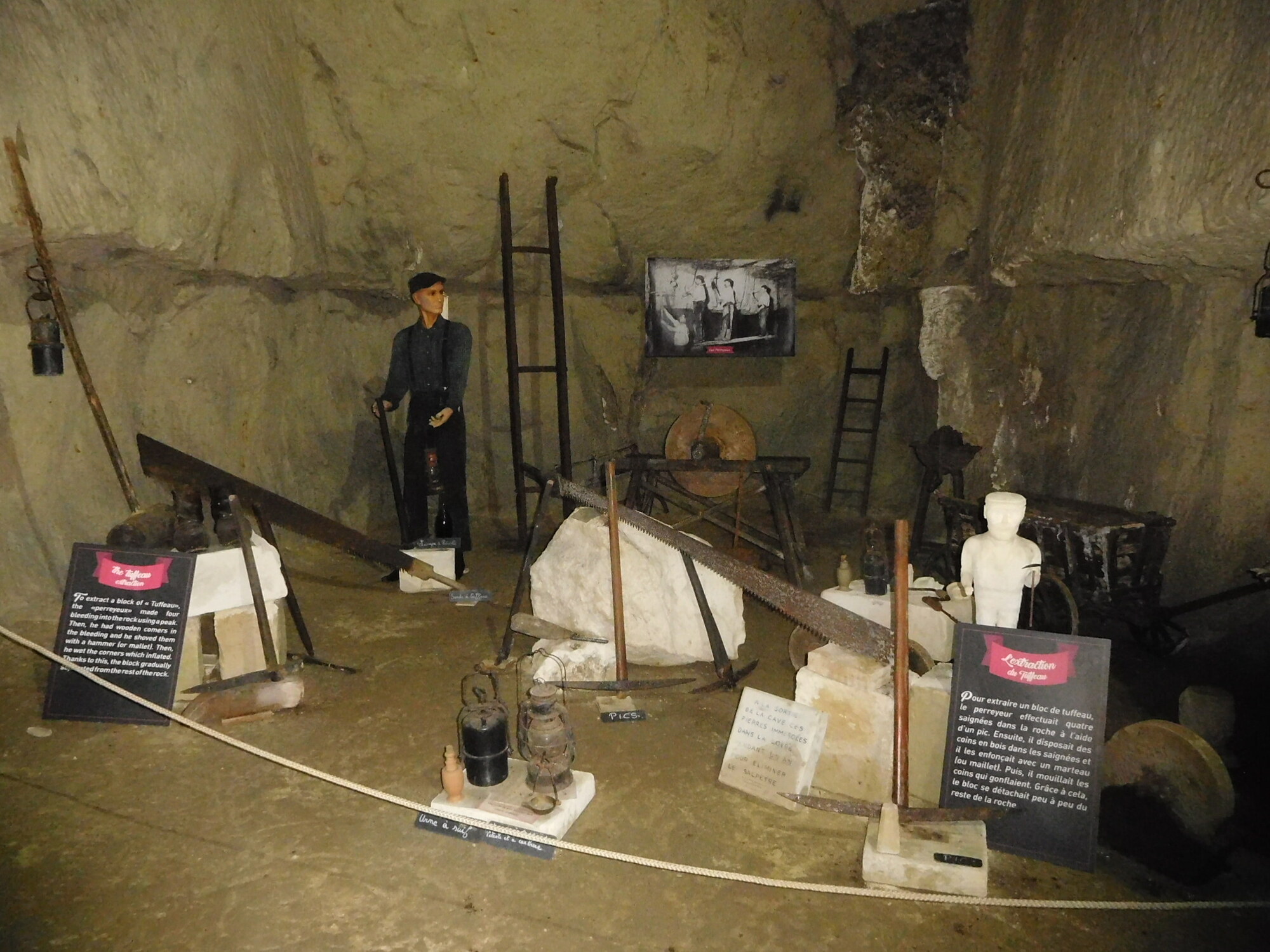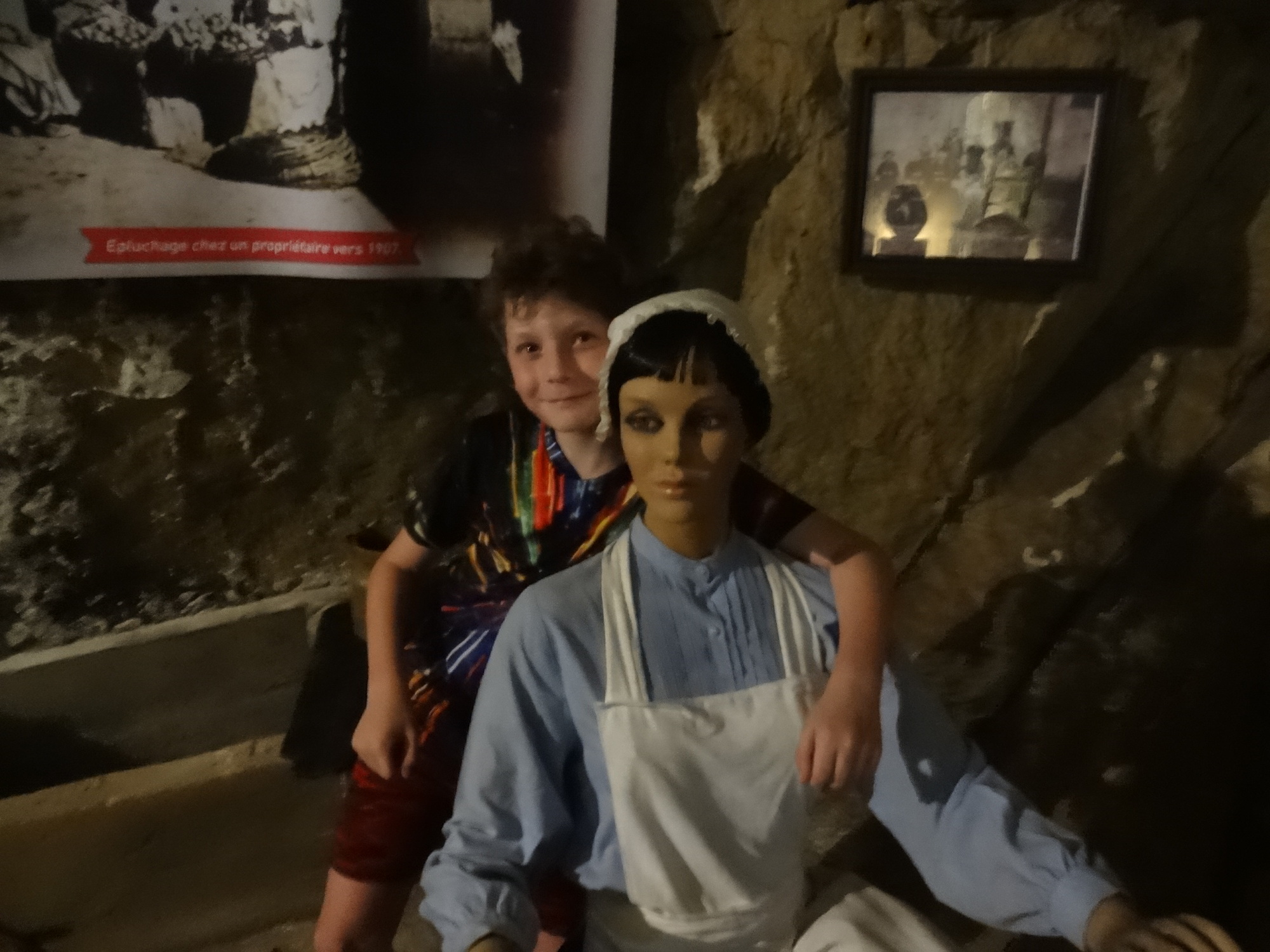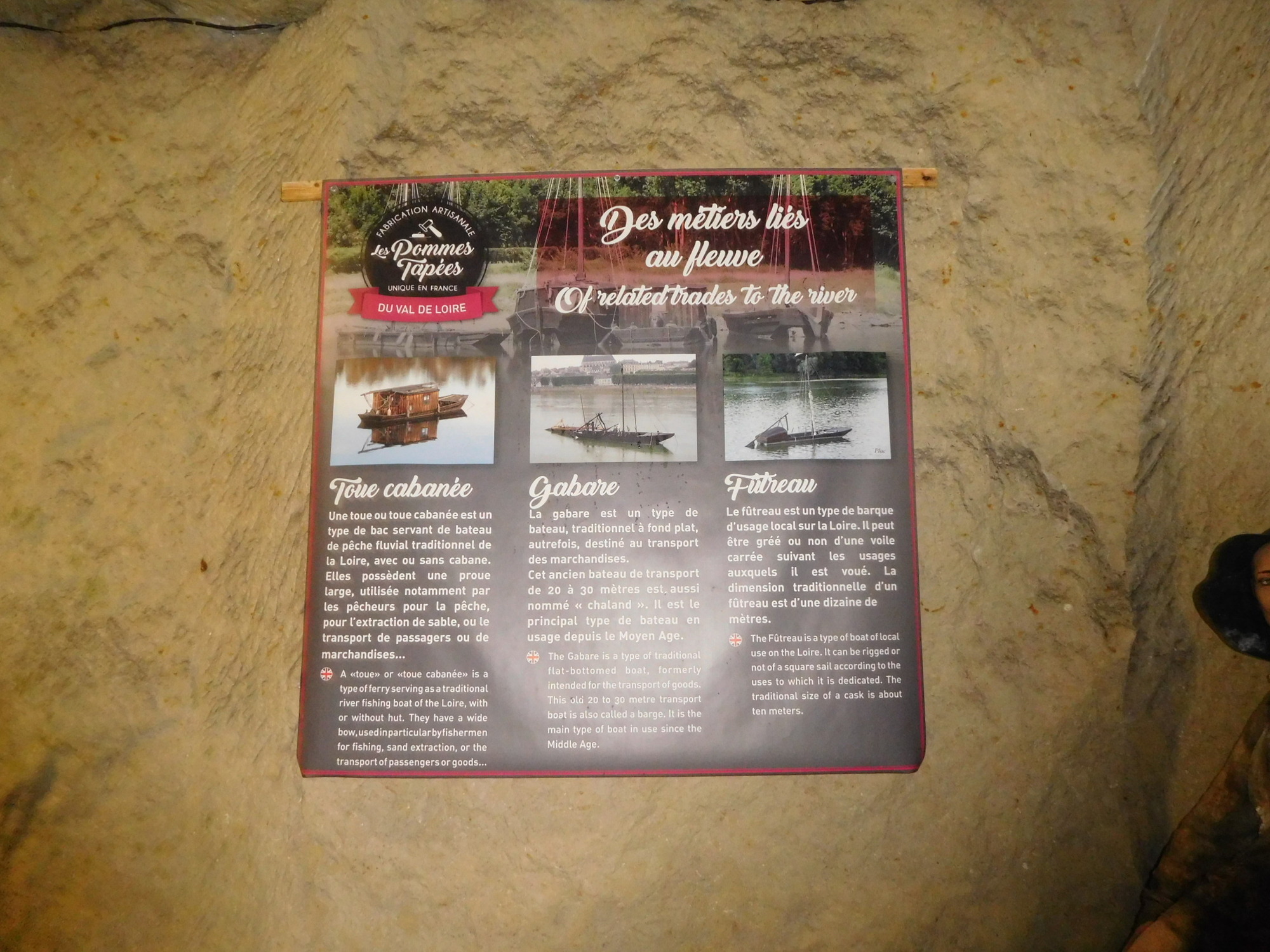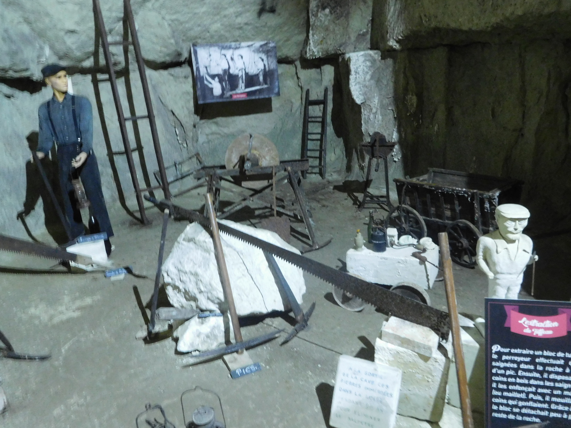 Today featured the stretch of the trip with the kids that we figured would be the most interesting. It begins at Candes St Martin, where the church tells the story of St Martin. Then it extends beneath limestone cliffs, featuring homes built right into the stone, and two attractions that rely on the cool caves that were created hundreds of years ago by the extraction of stone for construction.