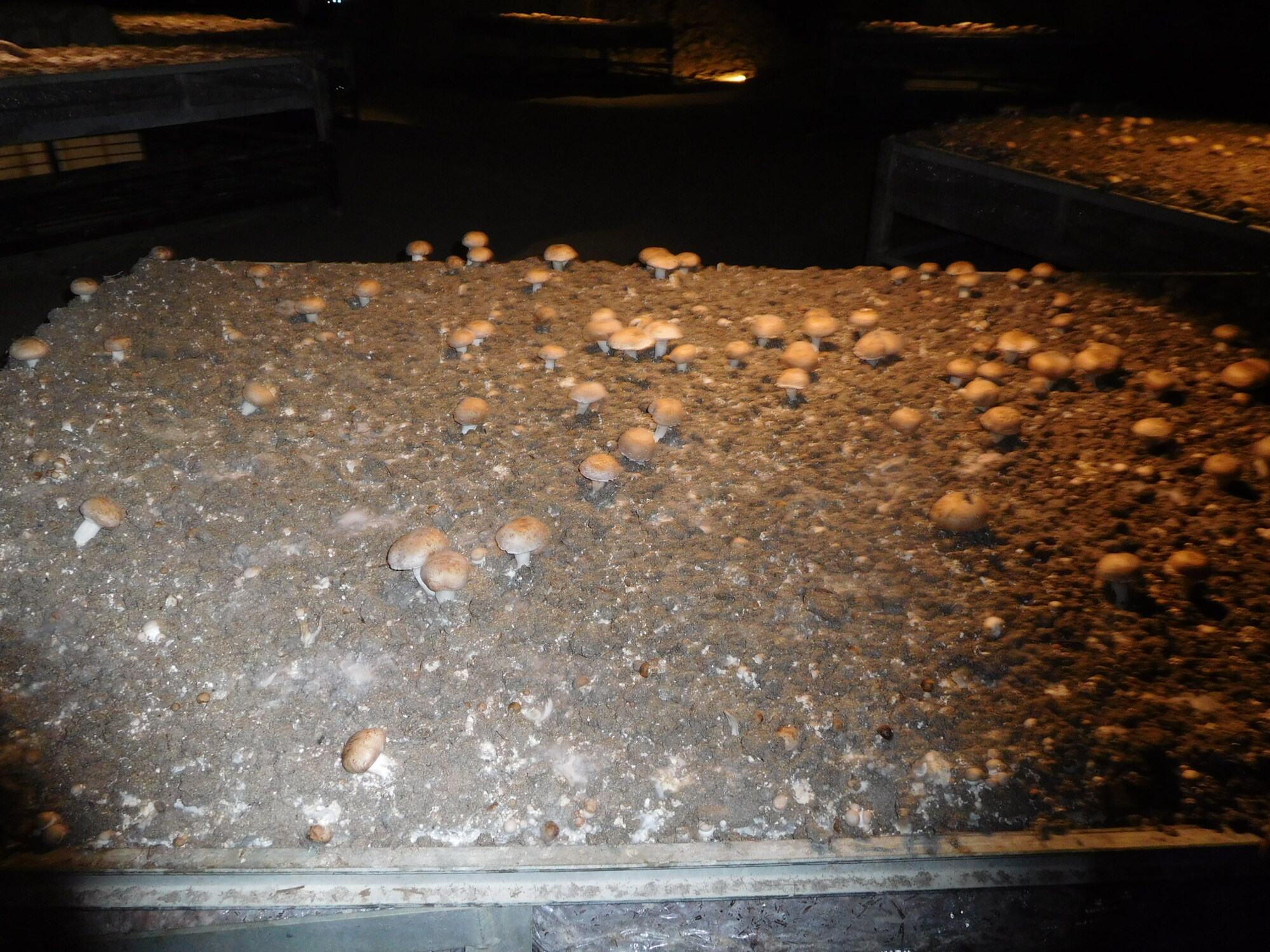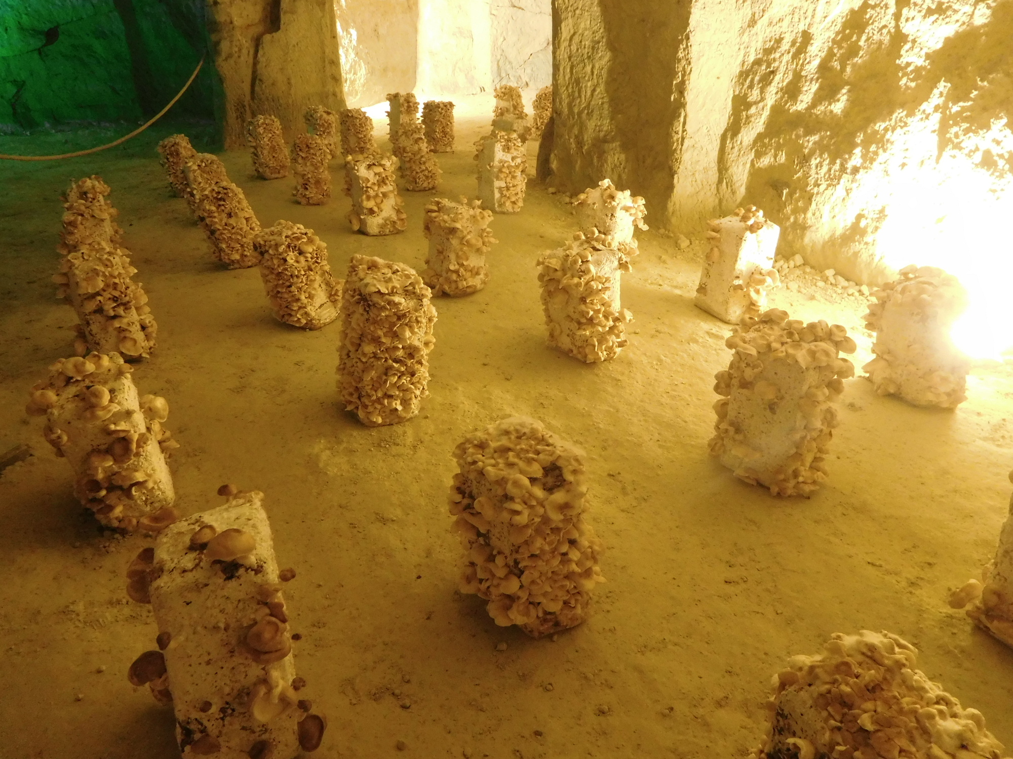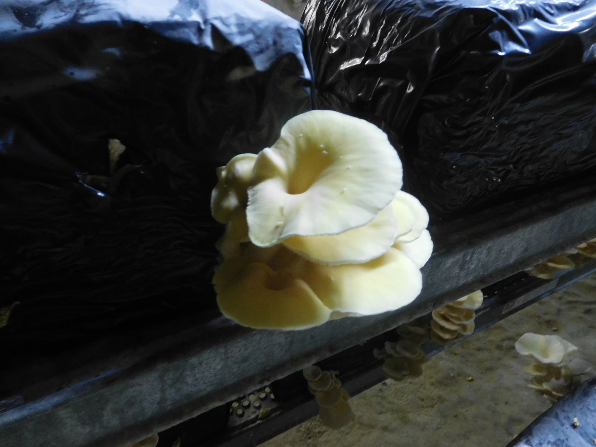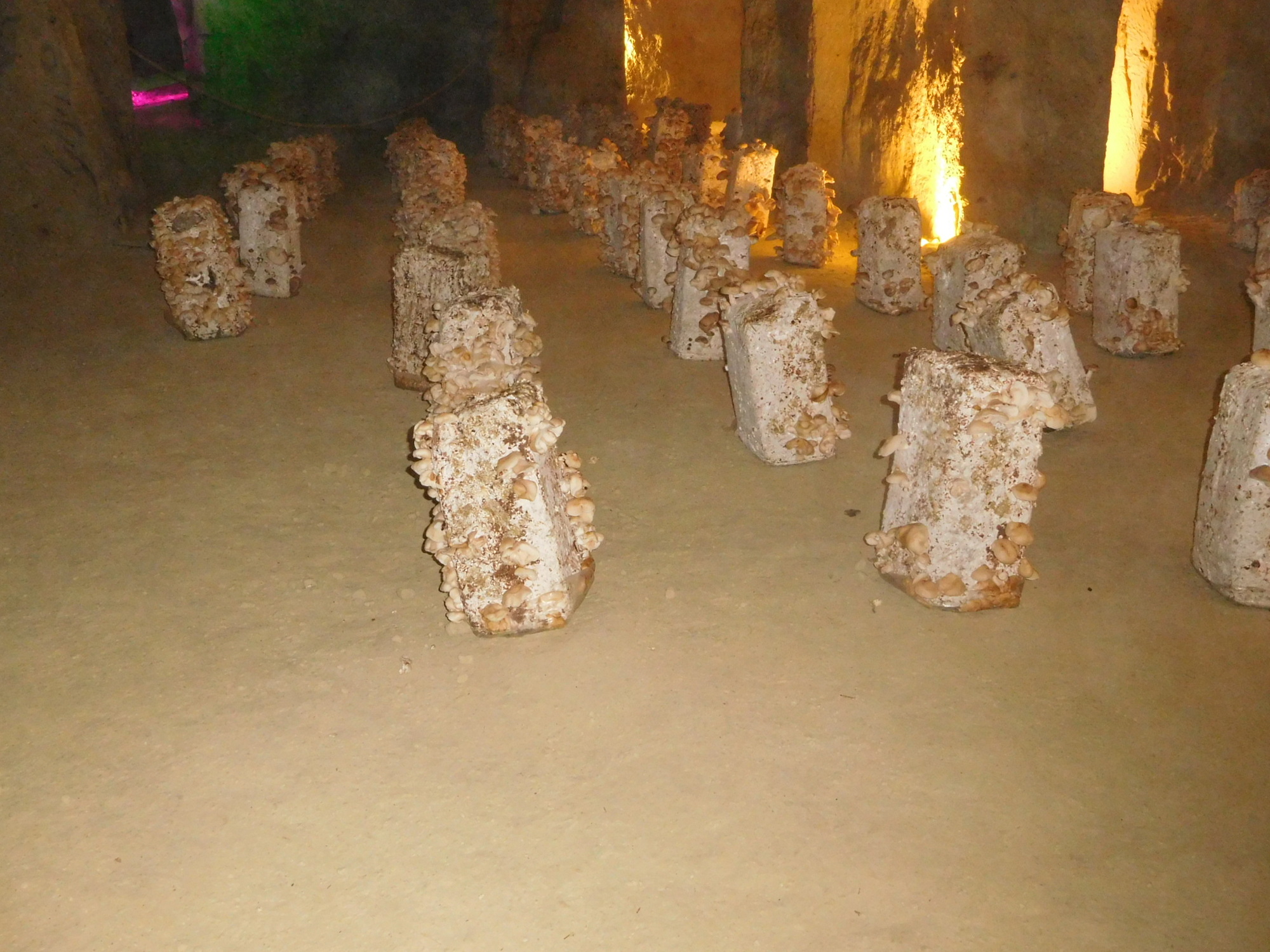 Looks like shiitake growing on pressed sawdust blocks. When I was a postdoc in Wisconsin we were trying to perfect this technique for mass production. Never really got there because the market for the species remained rather niche. Really good in stir fry, though.